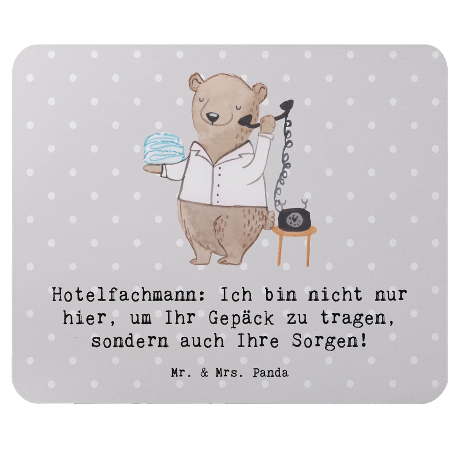 Das Mauspad "Hotelfachmann" aus der Berufe Kollektion von Mr. & Mrs. Panda ist das perfekte Geschenk für alle, die in der Hotellerie arbeiten oder eine Leidenschaft für diesen Beruf hegen. Mit dem liebevoll gestalteten Slogan "Ich bin nicht nur hier, um Ihr Gepäck zu tragen, sondern auch Ihre Sorgen!" bringt dieses Produkt ein Lächeln auf jeden Schreibtisch. Ob im Büro oder im Homeoffice – dieses Mauspad sorgt für eine angenehme und professionelle Arbeitsatmosphäre.