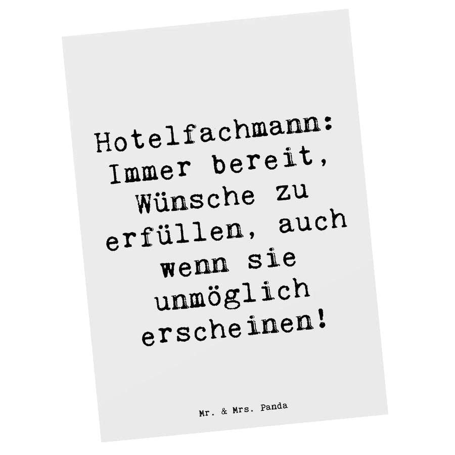 Postkarte Spruch Hotelfachmann: Immer bereit, Wünsche zu erfüllen, auch wenn sie unmöglich erscheinen! - Weiß