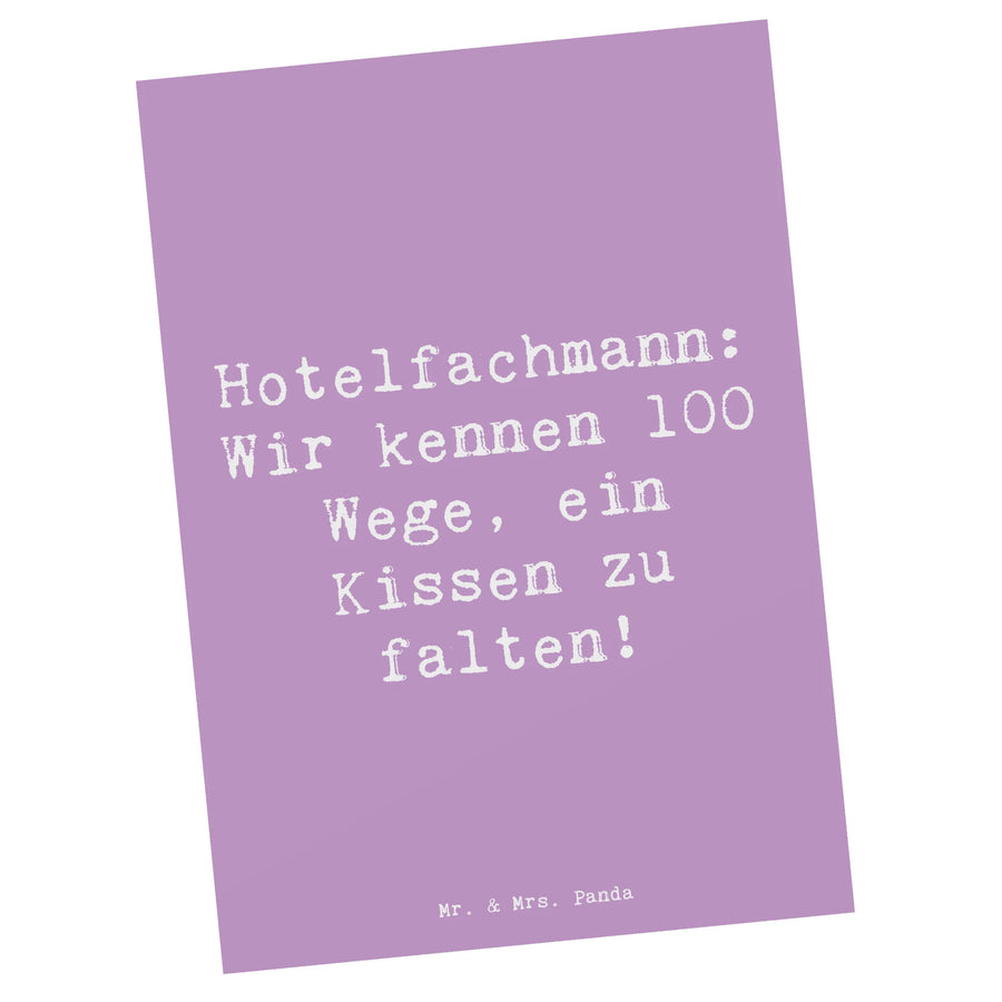 Postkarte Spruch Hotelfachmann: Wir kennen 100 Wege, ein Kissen zu falten! - Lavendeltraum