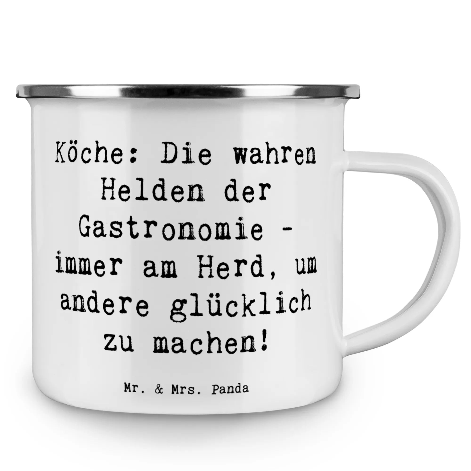 Camping Emaille Tasse Spruch Köche: Die wahren Helden der Gastronomie - immer am Herd, um andere glücklich zu machen!