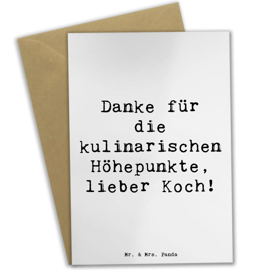 Entdecke die zauberhafte Grußkarte "Danke für die kulinarischen Höhepunkte, lieber Koch!" von Mr. & Mrs. Panda. Diese liebevoll gestaltete Karte ist das perfekte Dankeschön für jeden, der mit seinen Kochkünsten dein Herz erobert hat.