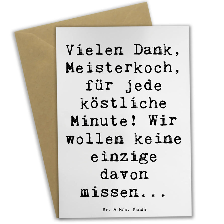 Du suchst nach der perfekten Grußkarte, um deine Dankbarkeit auf besondere Art auszudrücken? Dann ist die Grußkarte "Vielen Dank, Meisterkoch, für jede köstliche Minute! Wir wollen keine einzige davon missen..." aus der Dankeschön-Kollektion von Mr. & Mrs. Panda genau das Richtige für dich!