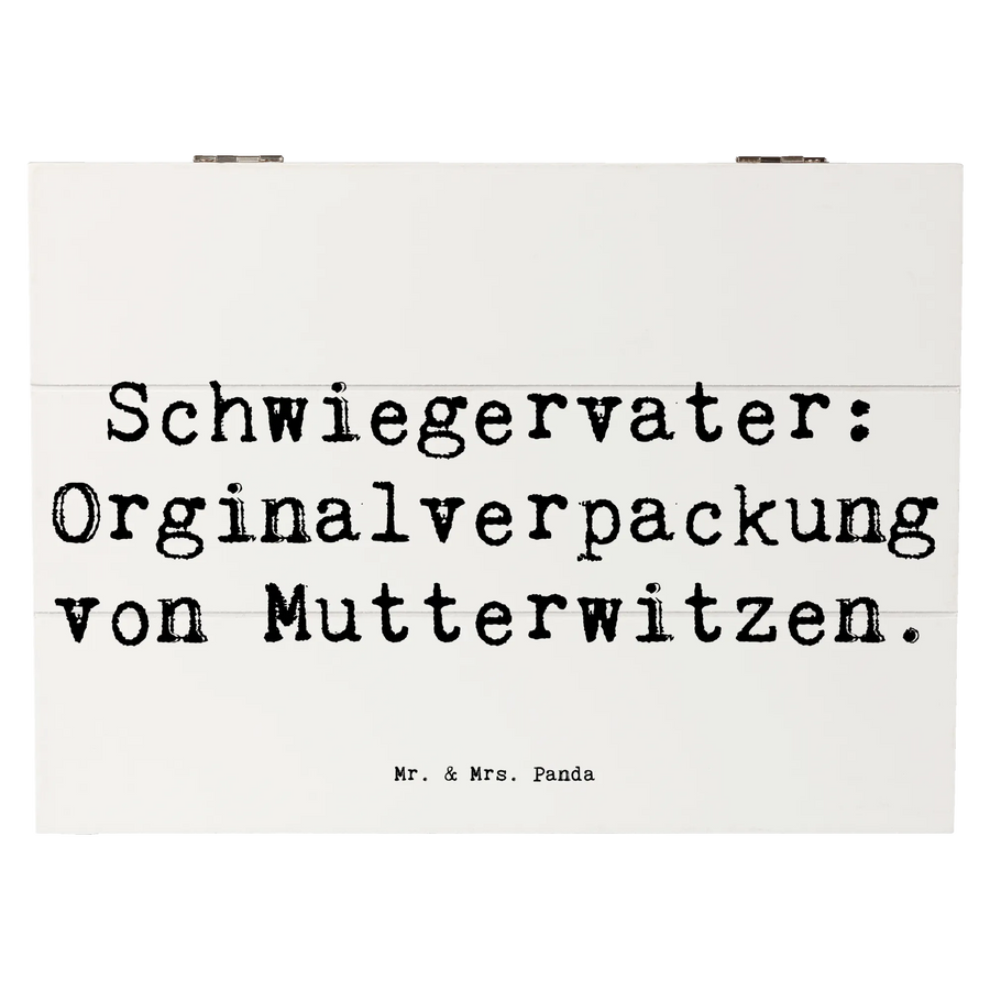 Die Holzkiste „Schwiegervater“ von Mr. & Mrs. Panda ist das perfekte Geschenk für jeden, der seinem Schwiegervater ein ganz besonderes Präsent machen möchte. Mit einem liebevoll gestalteten Motiv und dem witzigen Slogan „Schwiegervater: Originalverpackung von Mutterwitzen“ bringt diese Kiste nicht nur ein Lächeln auf die Lippen, sondern eignet sich auch hervorragend als Aufbewahrungsort für Erinnerungen.