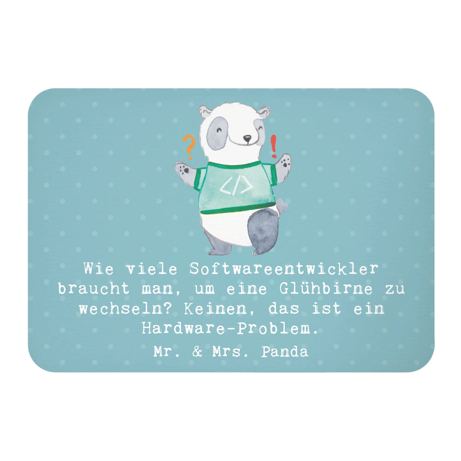 Unser Kühlschrankmagnet "Softwareentwickler" von Mr. & Mrs. Panda ist das perfekte Geschenk für alle, die in der Welt der Programmierung und Technologie zu Hause sind. Mit einem charmanten Design und dem witzigen Spruch: "Wie viele Softwareentwickler braucht man, um eine Glühbirne zu wechseln? Keinen, das ist ein Hardware-Problem." bringt dieser Magnet nicht nur Farbe in deine Küche, sondern auch ein Lächeln auf die Gesichter deiner Kollegen, Freunde oder Familienmitglieder.