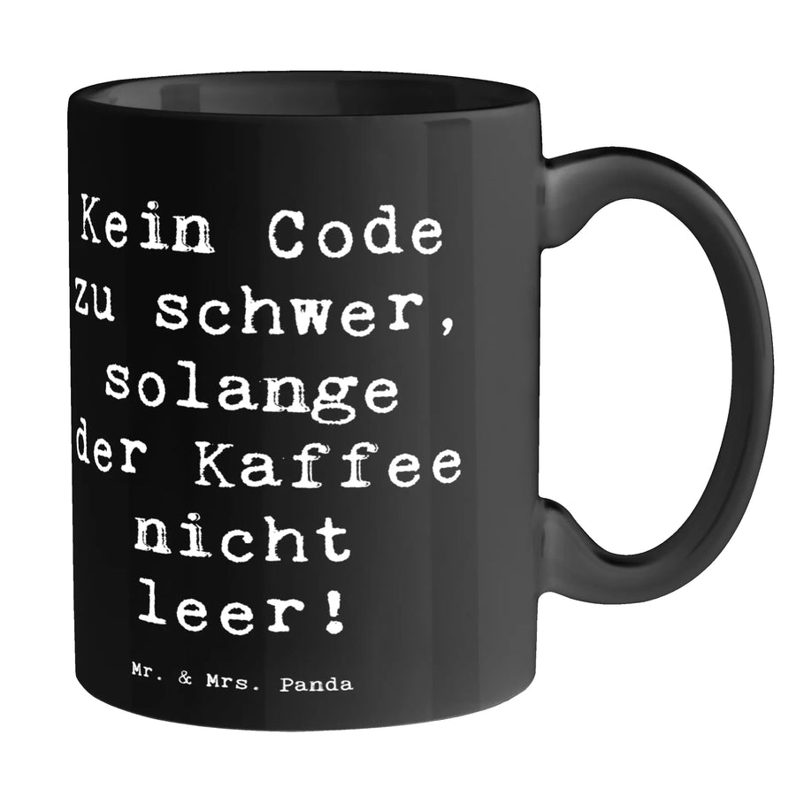 Entdecke die perfekte Tasse für Softwareentwickler von Mr. & Mrs. Panda! Unsere wunderschöne spülmaschinenfeste Keramiktasse ist nicht nur ein praktisches Accessoire für deinen Kaffee oder Tee, sondern auch eine Schmeichelei für jeden Programmierer. Mit dem charmanten Spruch „Kein Code zu schwer, solange der Kaffee nicht leer!“ bringt sie ein Lächeln in die Gesichter von Entwicklern und IT-Profis.