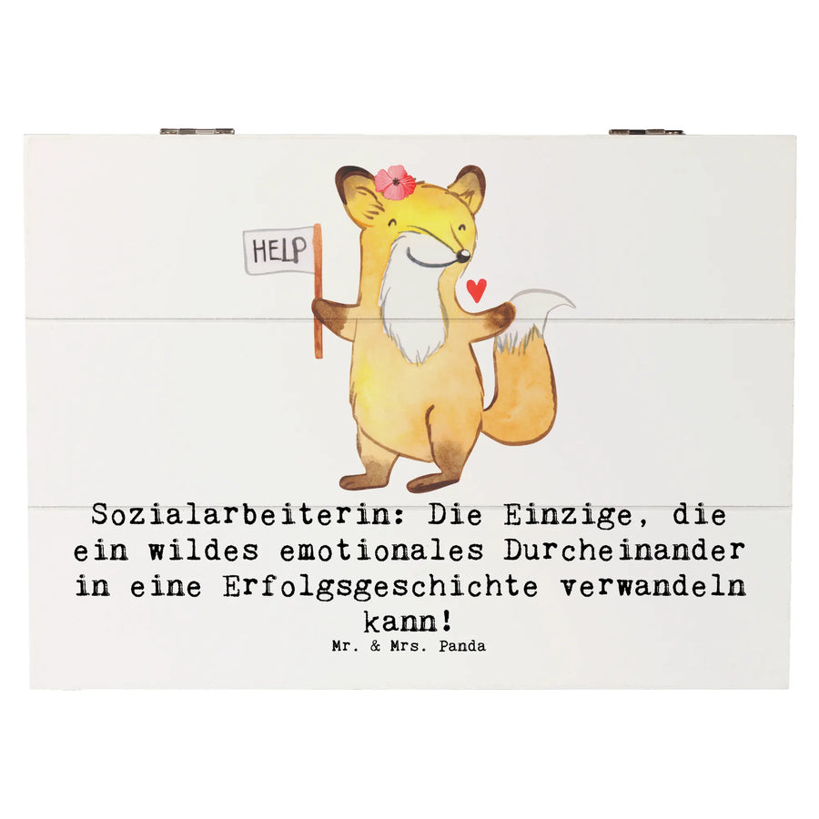 Der liebevoll gestaltete Slogan „Sozialarbeiterin: Die Einzige, die ein wildes emotionales Durcheinander in eine Erfolgsgeschichte verwandeln kann!“ verwandelt die Kiste in eine persönliche Errinnerung an all die positiven Veränderungen, die sie bewirken.