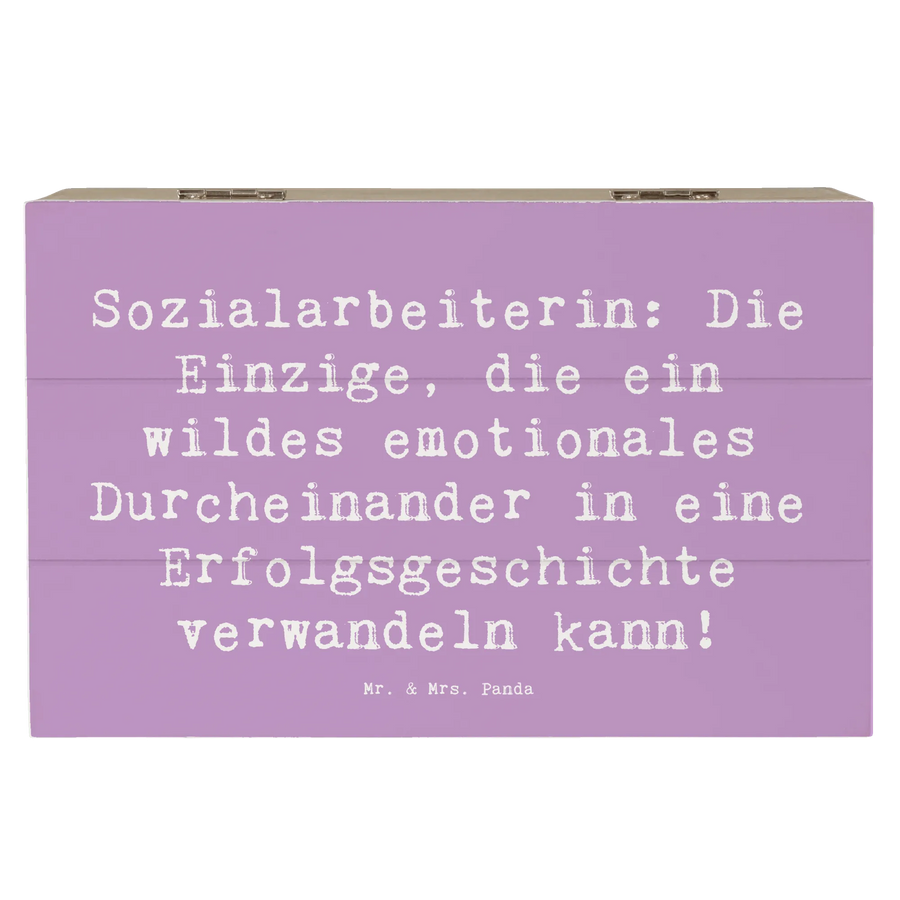 Die wunderschöne Holzkiste "Sozialarbeiterin" von Mr. & Mrs. Panda ist die ideale Geschenkidee für alle, die im sozialen Bereich arbeiten. Diese liebevoll gestaltete Erinnerungskiste bietet Platz für all die besonderen Schätze und Erinnerungen, die Du im Laufe der Jahre gesammelt hast. Ob Fotos, Briefe oder kleine Andenken – alles findet hier seinen Platz.