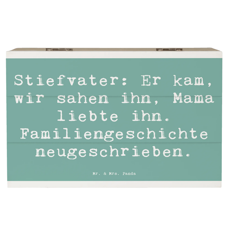 Die wunderschöne Holzkiste von Mr. & Mrs. Panda ist das perfekte Geschenk für Stiefväter und Familienfeiern. Sie ist nicht nur ein stilvolles Aufbewahrungsort, sondern auch eine liebevolle Erinnerungskiste für die besonderen Momente im Leben. Mit dem charmanten Motiv "Stiefvater: Er kam, wir sahen ihn, Mama liebte ihn. Familiengeschichte neugeschrieben." in lebhaften Farben bringt die Kiste Freude und emotionale Wärme in jedes Zuhause.