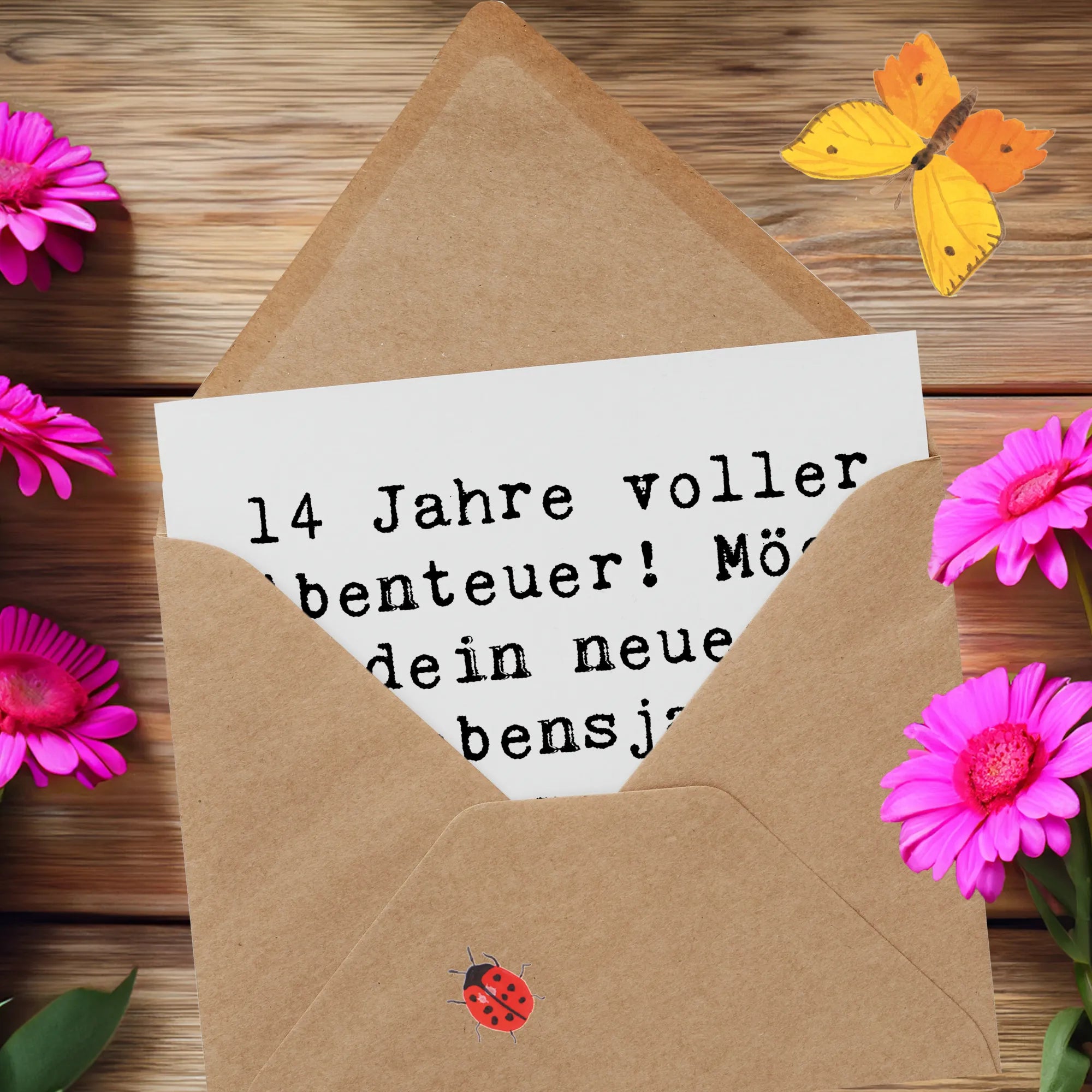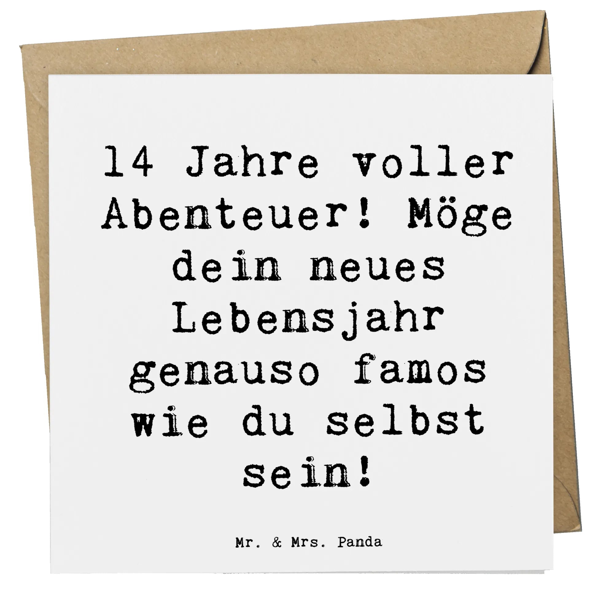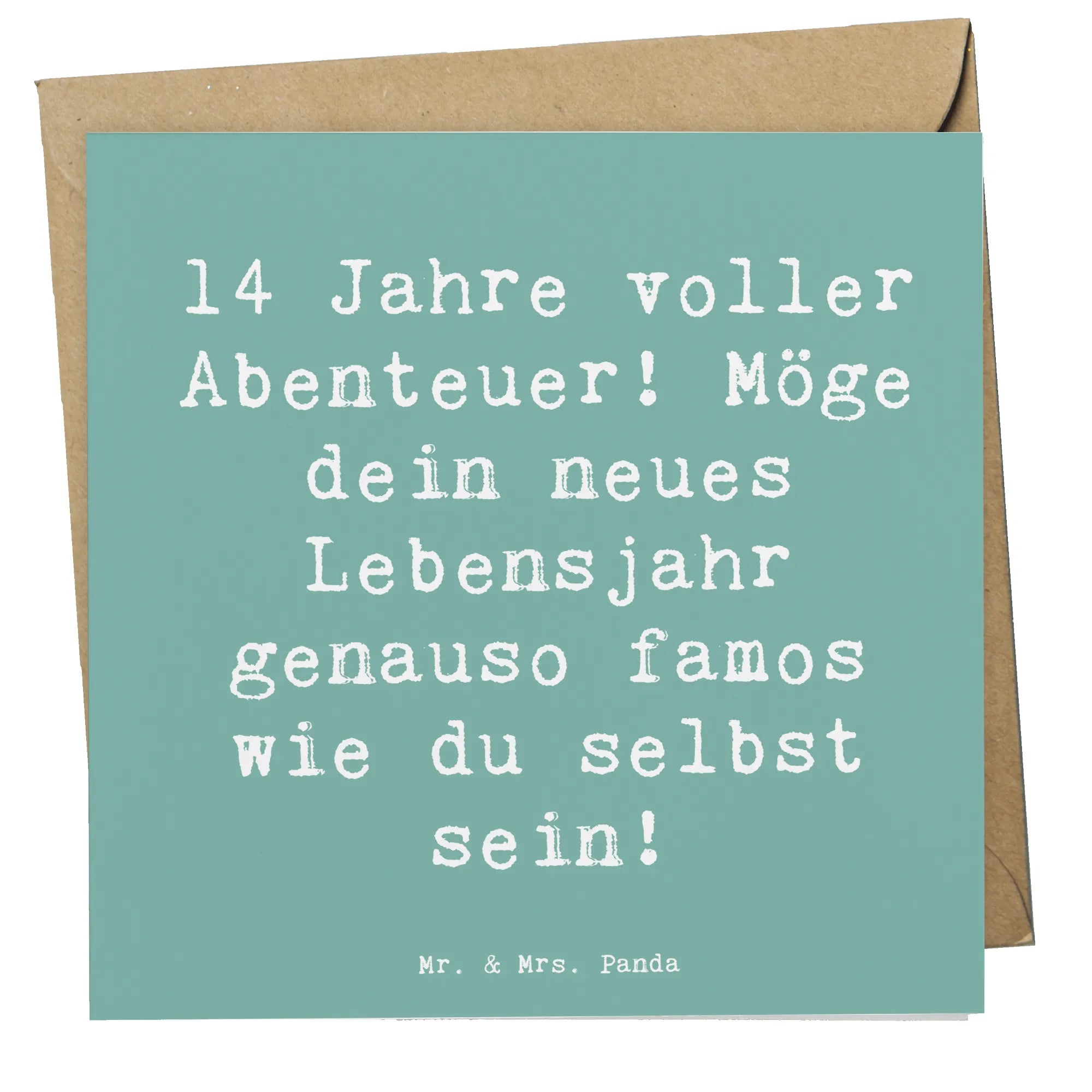 FEIERE das neue Jahr voller Abenteuer und ermögliche unvergessliche Momente mit der liebevollen Note von Mr. & Mrs. Panda. Diese Grußkarte wird nicht nur für den 14. Geburtstag, sondern auch als Erinnerung zum Aufbewahren geschenkt. Geburtstag, Hochwertige Klappkarte, Hochzeitskarte, Einladungskarte, ist alles möglich mit unserem kreativen Design. Mache jeden Geburtstag besonders mit Mr. & Mrs. Panda!