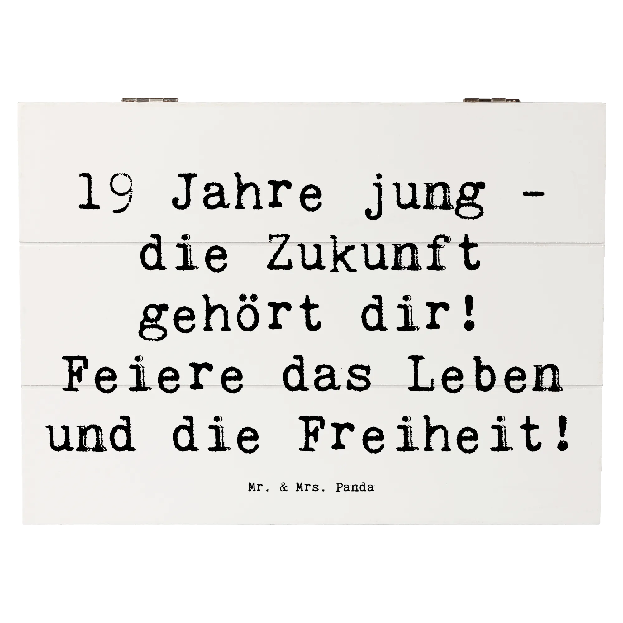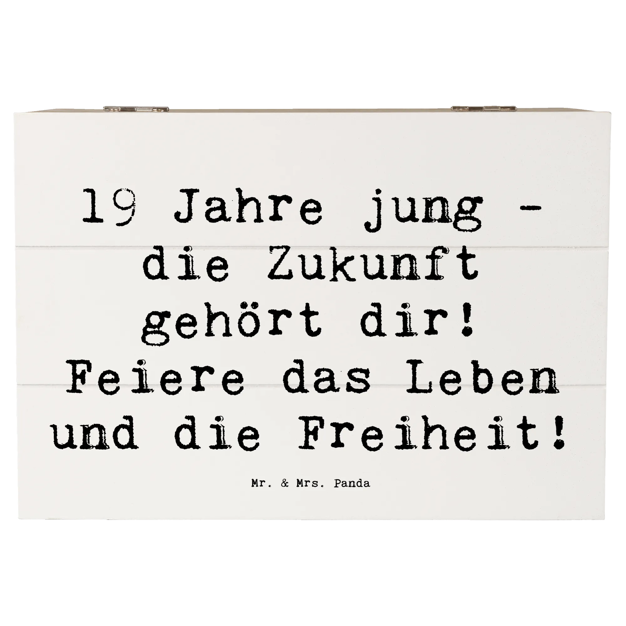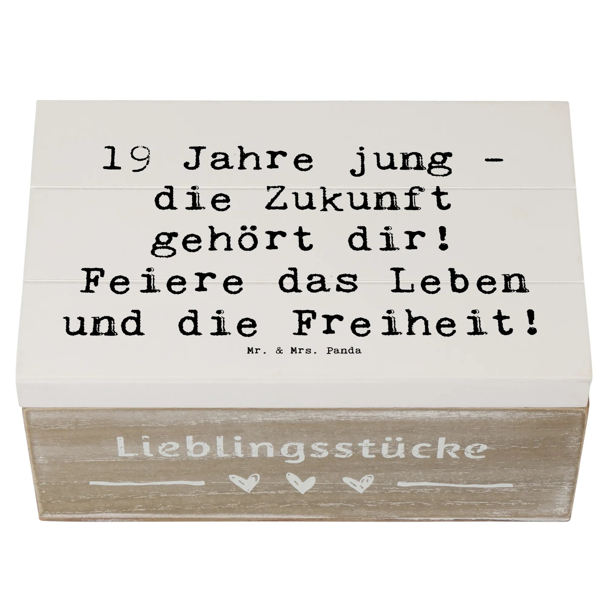 Die wunderschöne Holzkiste von Mr. & Mrs. Panda ist nicht nur eine Kiste, sondern ein ganz besonderes Geschenk zur Feier des 19. Geburtstags! Mit dem inspirierenden Spruch '19 Jahre jung - die Zukunft gehört dir! Feiere das Leben und die Freiheit!' macht diese Schatzkiste aus robuster Holzfaser jede Feier zu einem unvergesslichen Erlebnis.