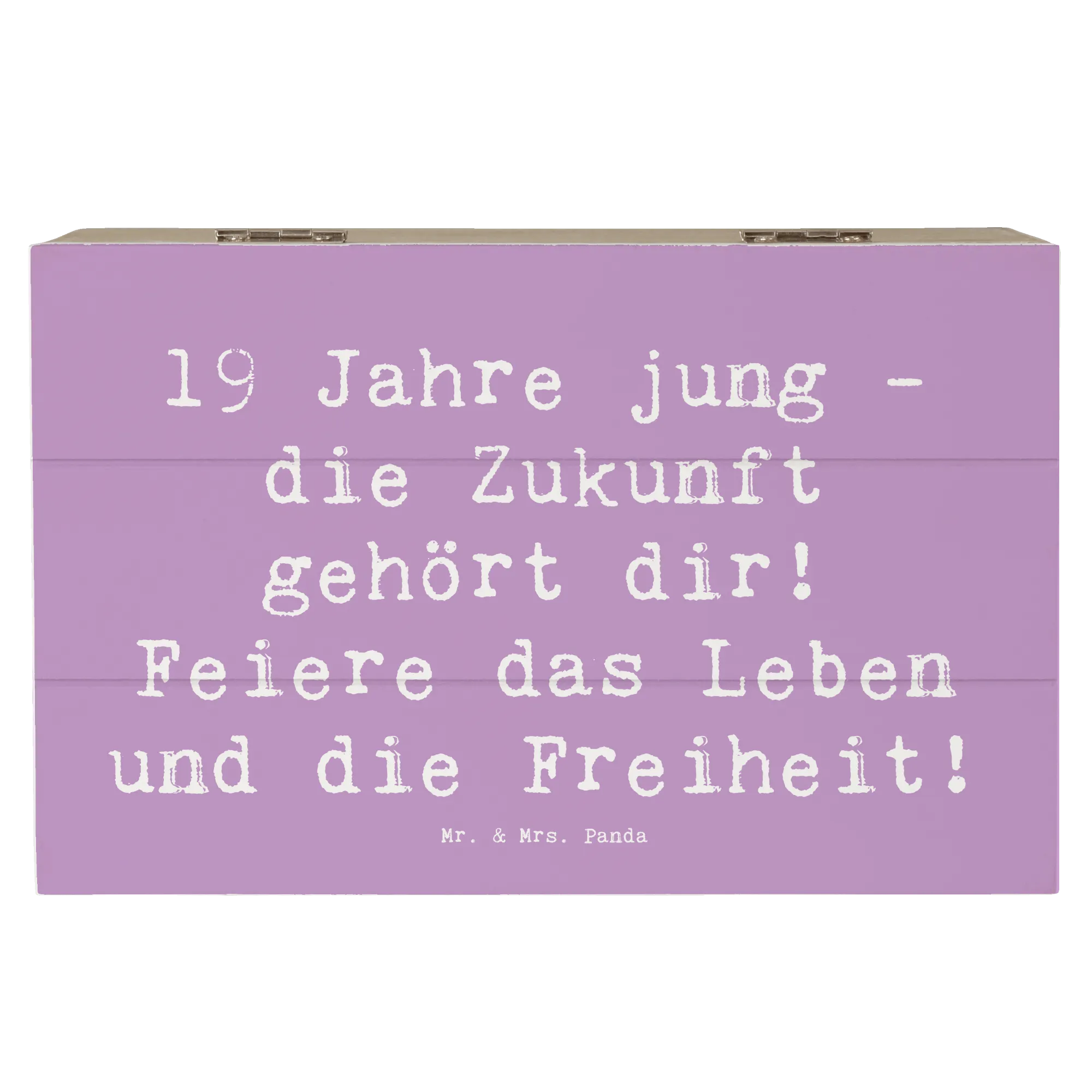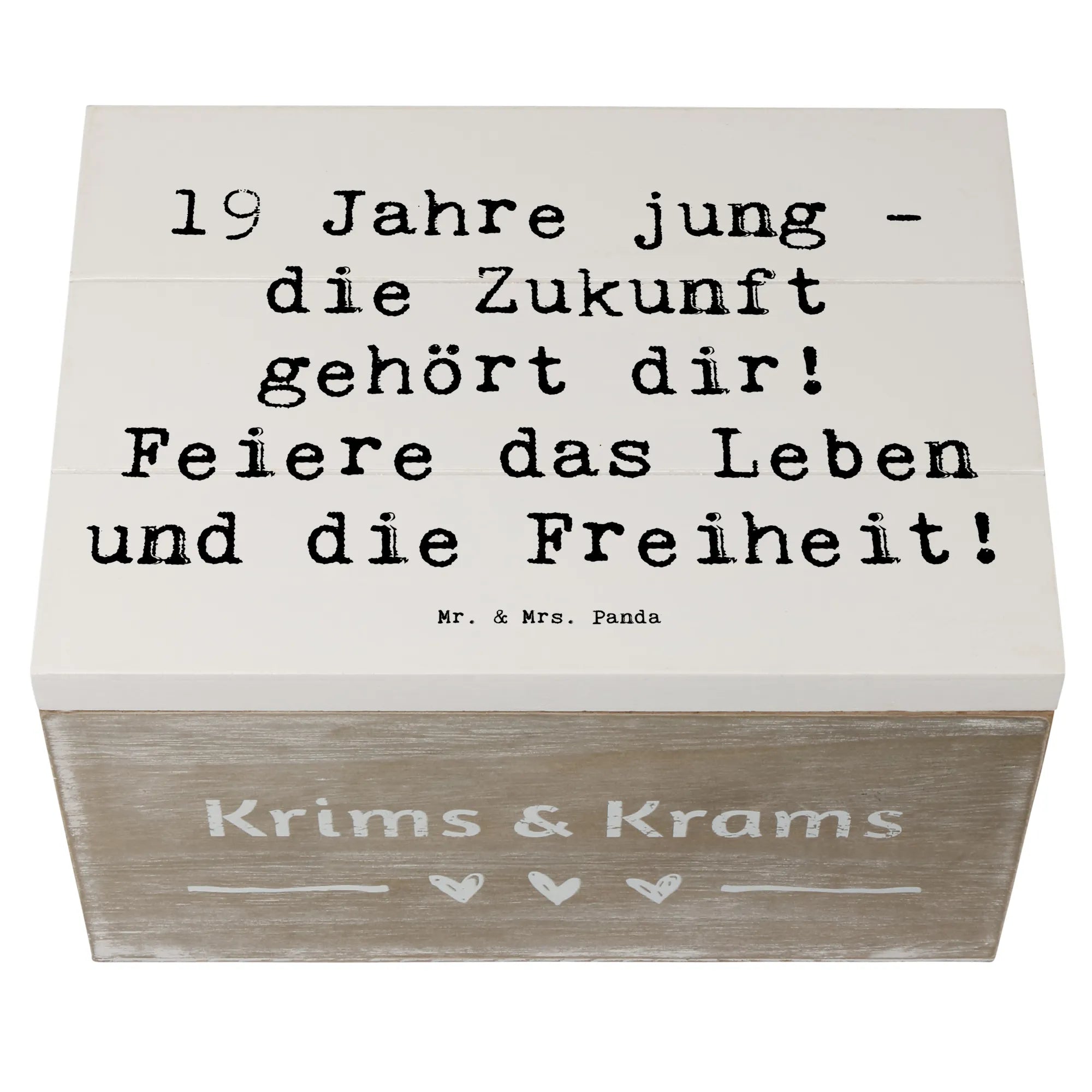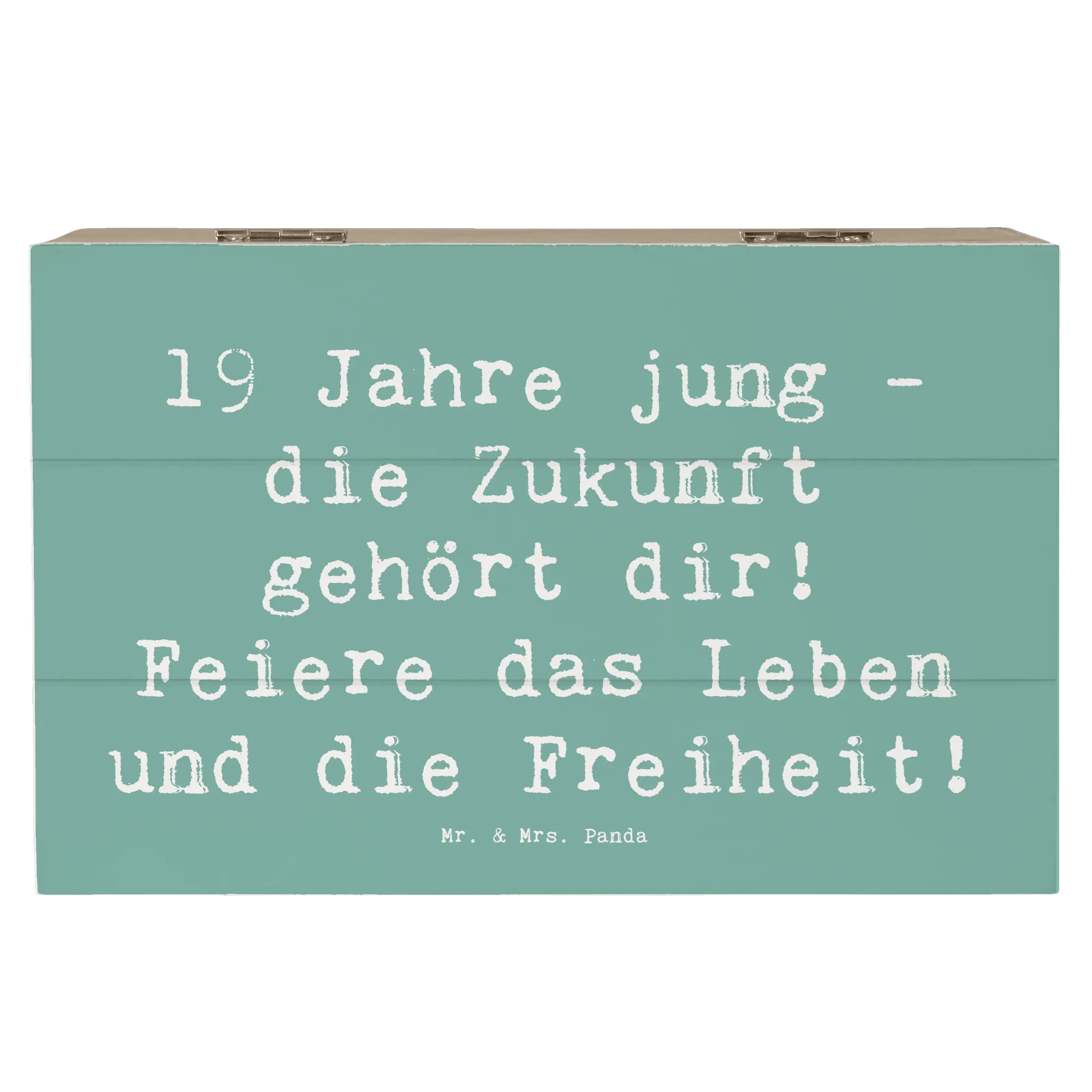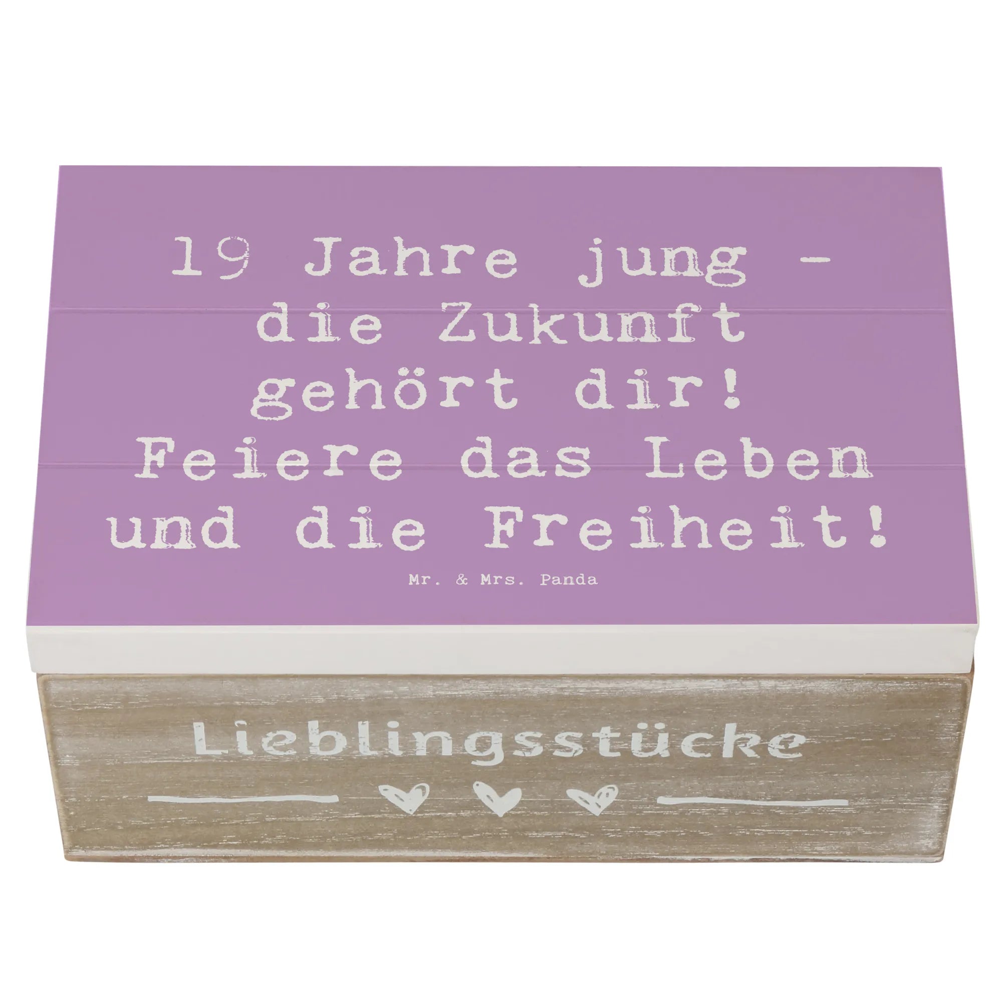 Die wunderschöne Holzkiste von Mr. & Mrs. Panda ist nicht nur eine Kiste, sondern ein ganz besonderes Geschenk zur Feier des 19. Geburtstags! Mit dem inspirierenden Spruch '19 Jahre jung - die Zukunft gehört dir! Feiere das Leben und die Freiheit!' macht diese Schatzkiste aus robuster Holzfaser jede Feier zu einem unvergesslichen Erlebnis.