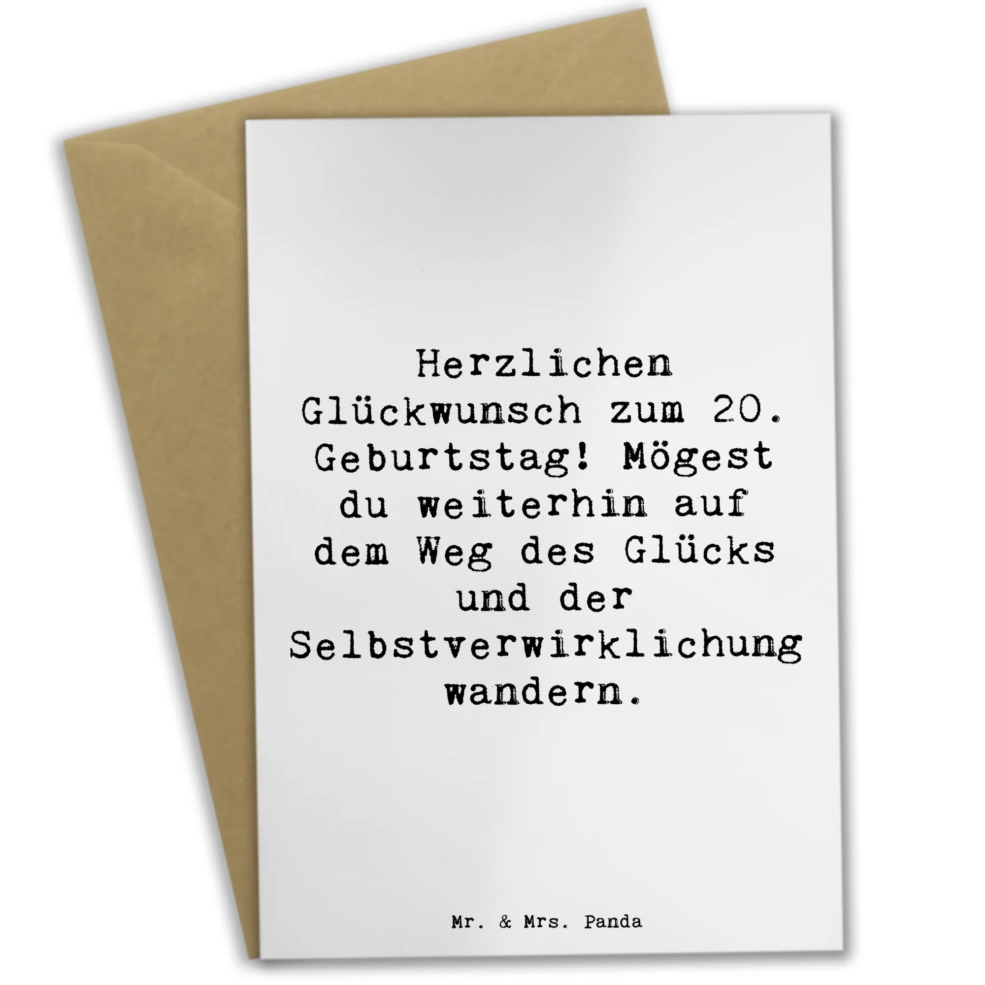 Die wunderschöne Grußkarte zum 20. Geburtstag von Mr. & Mrs. Panda ist das perfekte Geschenk, um einen ganz besonderen Tag gebührend zu feiern! Mit dem liebevollen Spruch "Herzlichen Glückwunsch zum 20. Geburtstag! Mögest du weiterhin auf dem Weg des Glücks und der Selbstverwirklichung wandern." wird diese Karte nicht nur zum tollen Begleiter für deine Glückwünsche, sondern auch zu einer bleibenden Erinnerung.