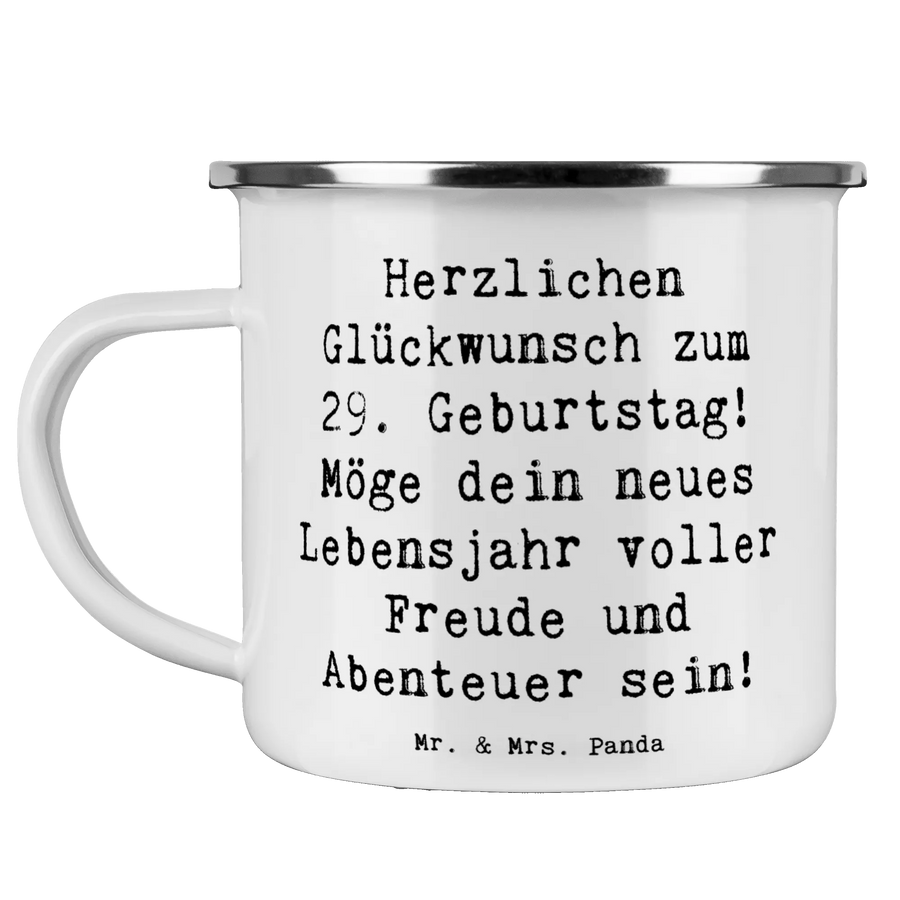 Camping Emaille Tasse Spruch 29. Geburtstag Glückwunsch – Mr. & Mrs. Panda