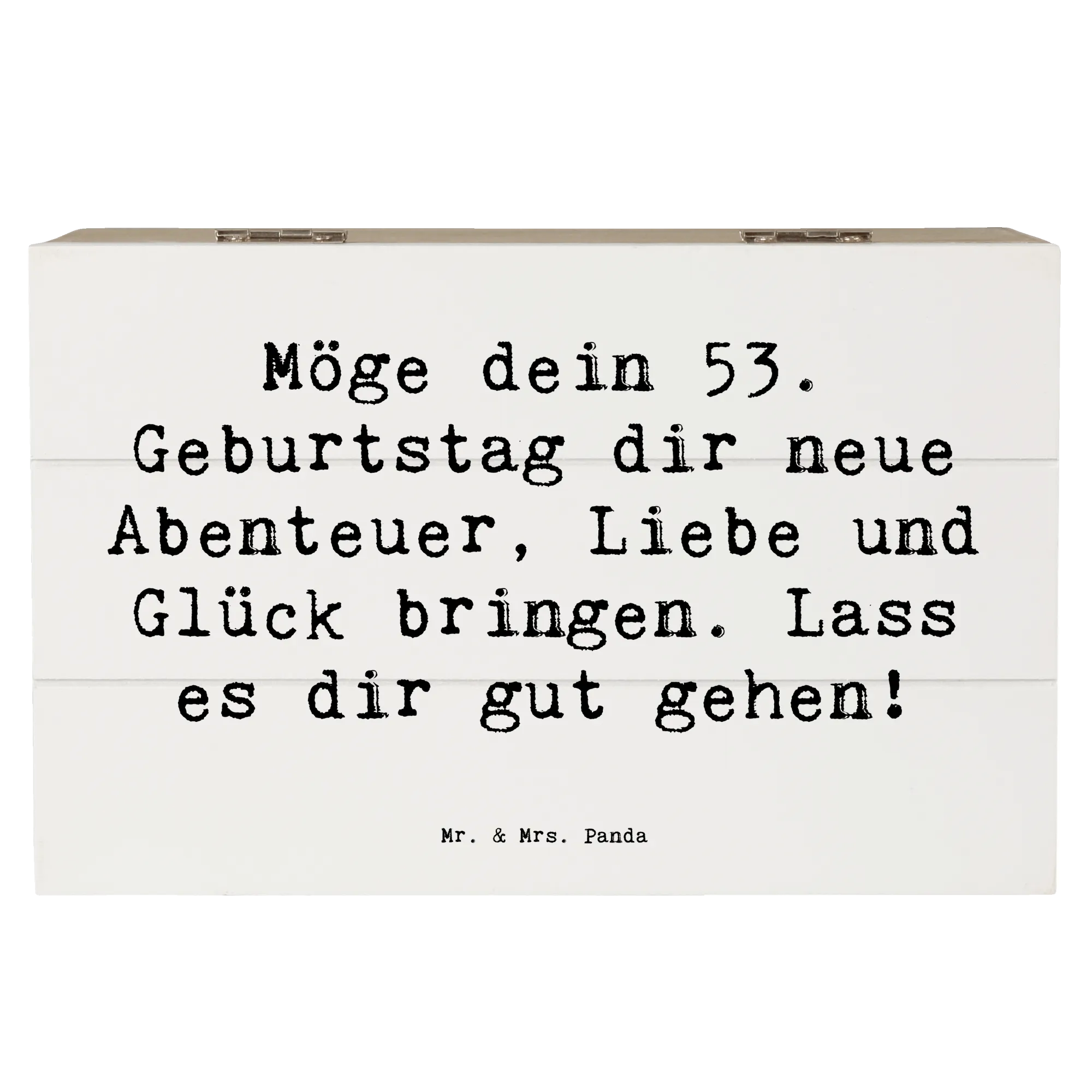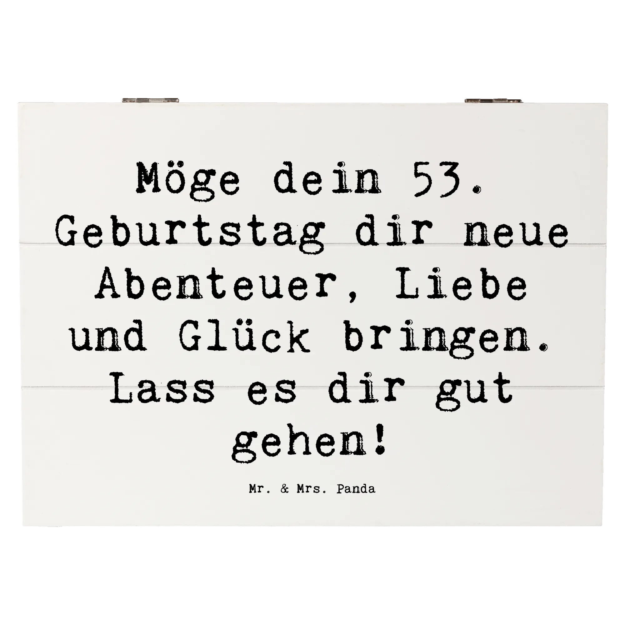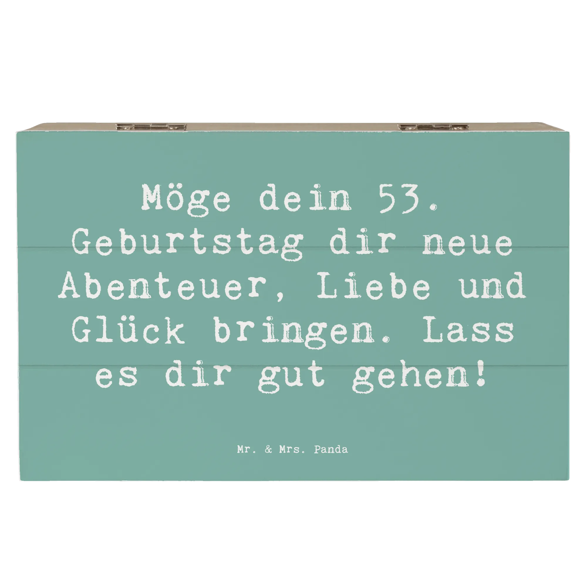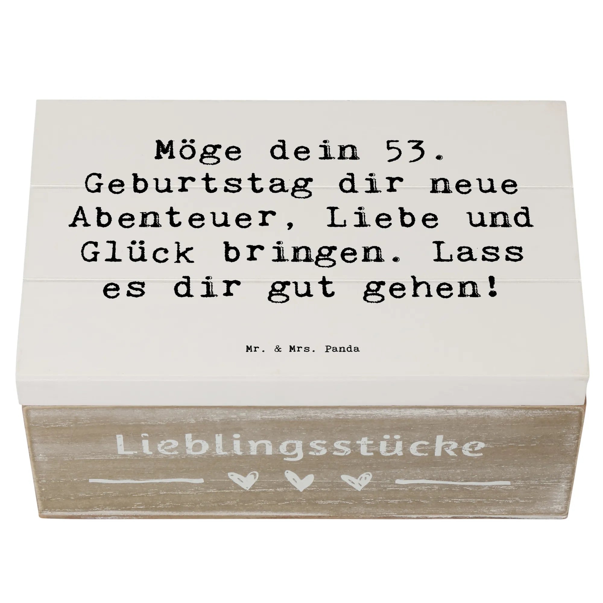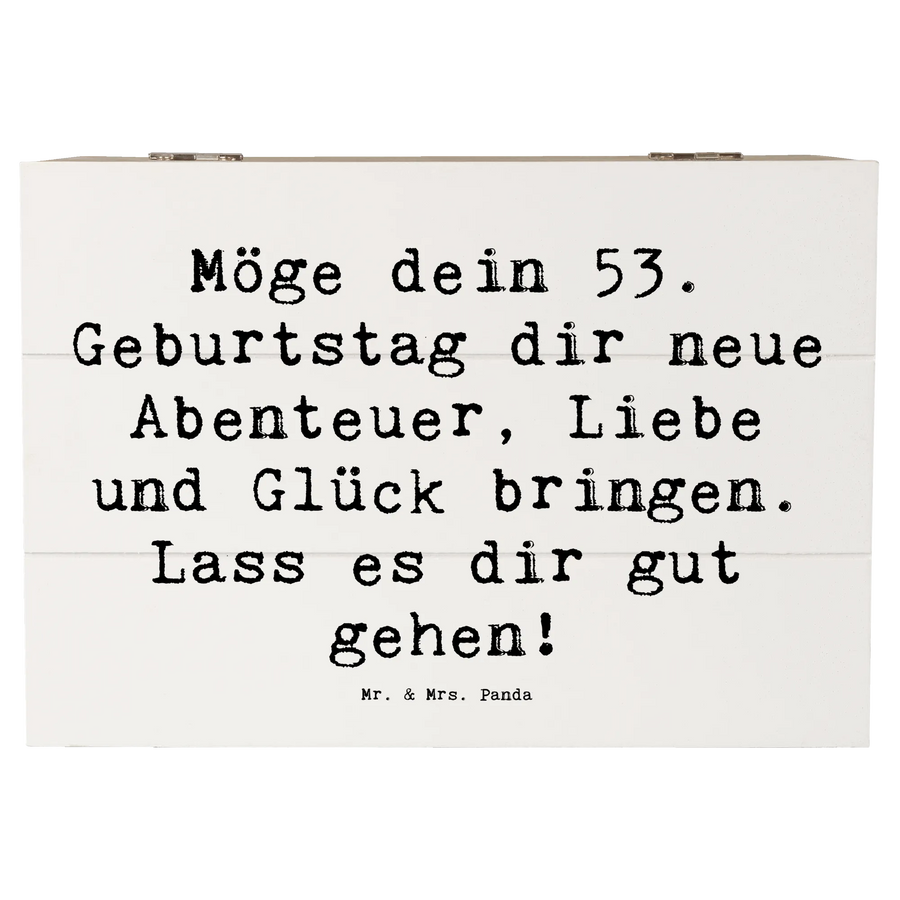 Eine wunderschöne Holzkiste von Mr. & Mrs. Panda, bedruckt mit einem ganz besonderen Motiv für den 53. Geburtstag. Diese Erinnerungskiste ist nicht nur ein zeitloses Stück, sondern auch der perfekte Aufbewahrungsort für all die kostbaren Schätze, die du im Laufe der Jahre gesammelt hast.