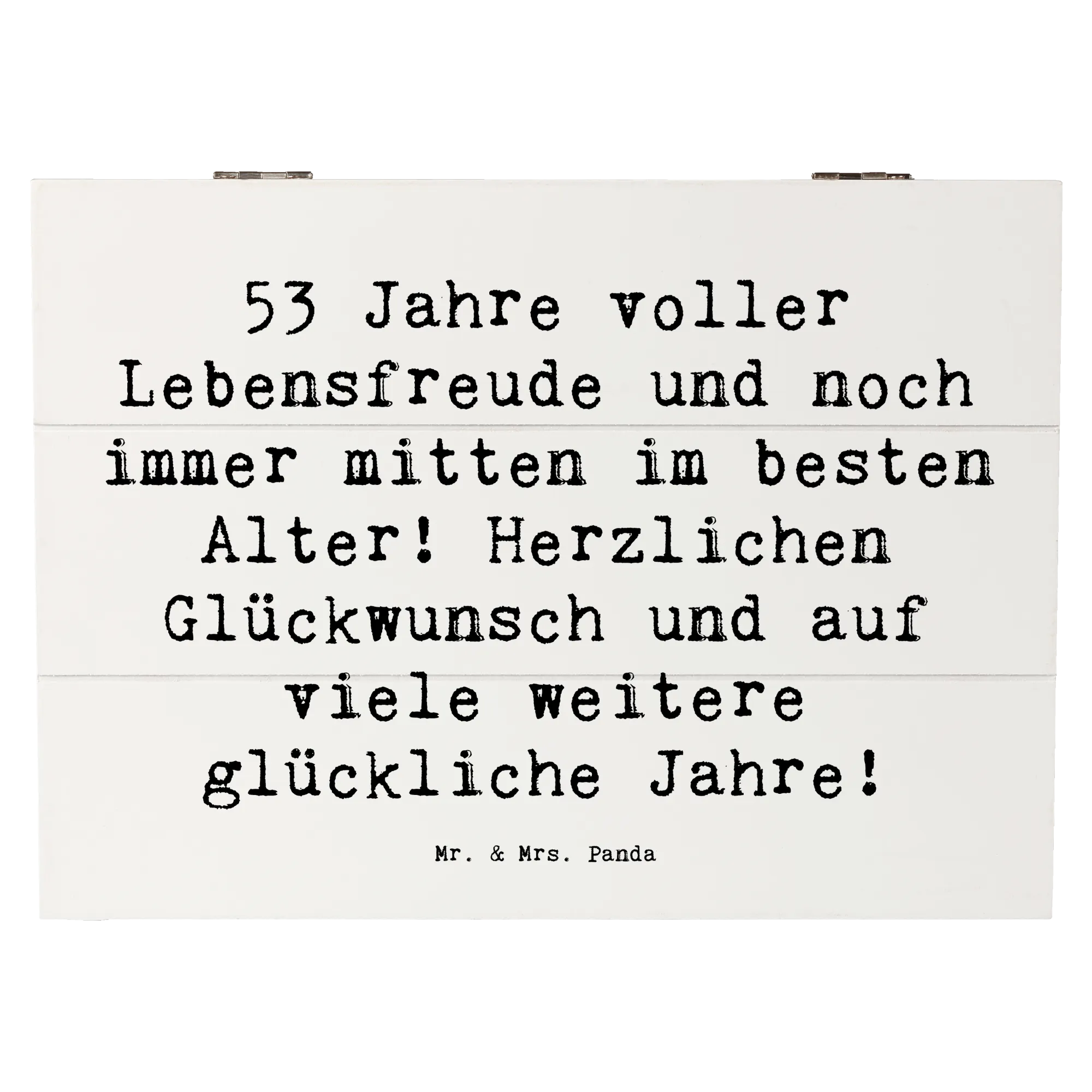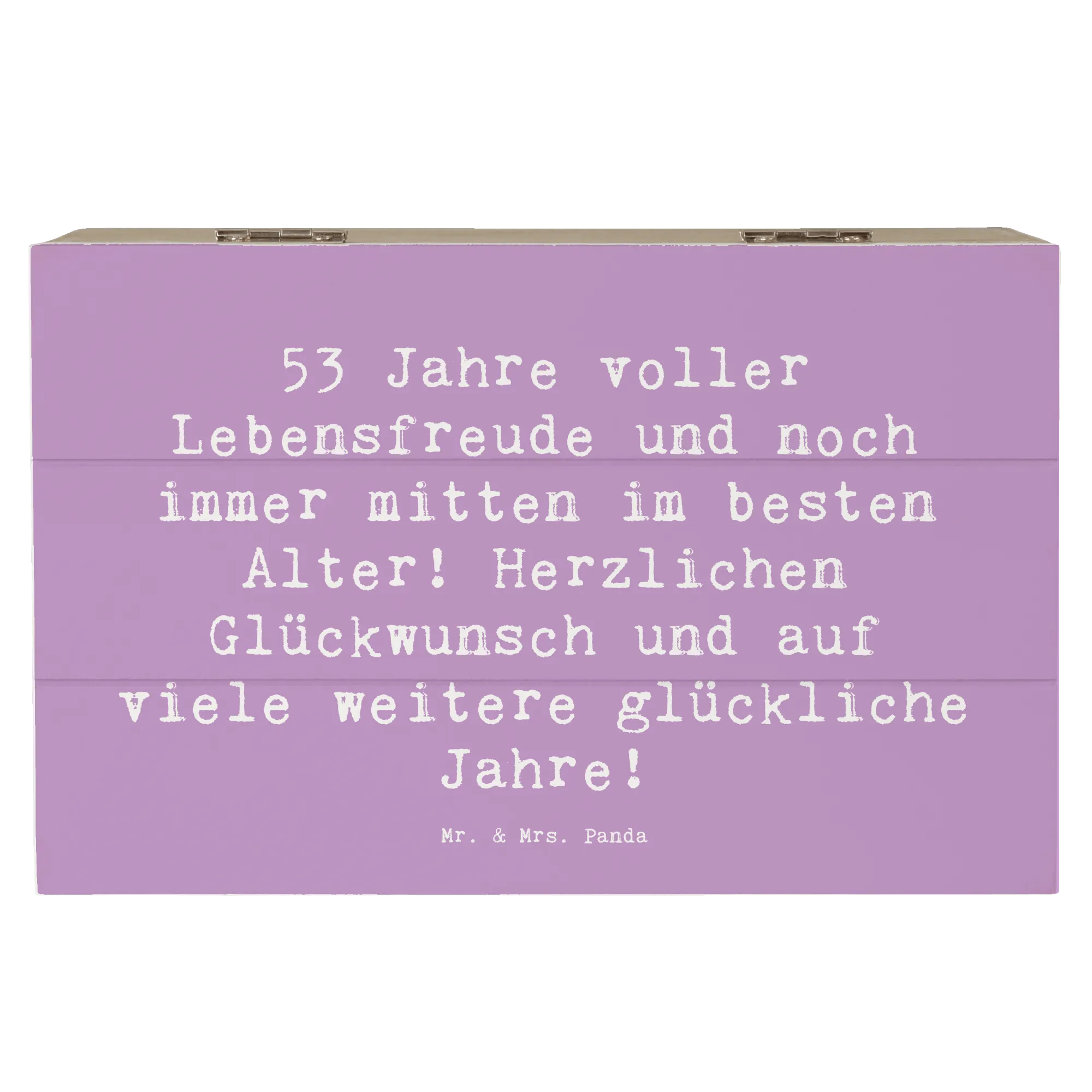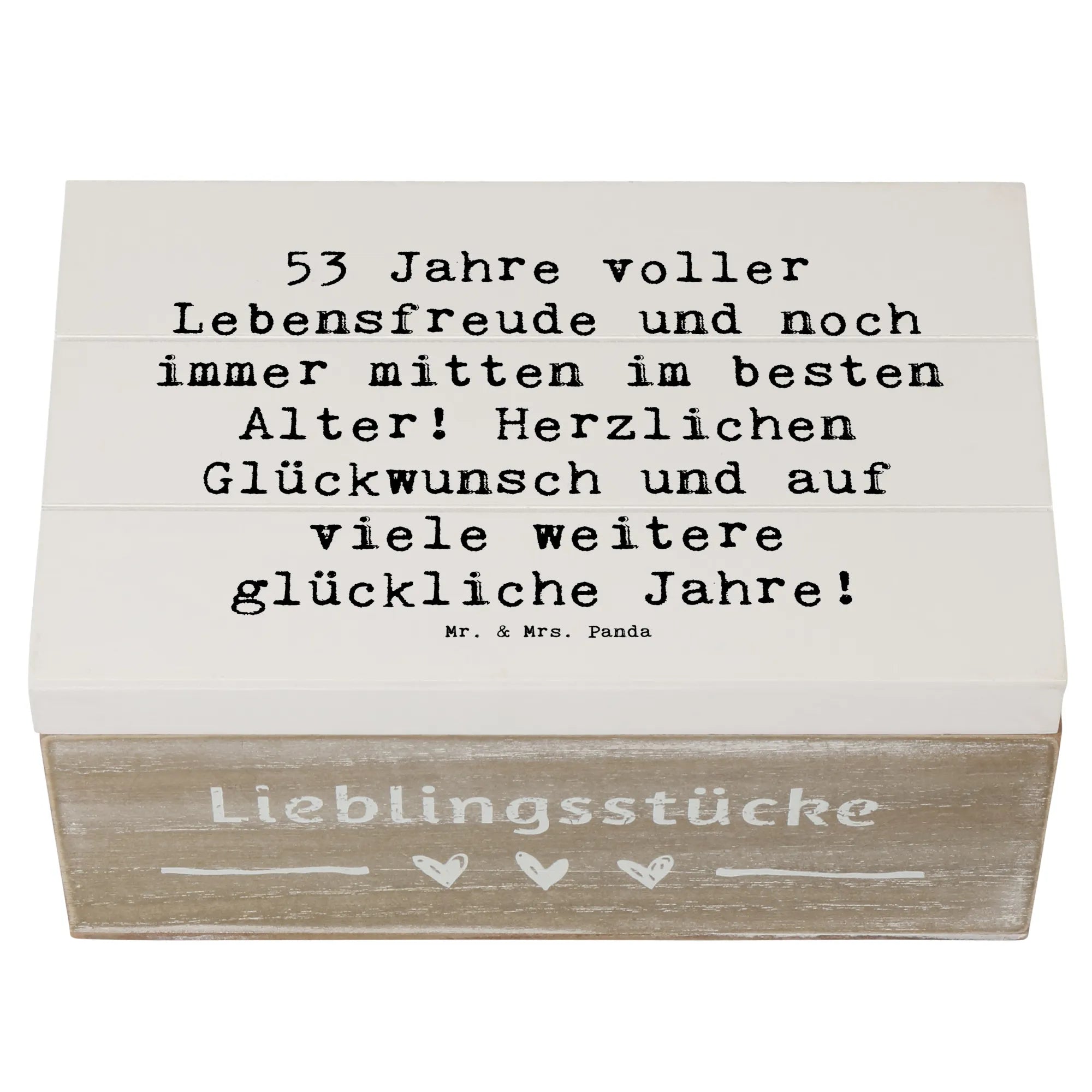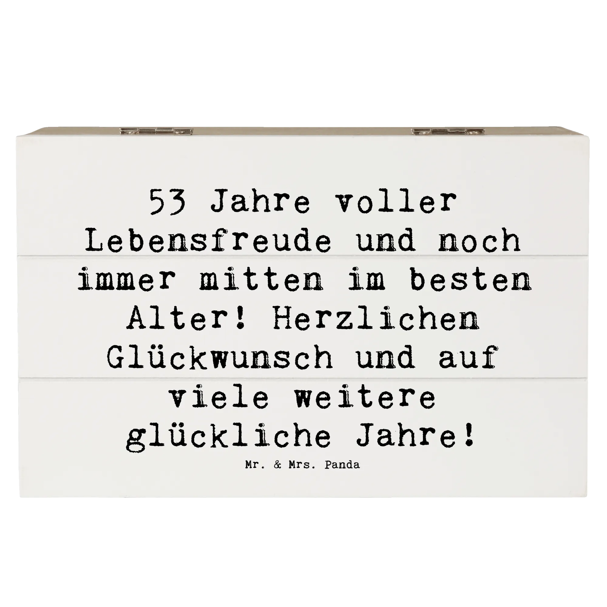 Die wunderschöne Holzkiste von Mr. & Mrs. Panda zum 53. Geburtstag ist das perfekte Geschenk für das Geburtstagskind, das voller Lebensfreude stecken soll! Mit dem liebevollen Spruch "53 Jahre voller Lebensfreude und noch immer mitten im besten Alter! Herzlichen Glückwunsch und auf viele weitere glückliche Jahre!" wird diese Kiste zu einem ganz besonderen Hingucker.