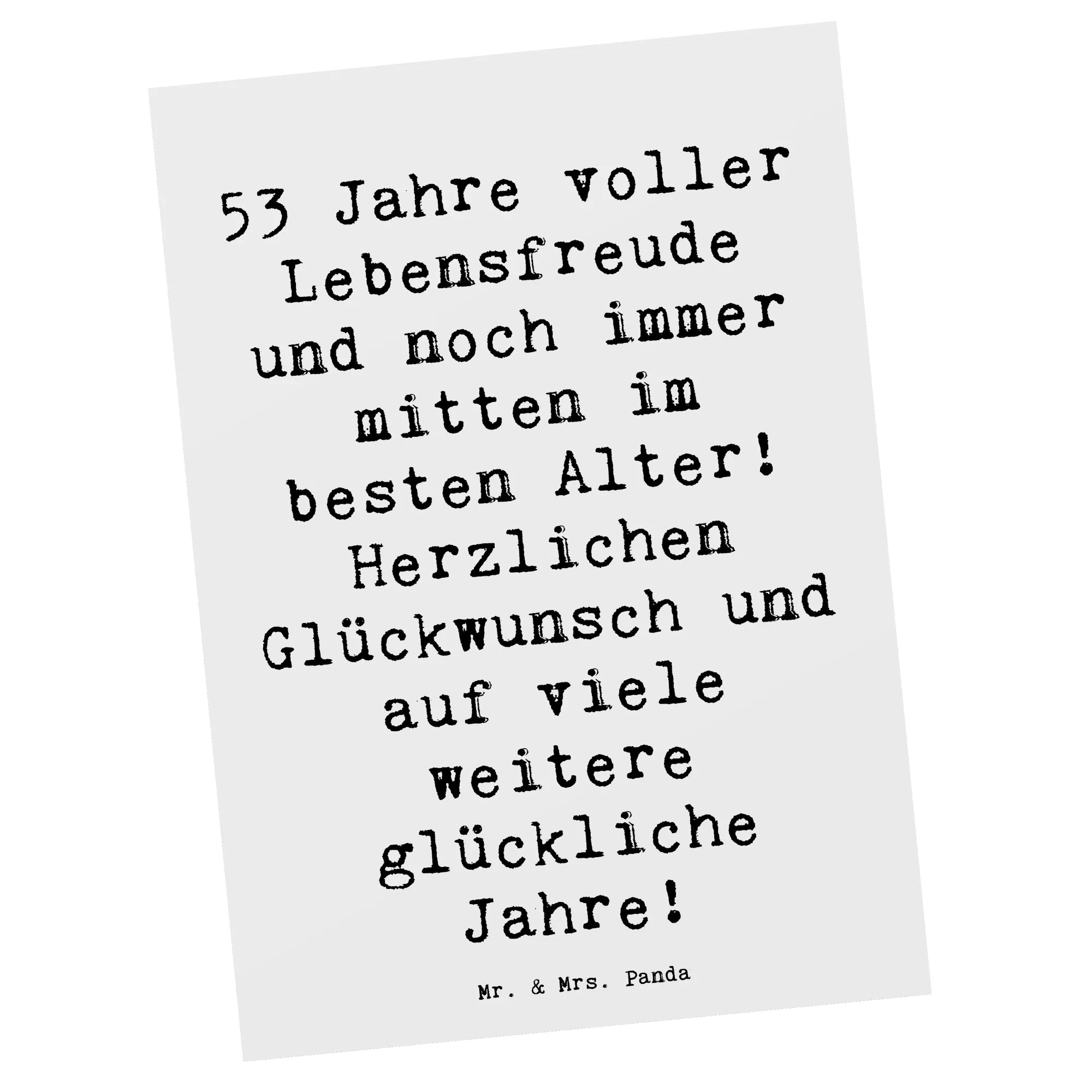 Du suchst nach dem perfekten Geschenk für den 53. Geburtstag eines besonderen Menschen? Dann ist unsere einzigartige Postkarte von Mr. & Mrs. Panda genau das Richtige für dich! Mit dem fröhlichen Slogan "53 Jahre voller Lebensfreude und noch immer mitten im besten Alter! Herzlichen Glückwunsch und auf viele weitere glückliche Jahre!" bringt diese Karte nicht nur ein Lächeln auf die Lippen, sondern macht jeden Geburtstag unvergesslich.