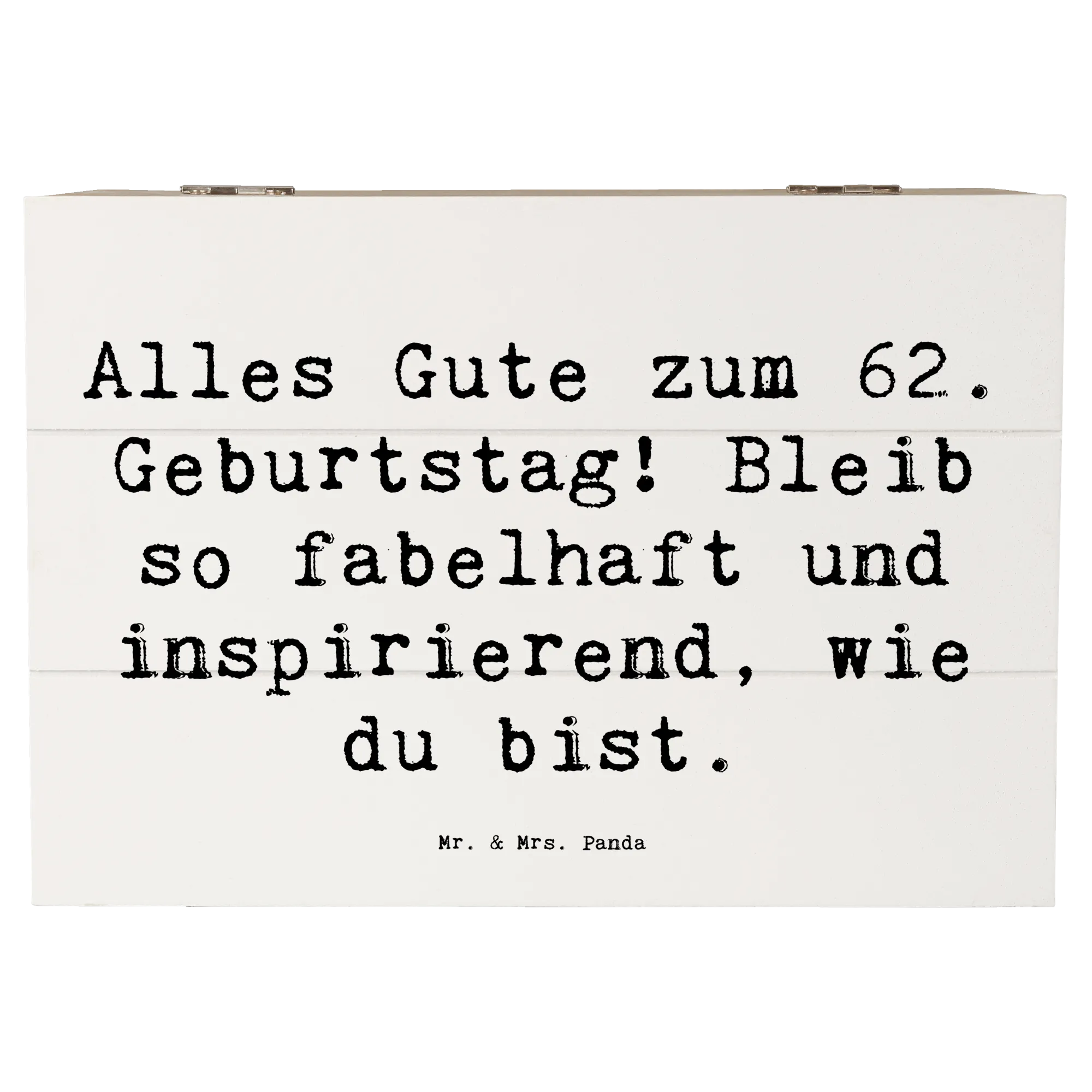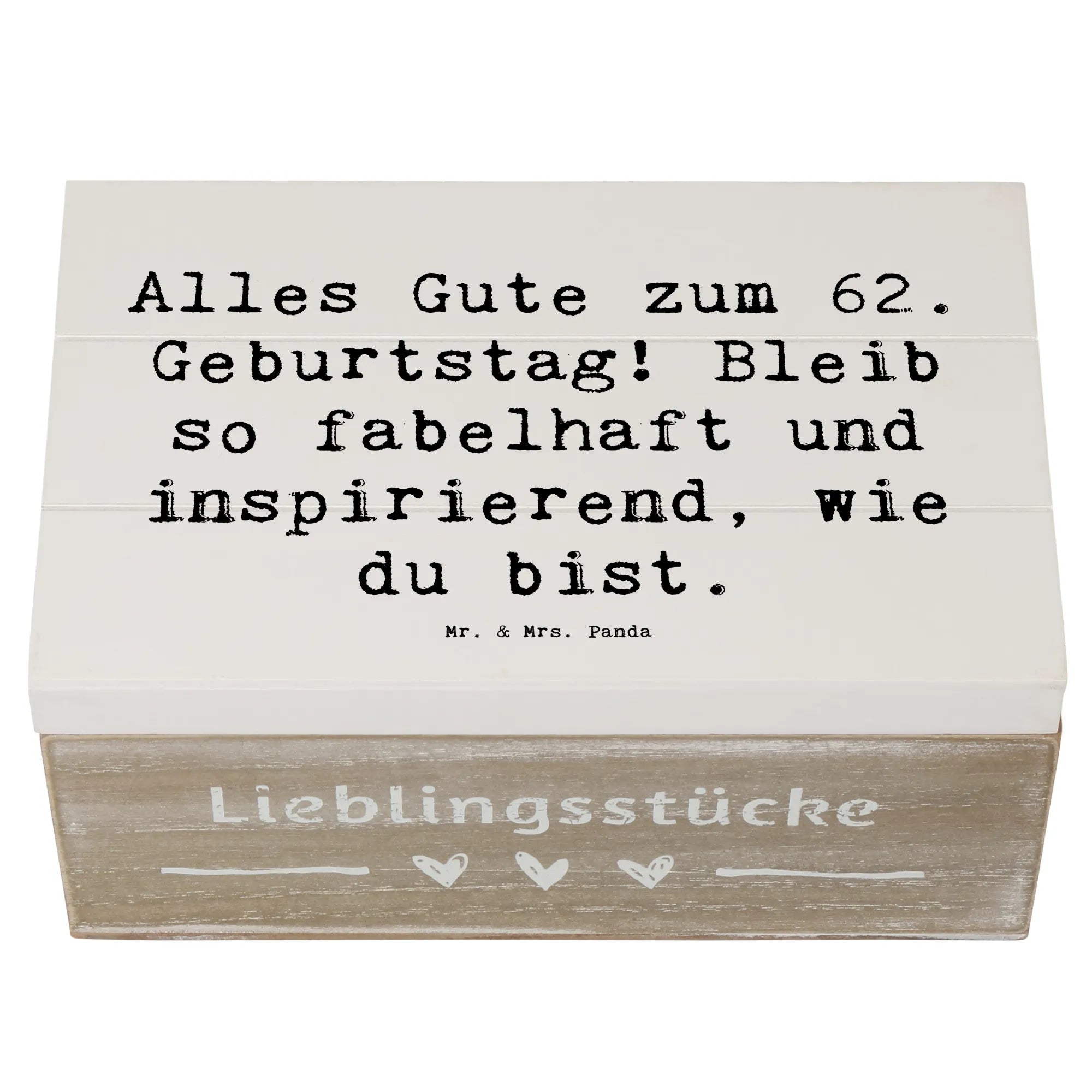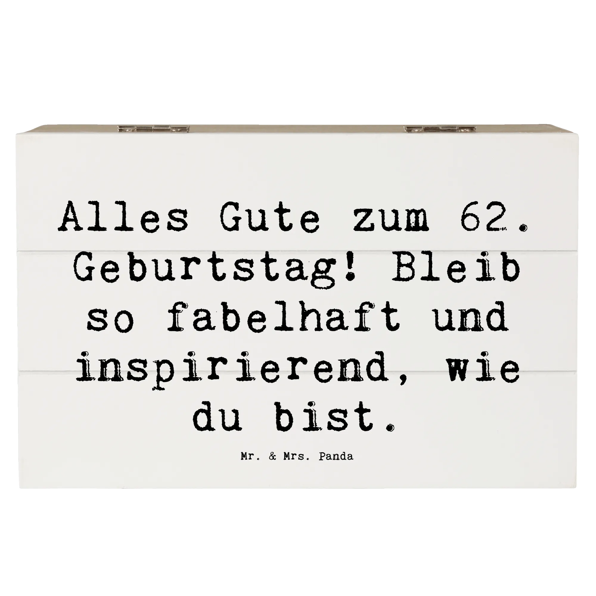 Die wunderschöne Holzkiste von Mr. & Mrs. Panda ist das perfekte Geschenk zum 62. Geburtstag! Diese liebevoll gestaltete Erinnerungskiste mit dem Spruch "Alles Gute zum 62. Geburtstag! Bleib so fabelhaft und inspirierend, wie du bist." ist nicht nur ein toller Blickfang, sondern auch ideal, um all die schönen Momente und Dinge des Lebens aufzubewahren.