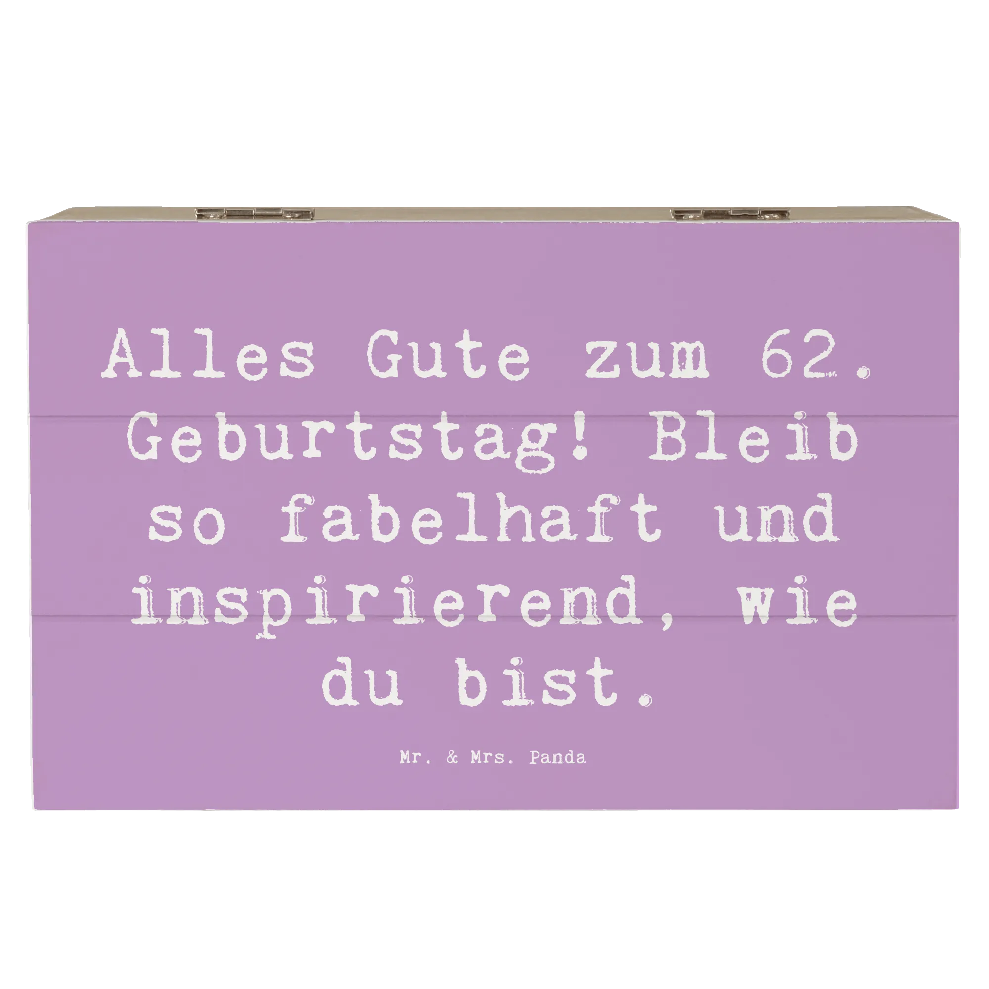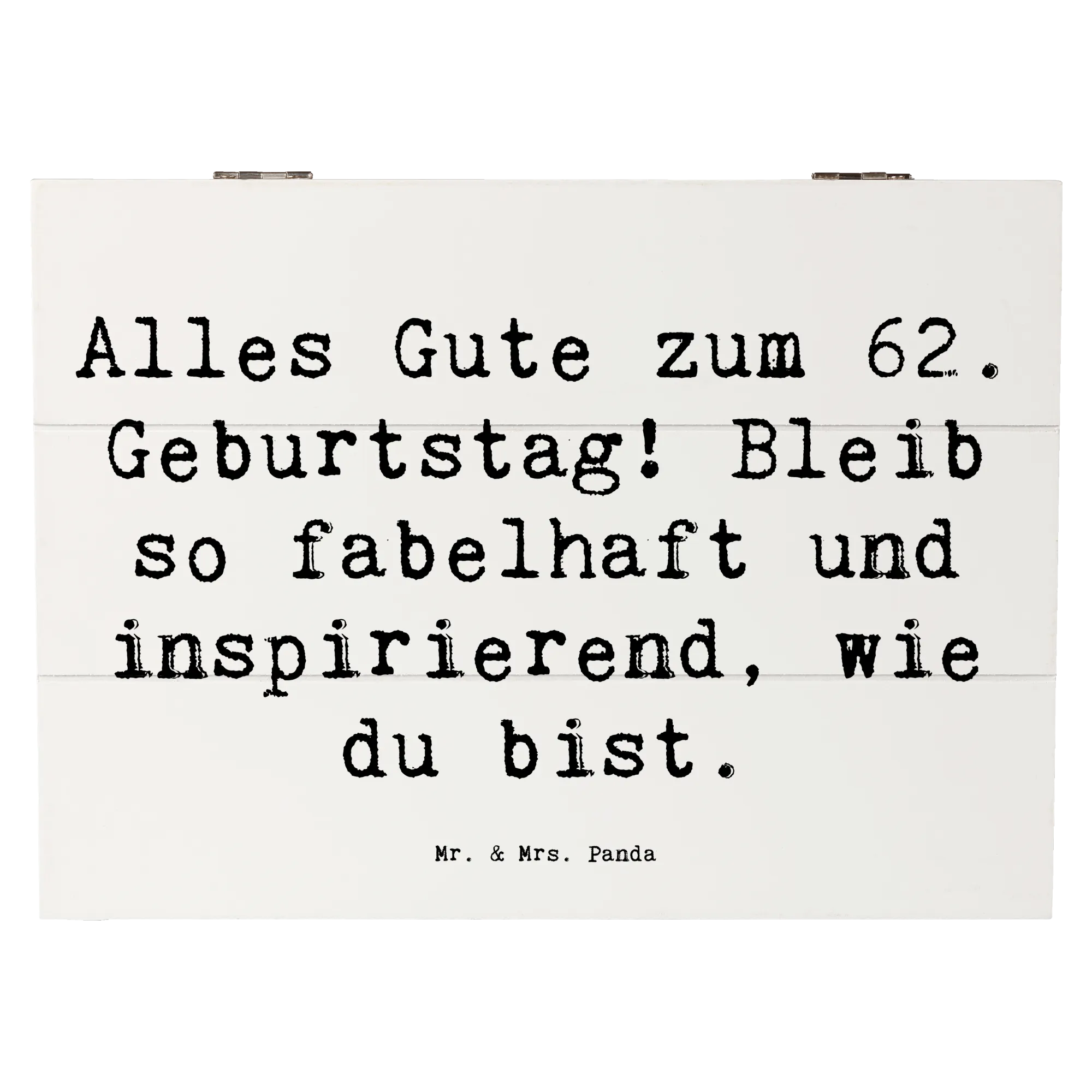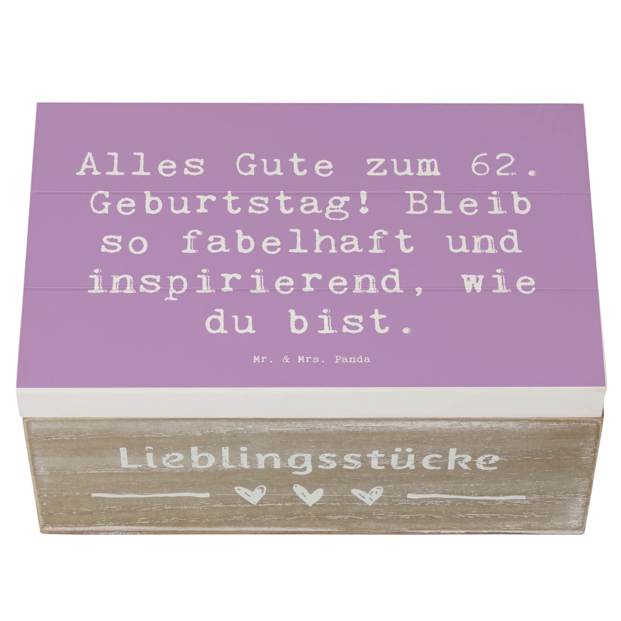 Die wunderschöne Holzkiste von Mr. & Mrs. Panda ist das perfekte Geschenk zum 62. Geburtstag! Diese liebevoll gestaltete Erinnerungskiste mit dem Spruch "Alles Gute zum 62. Geburtstag! Bleib so fabelhaft und inspirierend, wie du bist." ist nicht nur ein toller Blickfang, sondern auch ideal, um all die schönen Momente und Dinge des Lebens aufzubewahren.