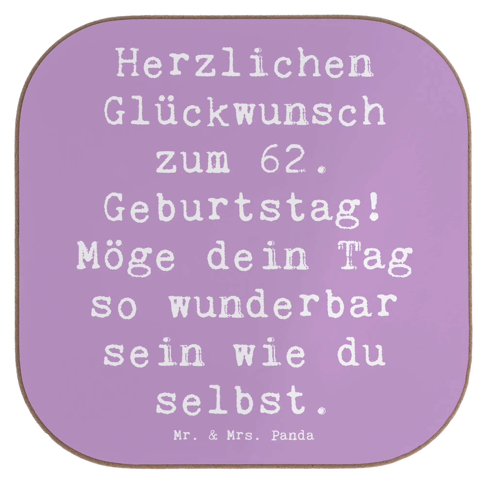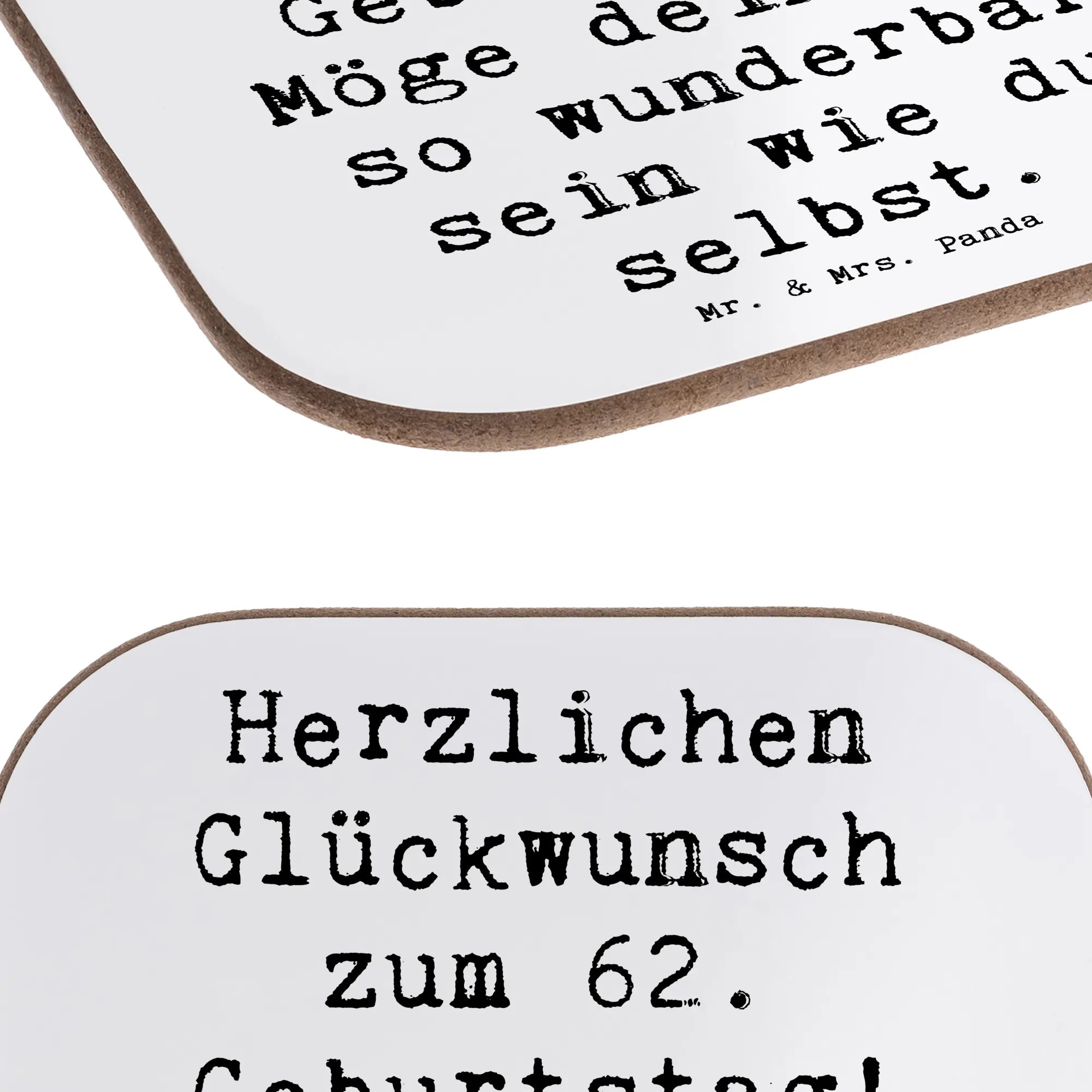 Der Untersetzer zum 62. Geburtstag von Mr. & Mrs. Panda ist das perfekte Geschenk für all jene, die einen besonderen Menschen in ihrem Leben feiern möchten! Mit dem liebevollen Spruch "Herzlichen Glückwunsch zum 62. Geburtstag! Möge dein Tag so wunderbar sein wie du selbst." bringt dieser quadratische Untersetzer jede Feier zum Strahlen. Egal ob als Geschenk für die beste Freundin, den liebenswerten Opa oder einen geschätzten Kollegen, dieser Untersetzer wird ein Herzstück jeder Geburtstagsparty.