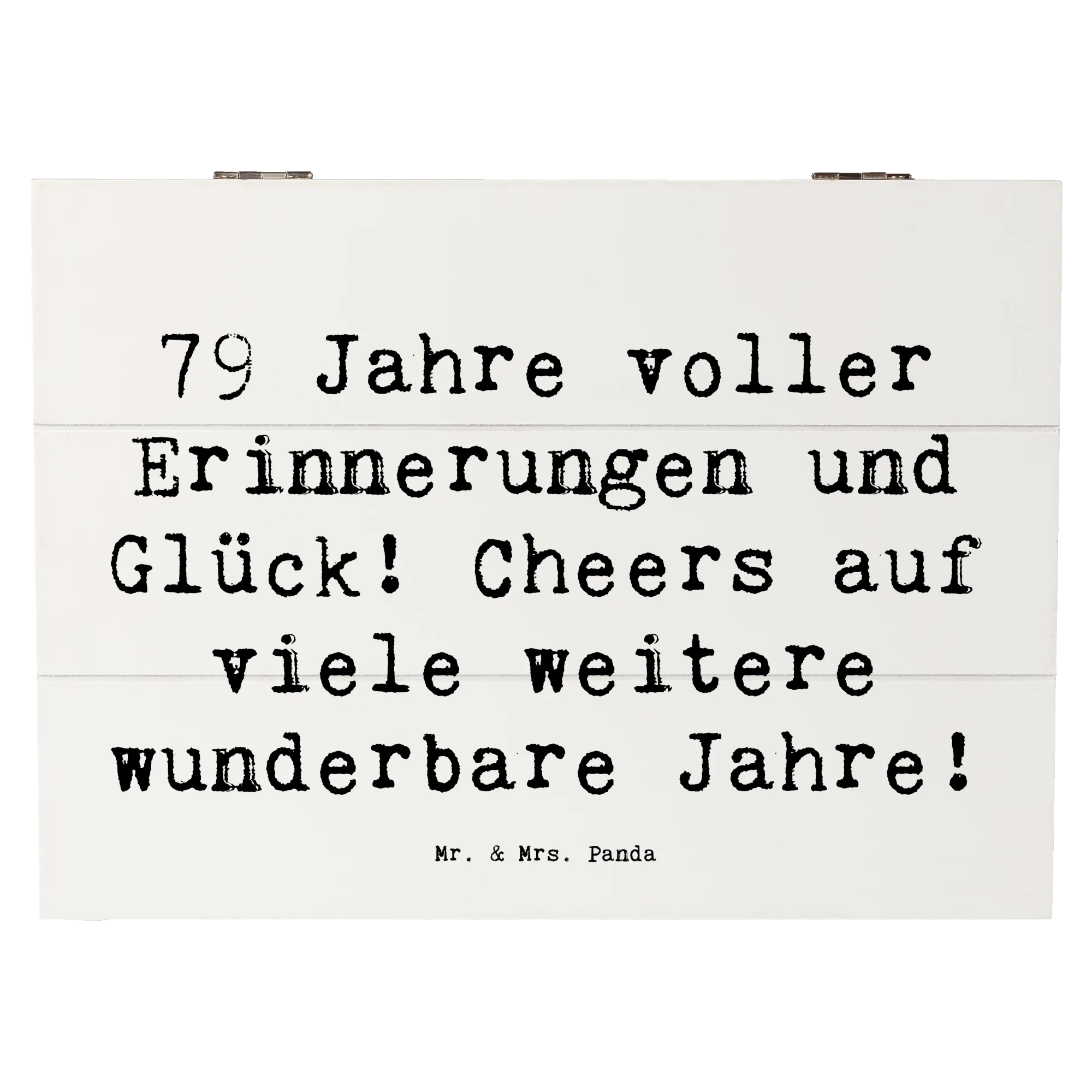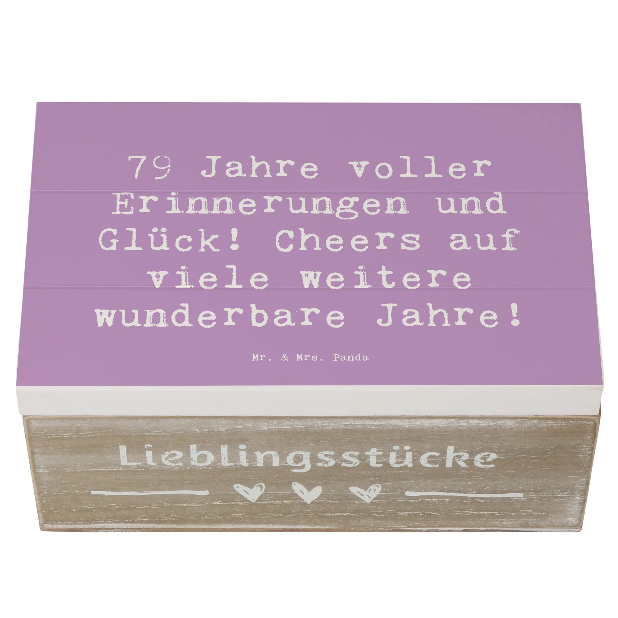 Die wunderschöne Holzkiste von Mr. & Mrs. Panda ist das perfekte Geschenk zum 79. Geburtstag. Mit dem liebevollen Motiv "79 Jahre voller Erinnerungen und Glück! Cheers auf viele weitere wunderbare Jahre!" ist sie nicht nur ein praktisches Aufbewahrungsmöbel, sondern auch ein emotionaler Begleiter für wunderbare Erinnerungen. Ob Fotos, kleine Schätze oder persönliche Briefe - hier findet alles seinen Platz.