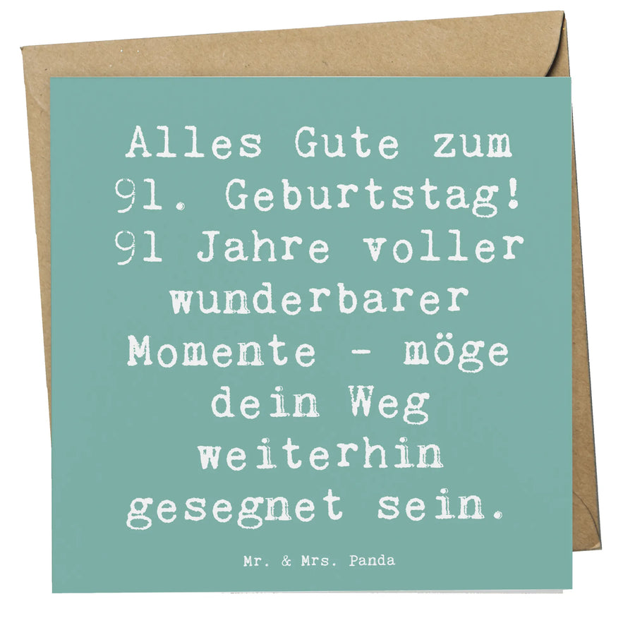 Mit dieser Karte sorgst du für strahlende Augen und freudige Herzen. Mache den 91. Geburtstag zu einem unvergesslichen Erlebnis, das lange in Erinnerung bleibt. Verschenke Freude und Liebe mit der Deluxe Karte von Mr. & Mrs. Panda und lass die Geburtstagsfeier zu einem Fest der Freundschaft und des Zusammenkommens werden! 🎈