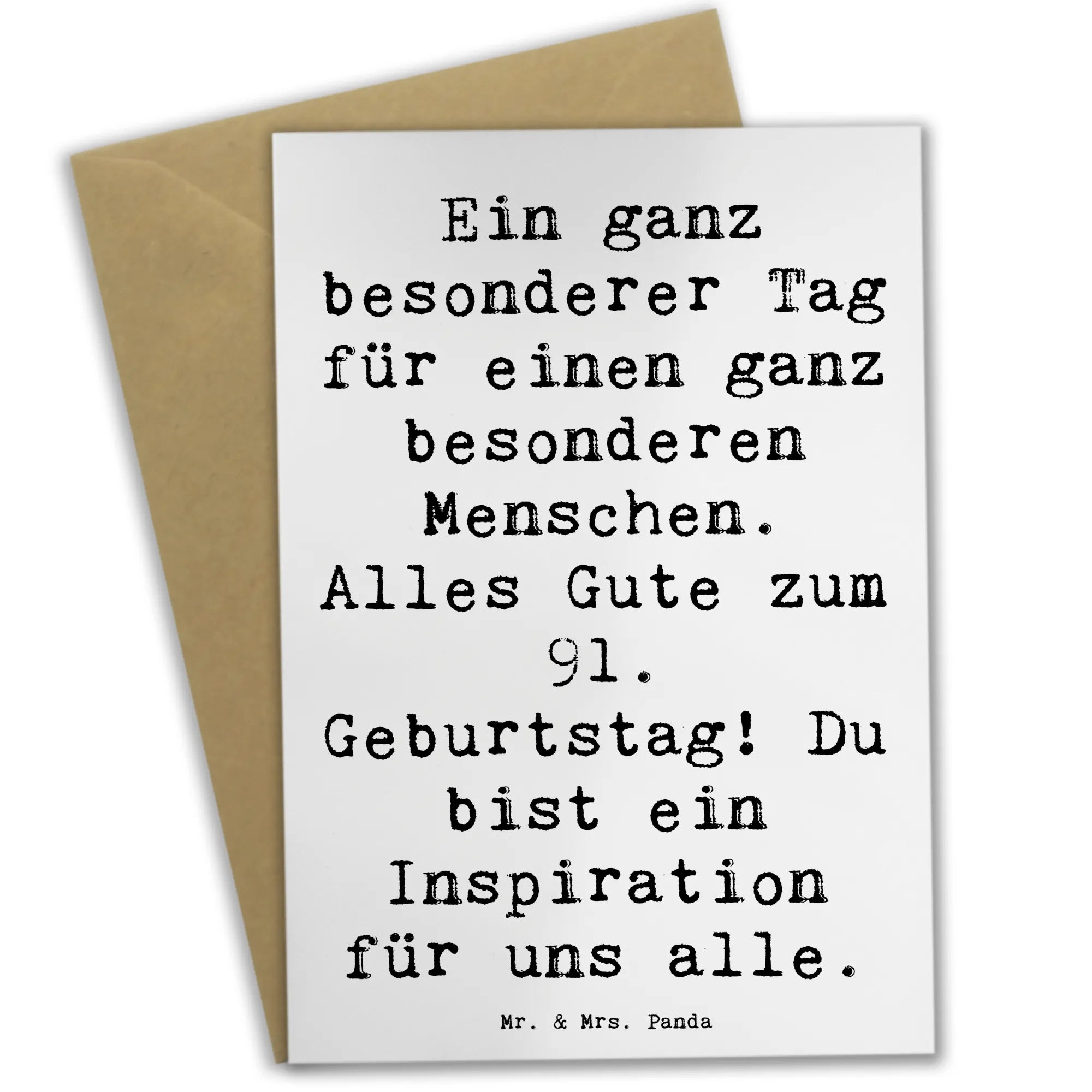 Die wunderschöne Grußkarte zum 91. Geburtstag von Mr. & Mrs. Panda ist ein ganz besonderes Geschenk für einen ganz besonderen Menschen. Sie eignet sich perfekt, um liebevolle Grüße und Glückwünsche zu übermitteln und diesen bedeutenden Tag auf unvergessliche Weise zu feiern. Mit dem niedlichen Motiv und dem herzlichen Spruch "Ein ganz besonderer Tag für einen ganz besonderen Menschen. Alles Gute zum 91. Geburtstag! Du bist eine Inspiration für uns alle." wird die Karte zu einem absoluten Highlight.