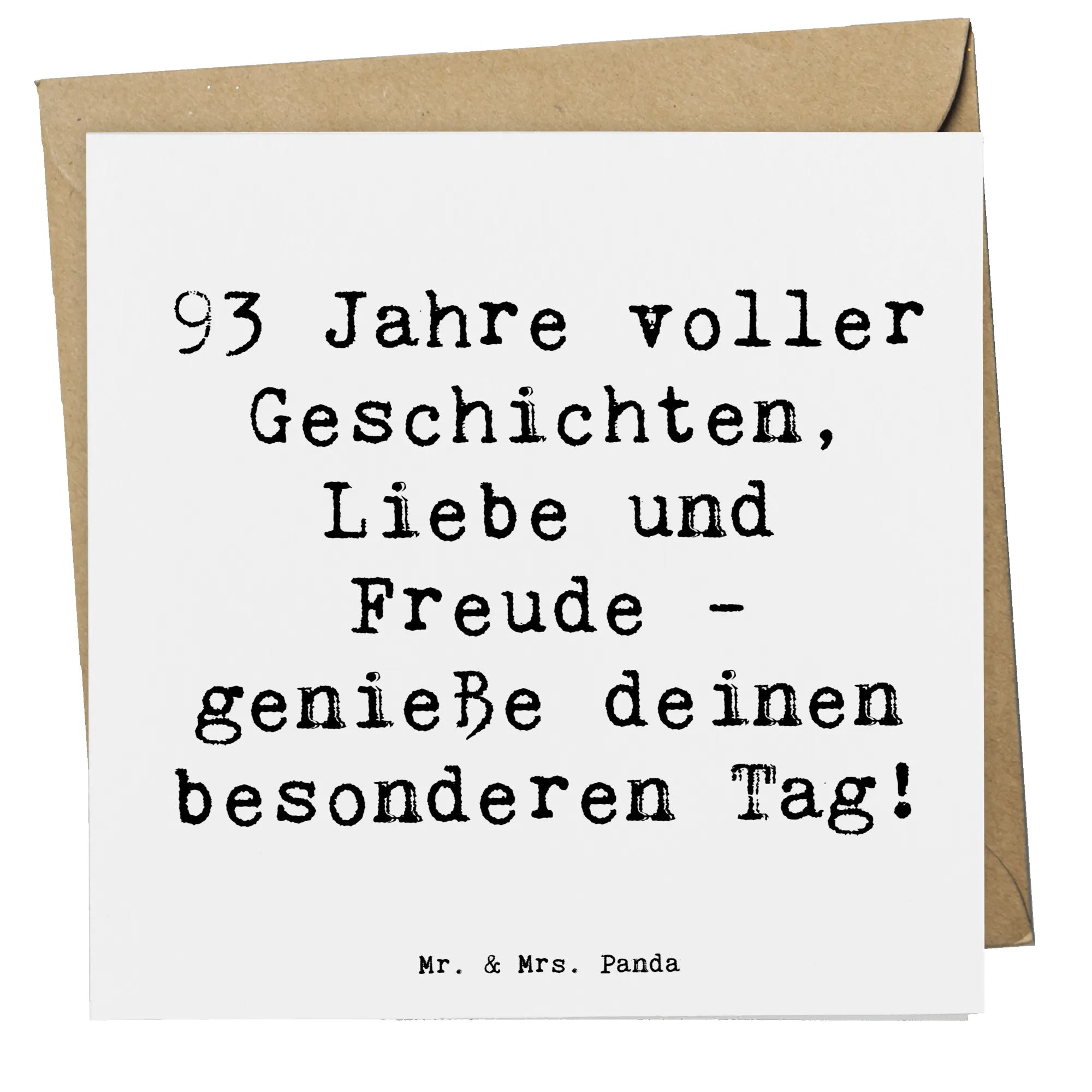 Suchst du das perfekte Geschenk zum 93. Geburtstag? Unsere Deluxe Karte von Mr. & Mrs. Panda ist die ideale Wahl! Mit dem liebevollen Spruch "93 Jahre voller Geschichten, Liebe und Freude - genieße deinen besonderen Tag!" zauberst du ein Lächeln auf das Gesicht des Geburtstagskindes. Diese hochwertige Klappkarte misst 140 mm x 140 mm und ist aus edlem 300 Gramm Karton gefertigt. Ihre hochglänzende Vorderseite und matte Innenseite bieten den perfekten Rahmen für deine persönlichen Glückwünsche oder Erinnerungen.