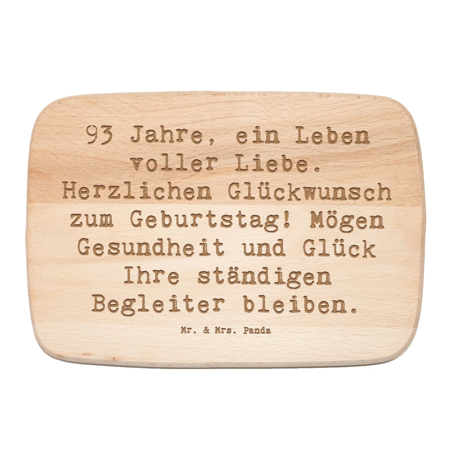 Das Frühstücksbrett von Mr. & Mrs. Panda zum 93. Geburtstag ist das perfekte Geschenk für jeden Jubilar und ein wahrer Hingucker in jeder Küche. Mit einem liebevollen Spruch, der besagt: "93 Jahre, ein Leben voller Liebe. Herzlichen Glückwunsch zum Geburtstag! Mögen Gesundheit und Glück Ihre ständigen Begleiter bleiben." wird dieses Frühstücksbrett nicht nur bei den Mahlzeiten, sondern auch als Deko ein echter Blickfang.