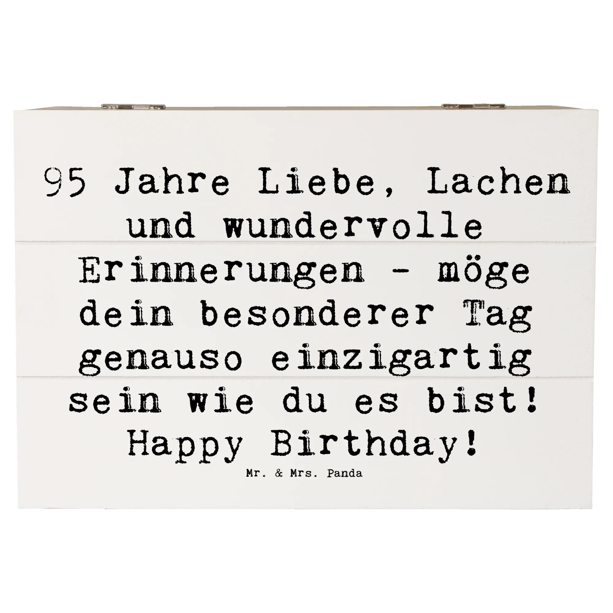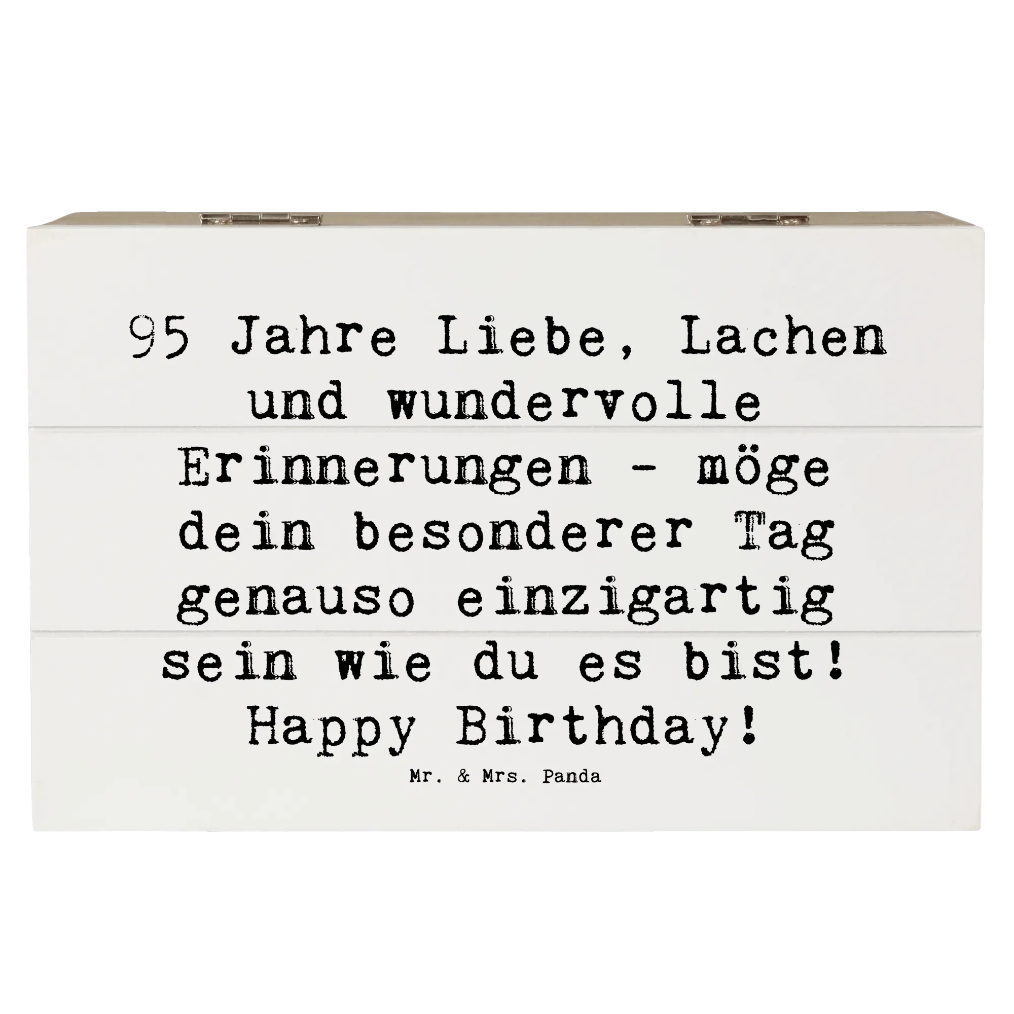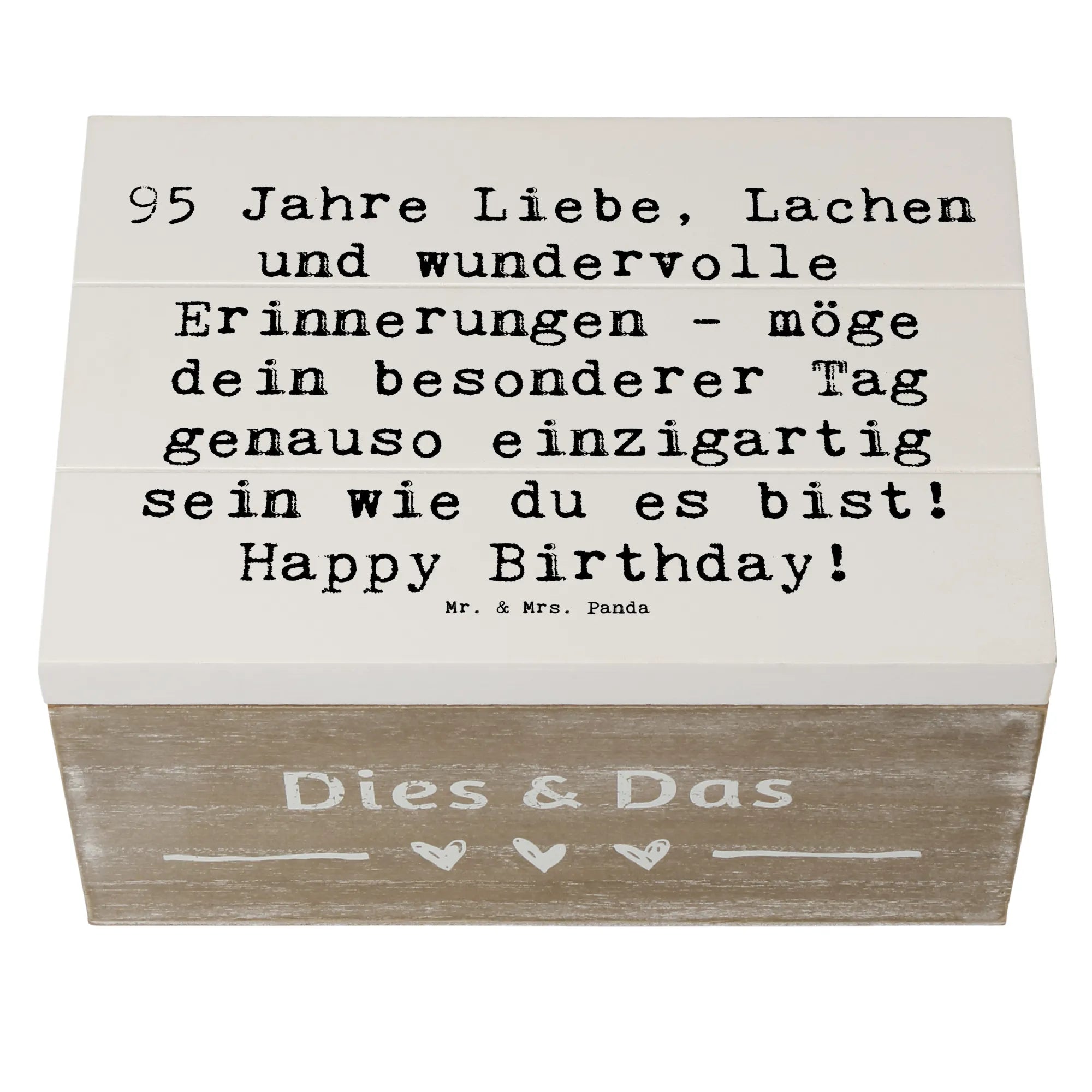 Lass kam voll von Liebe & Lachen die vergangenen Jahre und besonderen Momente neu aufleben! Verschenke die Holzkiste von Mr. & Mrs. Panda zum 95. Geburtstag und schenke unvergessliche Augenblicke und Erinnerungen. Ideal als Geschenkdose oder dekorative Aufbewahrungsbox, sie wird lieben und schätzen, die eine klare Botschaft über die Wertschätzung des Lebens verbreitet.