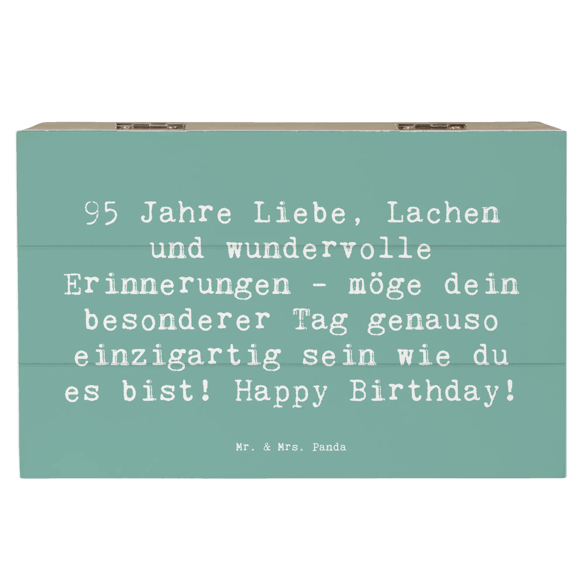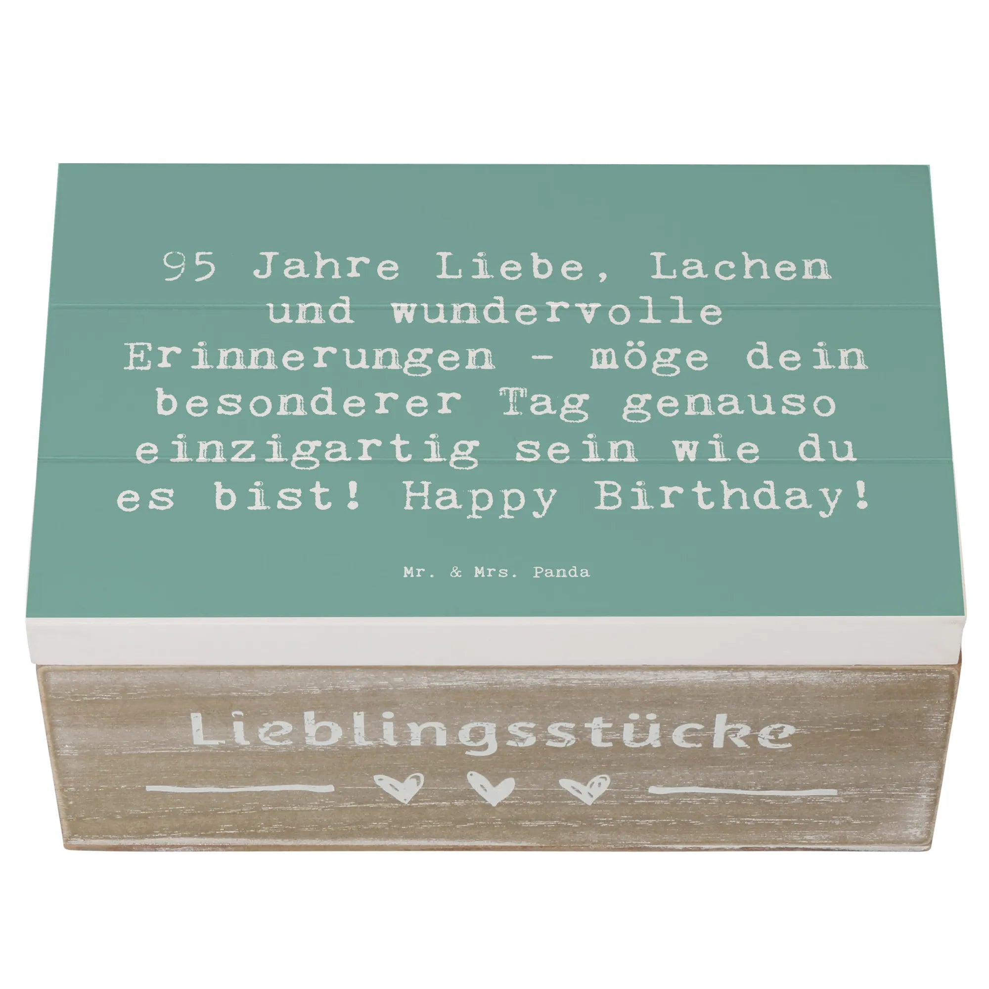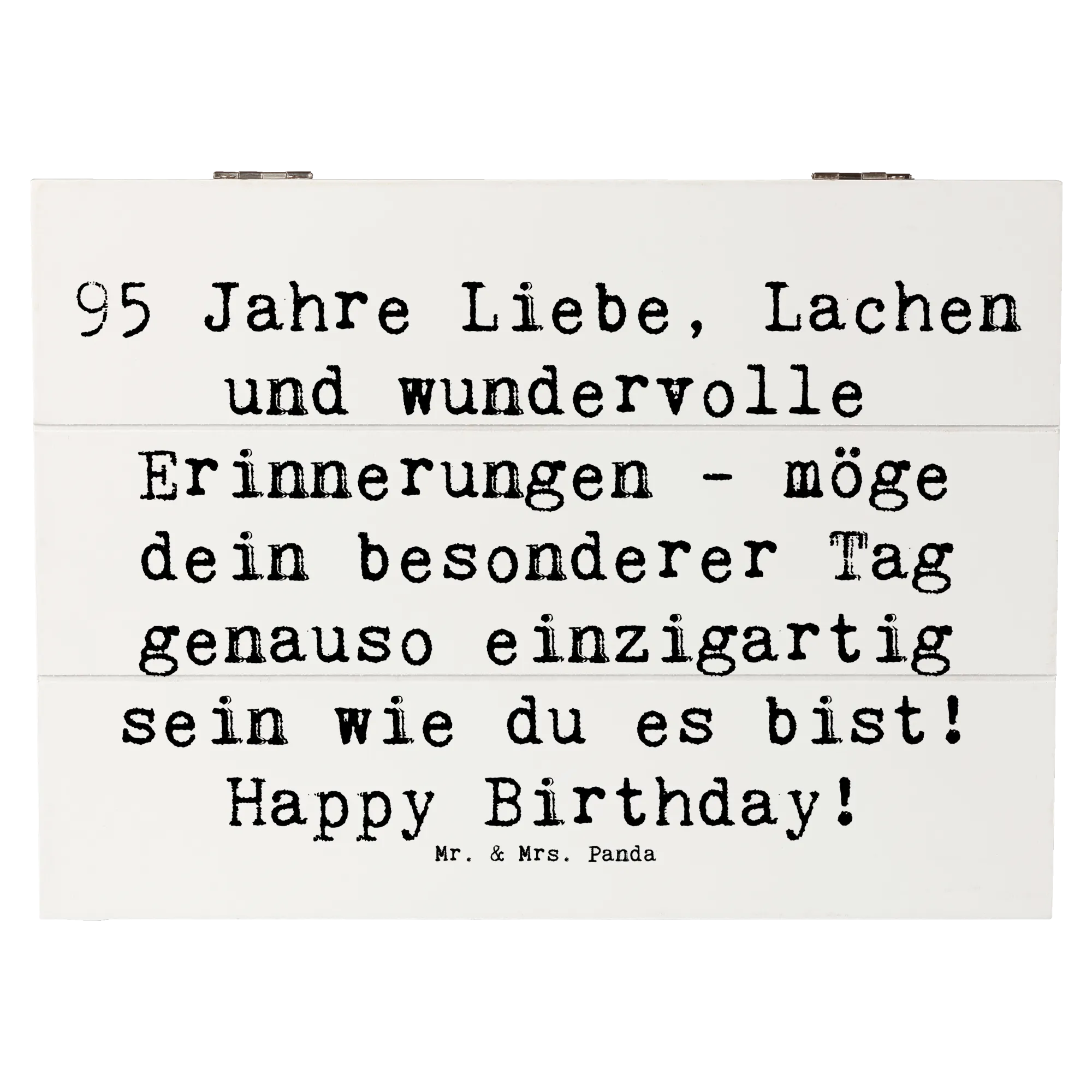 Lass kam voll von Liebe & Lachen die vergangenen Jahre und besonderen Momente neu aufleben! Verschenke die Holzkiste von Mr. & Mrs. Panda zum 95. Geburtstag und schenke unvergessliche Augenblicke und Erinnerungen. Ideal als Geschenkdose oder dekorative Aufbewahrungsbox, sie wird lieben und schätzen, die eine klare Botschaft über die Wertschätzung des Lebens verbreitet.