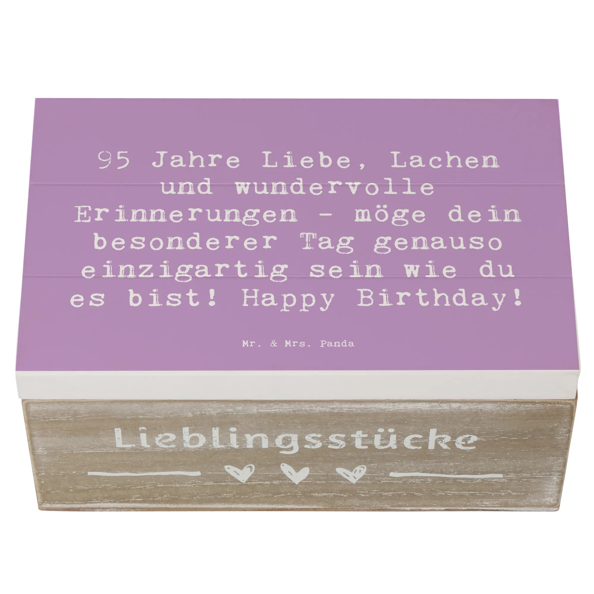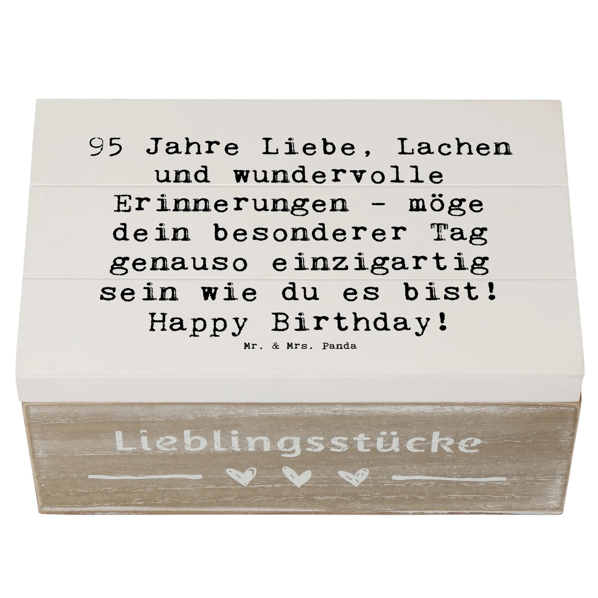Mach jemanden glücklich mit diesem außergewöhnlichen Geschenk - die Holzkiste von Mr. & Mrs. Panda ist die ideale Wahl zum 95. Geburtstag, die in Erinnerung bleibt!
