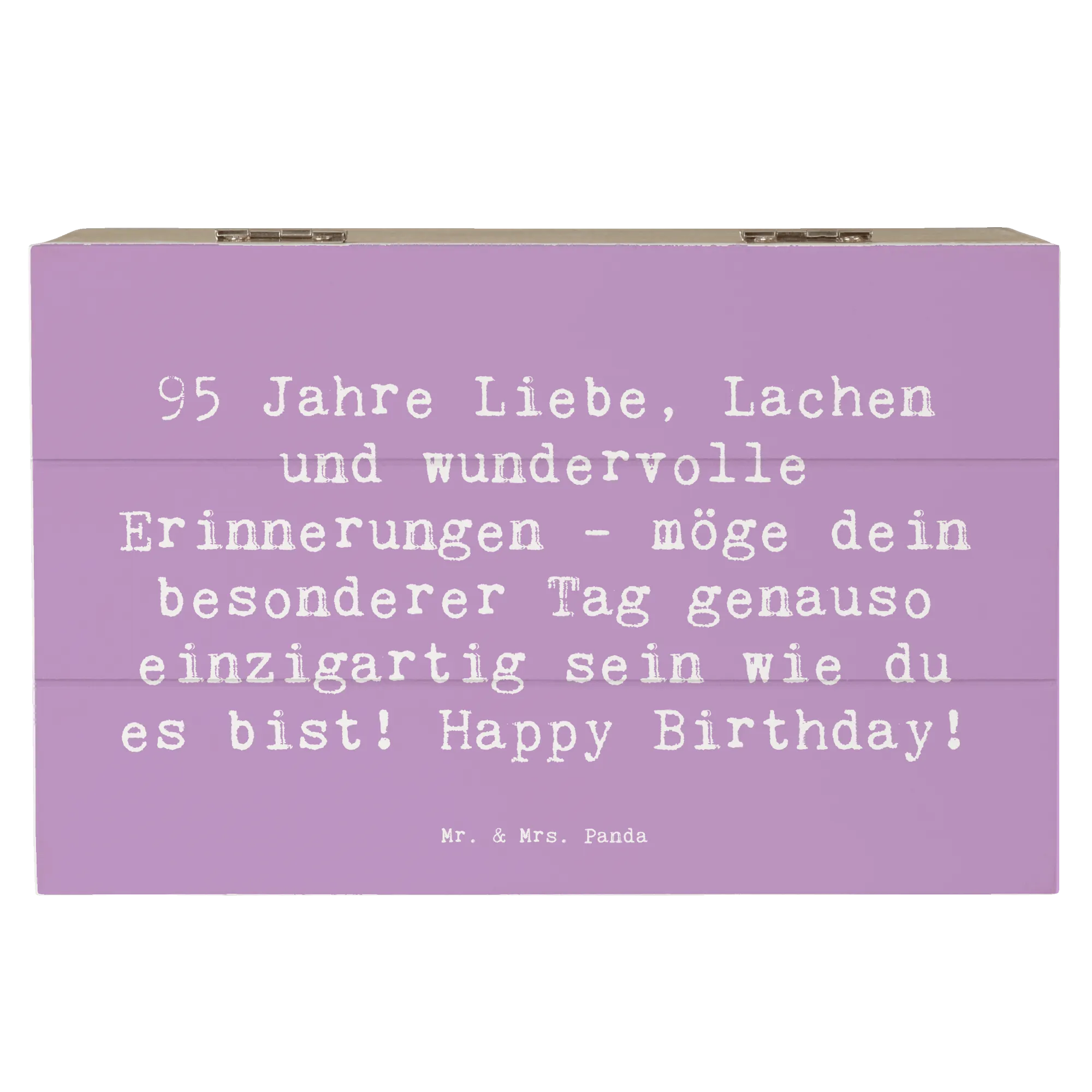 Die wunderschöne Holzkiste von Mr. & Mrs. Panda ist das perfekte Geschenk zum 95. Geburtstag. Mit dem liebevollen Motiv "95 Jahre Liebe, Lachen und wundervolle Erinnerungen - möge dein besonderer Tag genauso einzigartig sein wie du es bist! Happy Birthday!" zaubert sie jedem ein Lächeln ins Gesicht.