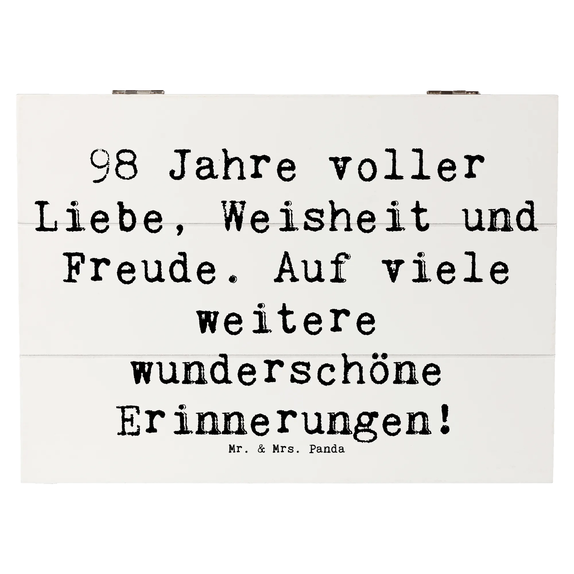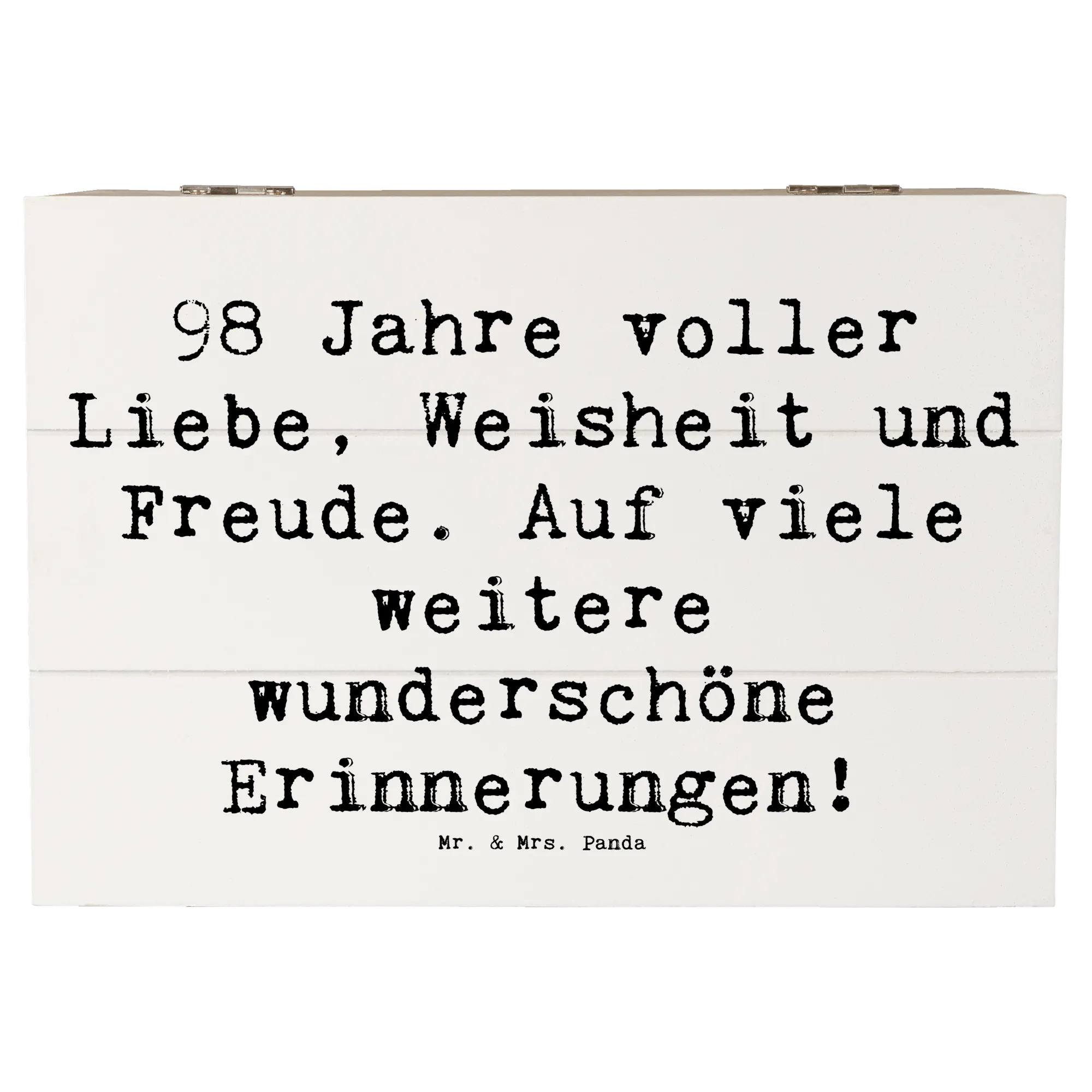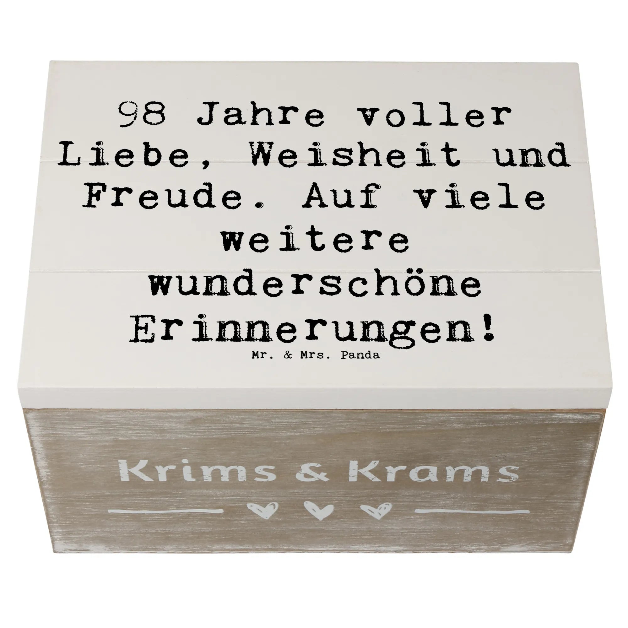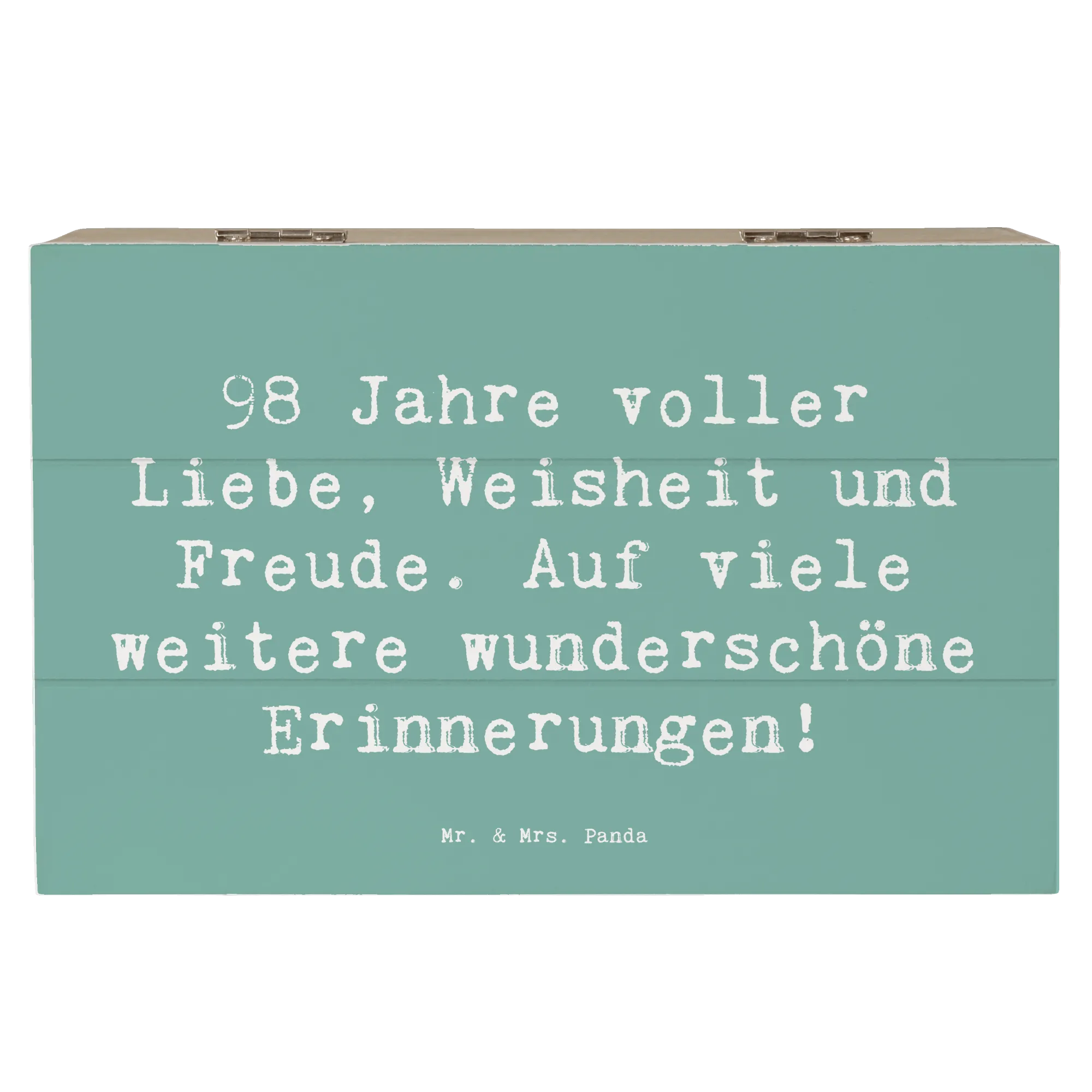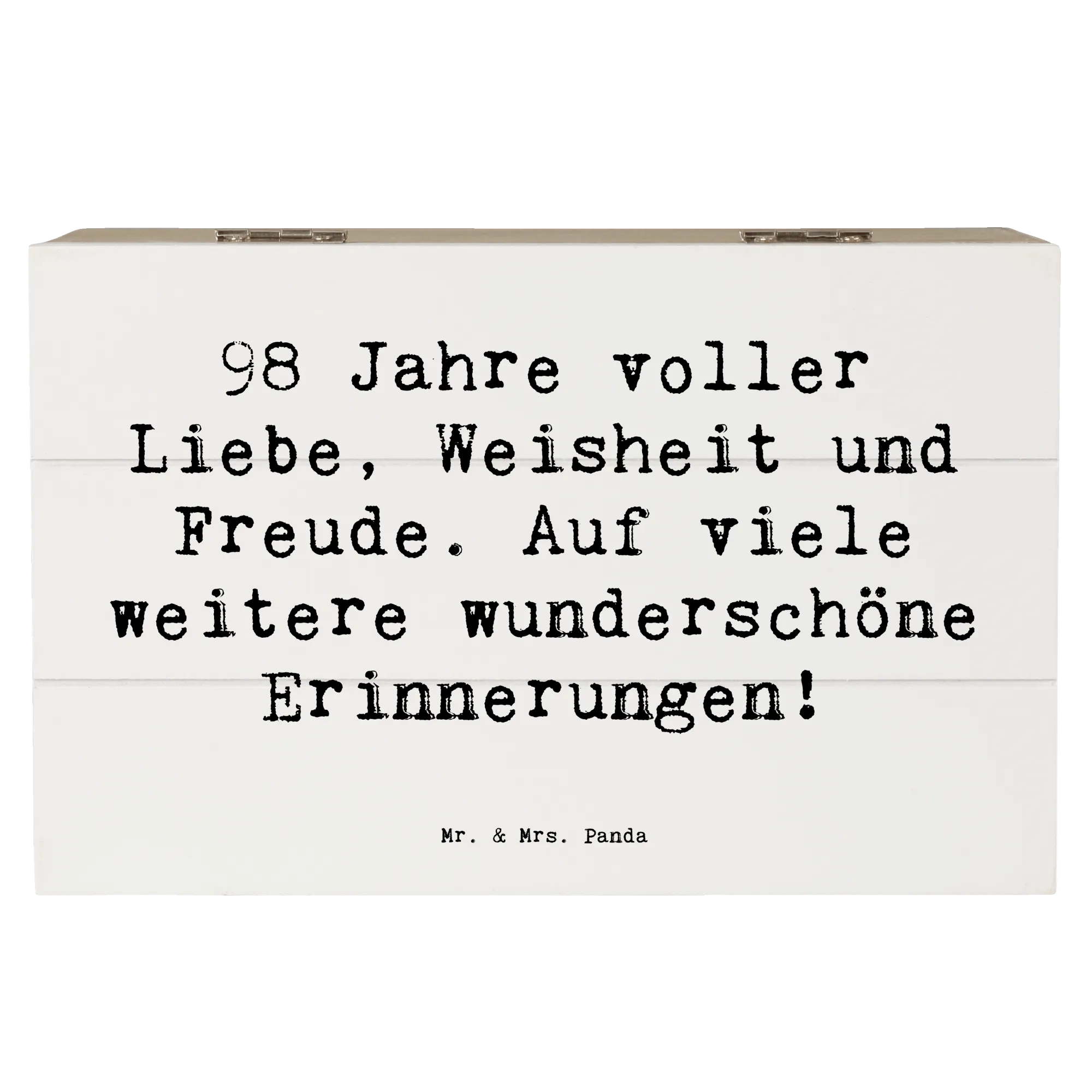 Die wunderschöne Holzkiste von Mr. & Mrs. Panda ist das perfekte Geschenk für den 98. Geburtstag! Mit ihrem liebevollen Design und dem Spruch '98 Jahre voller Liebe, Weisheit und Freude. Auf viele weitere wunderschöne Erinnerungen!' strahlt sie Wärme und Freude aus.