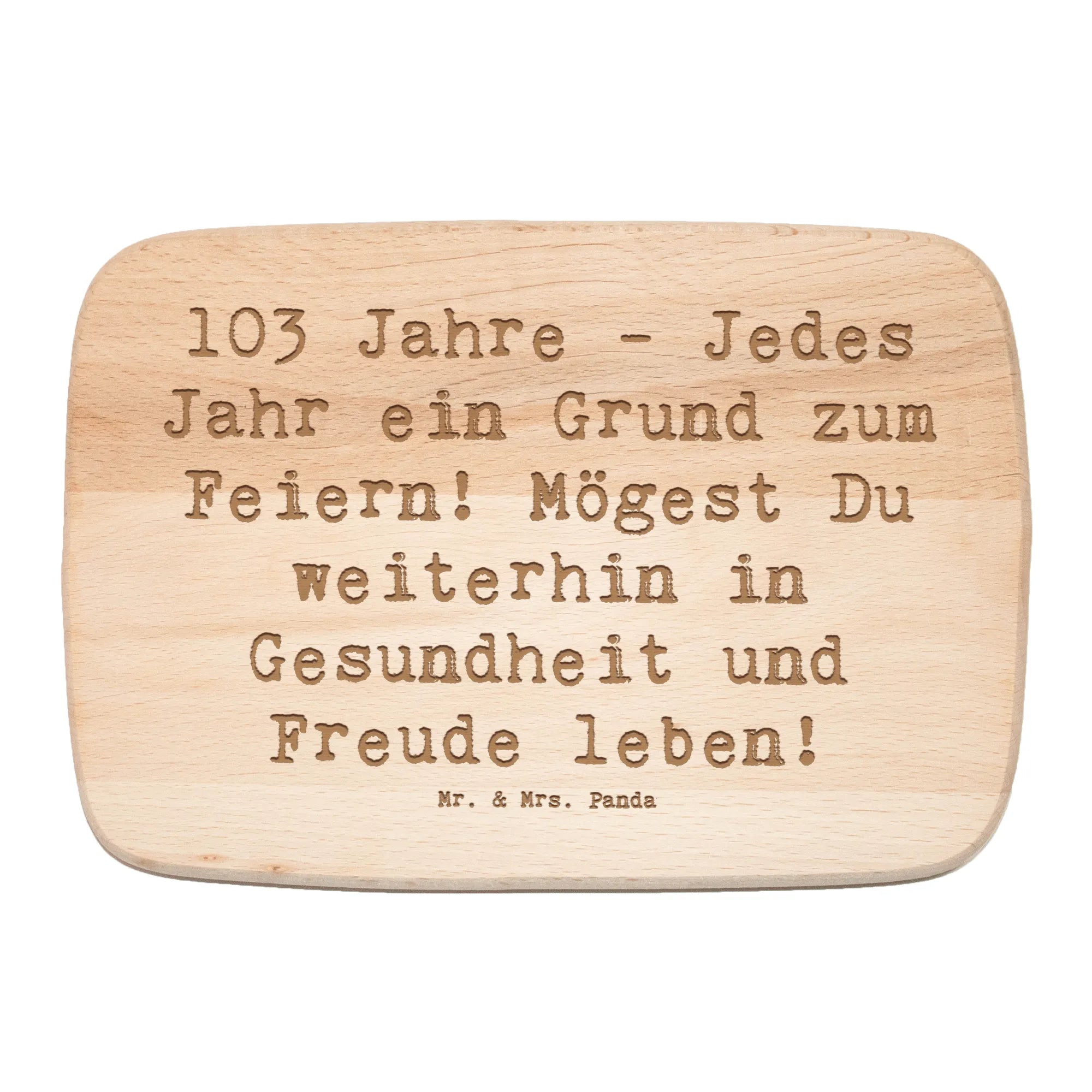 Das wunderschöne Frühstücksbrett "103 Jahre - Jedes Jahr ein Grund zum Feiern! Mögest Du weiterhin in Gesundheit und Freude leben!" von Mr. & Mrs. Panda ist das perfekte Geschenk für jeden, der seinen 103. Geburtstag feiert. Dieses edle, aus robustem Birkenholz gefertigte Brett ist nicht nur ein praktisches Küchenaccessoire, sondern auch ein liebevolles Andenken.