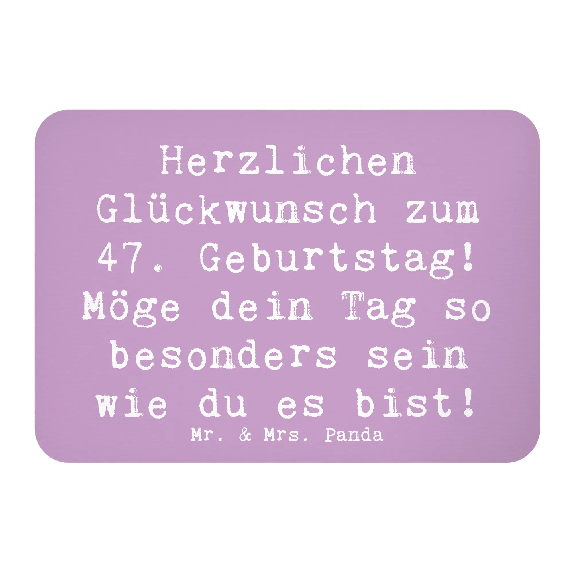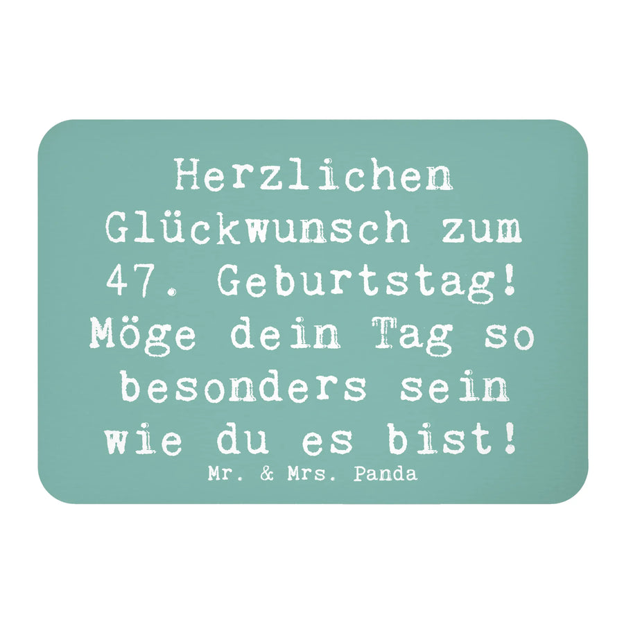 Der Kühlschrankmagnet "Herzlichen Glückwunsch zum 47. Geburtstag! Möge dein Tag so besonders sein wie du es bist!" von Mr. & Mrs. Panda ist das perfekte Geschenk für all jene, die den besonderen Tag eines geliebten Menschen gebührend feiern möchten. Mit seiner farbigen und liebevollen Gestaltung bringst du ein Lächeln auf die Gesichter der Geburtstagskinder und sorgst dafür, dass dieser Tag unvergesslich bleibt.