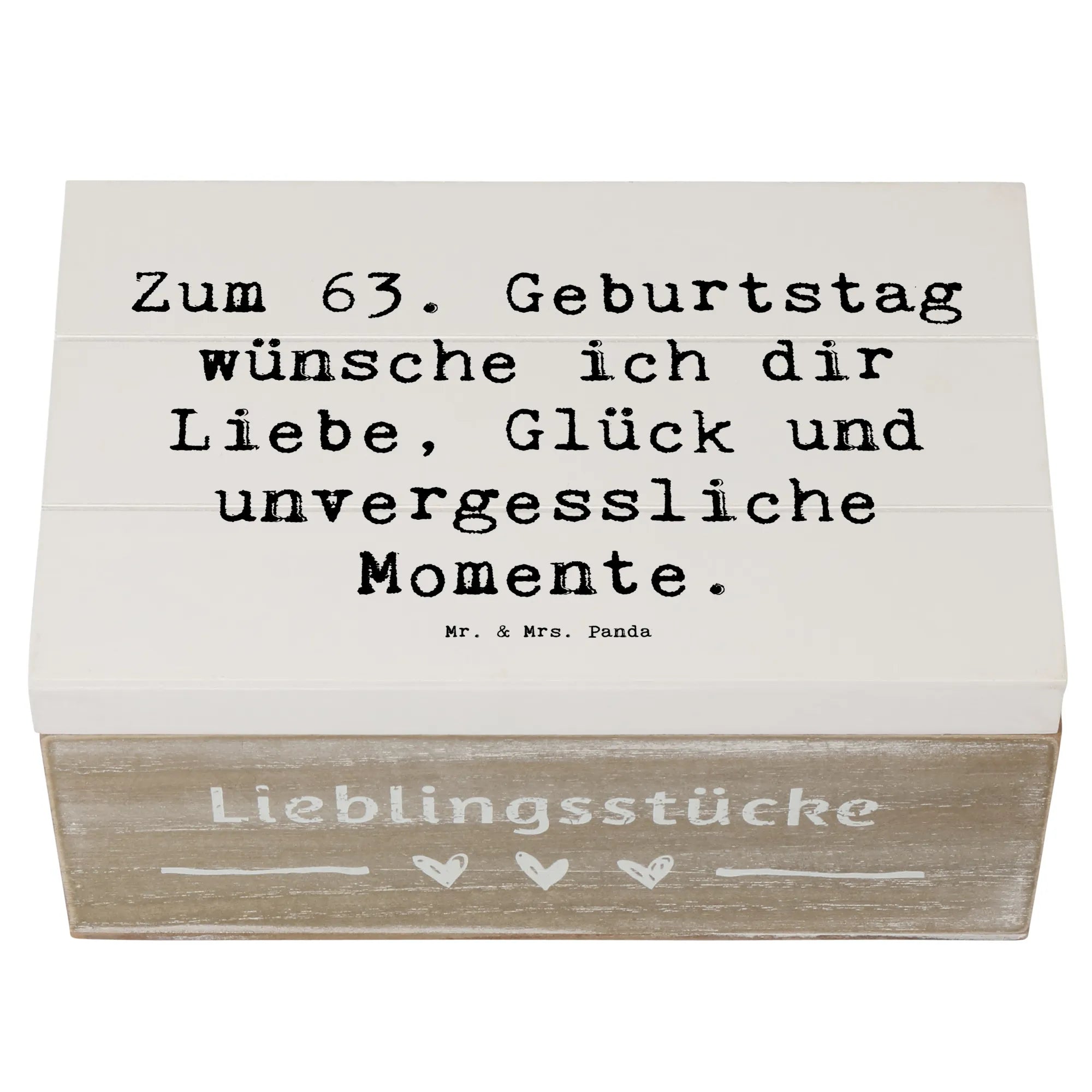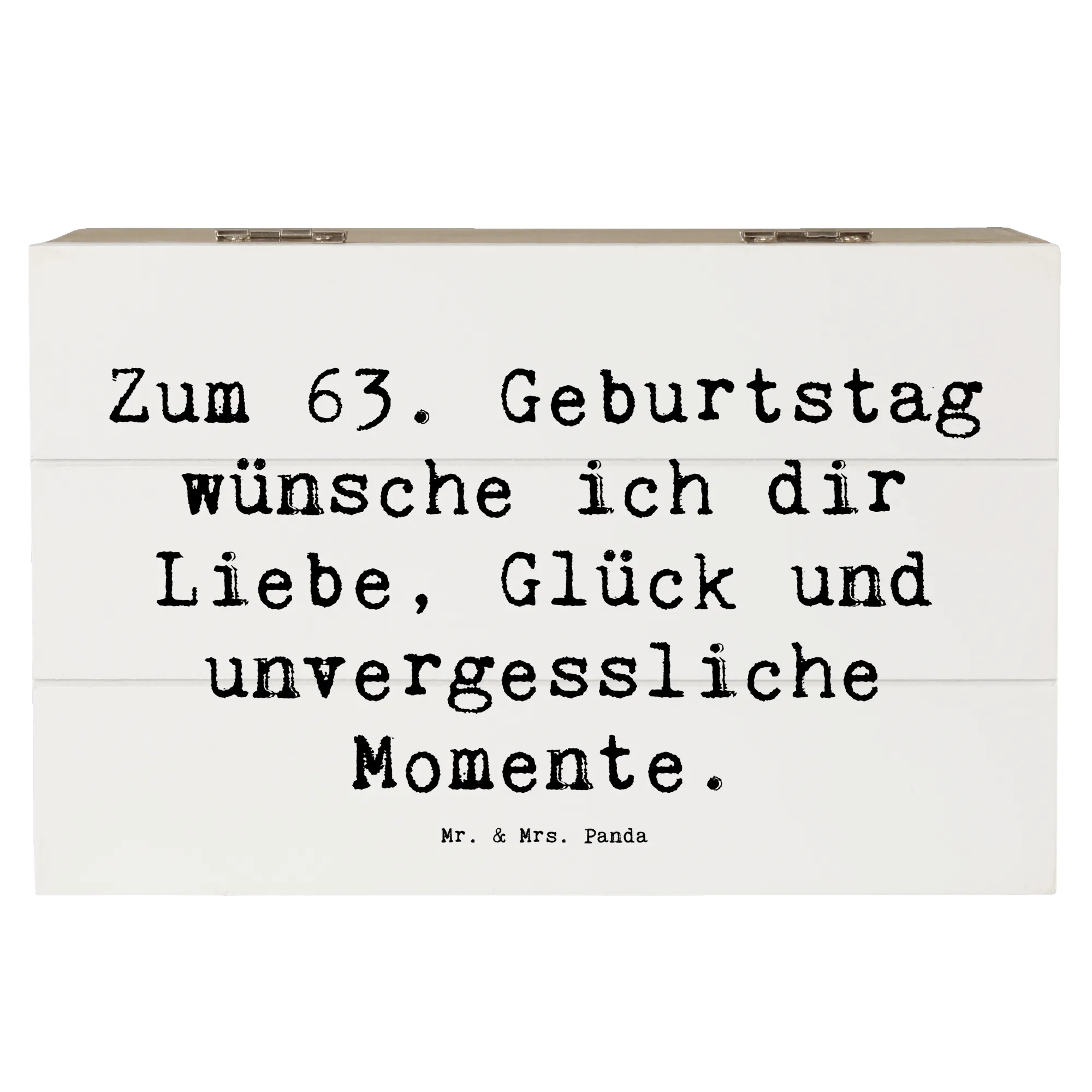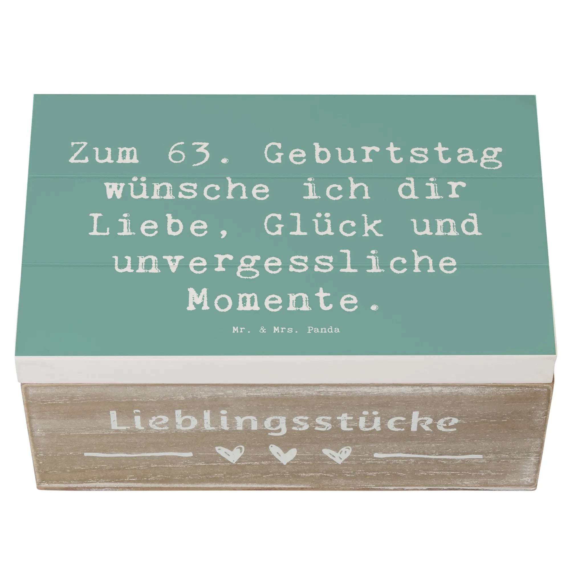 Perfekt als Geburtstagsgeschenk, um zum 63. Geburtstag herzlich zu gratulieren und Erinnerungen zu schaffen, die Generationen überdauern. Mit der Holzkiste von Mr. & Mrs. Panda schaffst du ein Geschenk, das von Herzen kommt und in den Herzen der Beschenkten bleibt. Verschenke Glück, Liebe und unvergessliche Momente mit dieser speziellen Holzkiste, die die kleinen Schätze des Lebens bewahrt und wertvolle Erinnerungen wachhält.