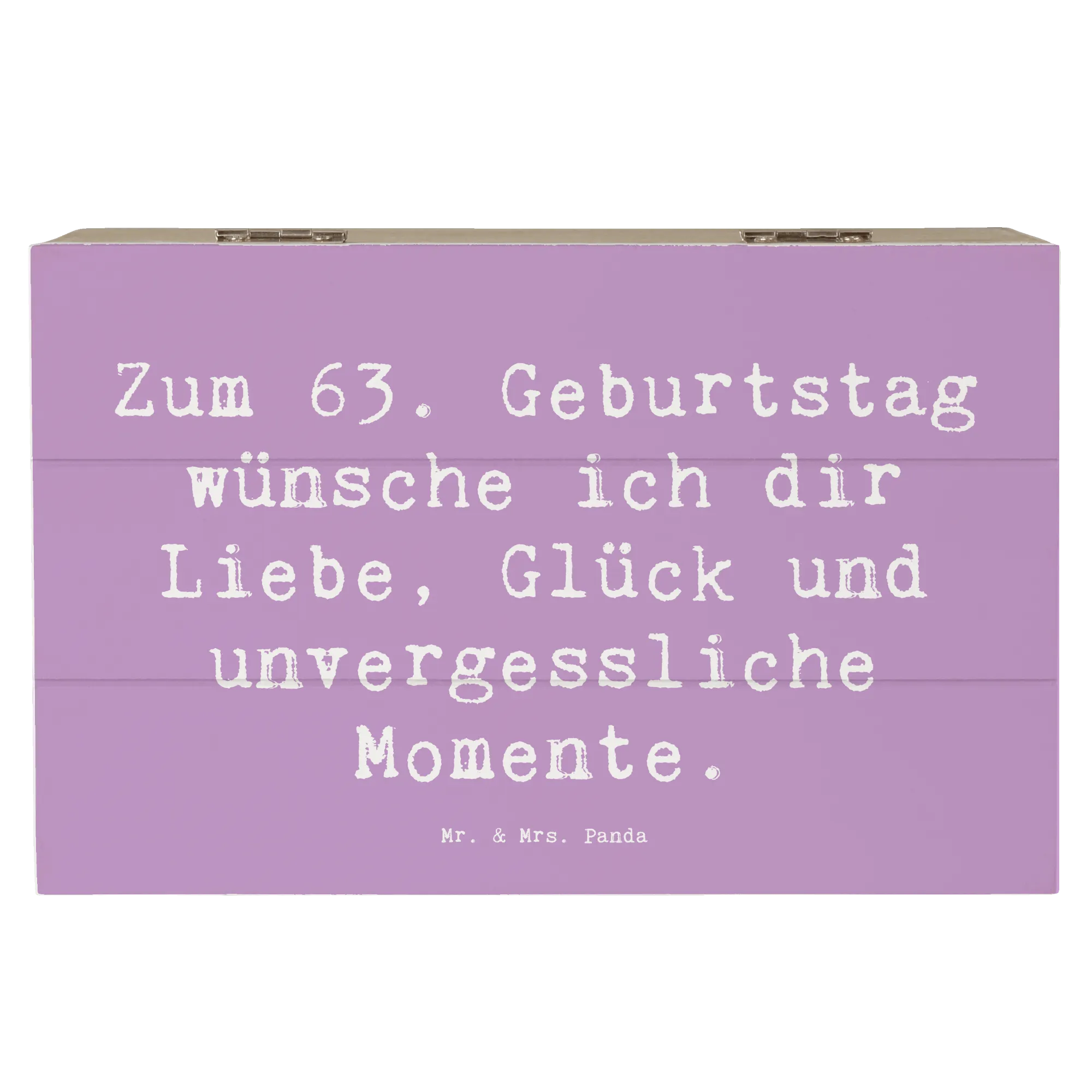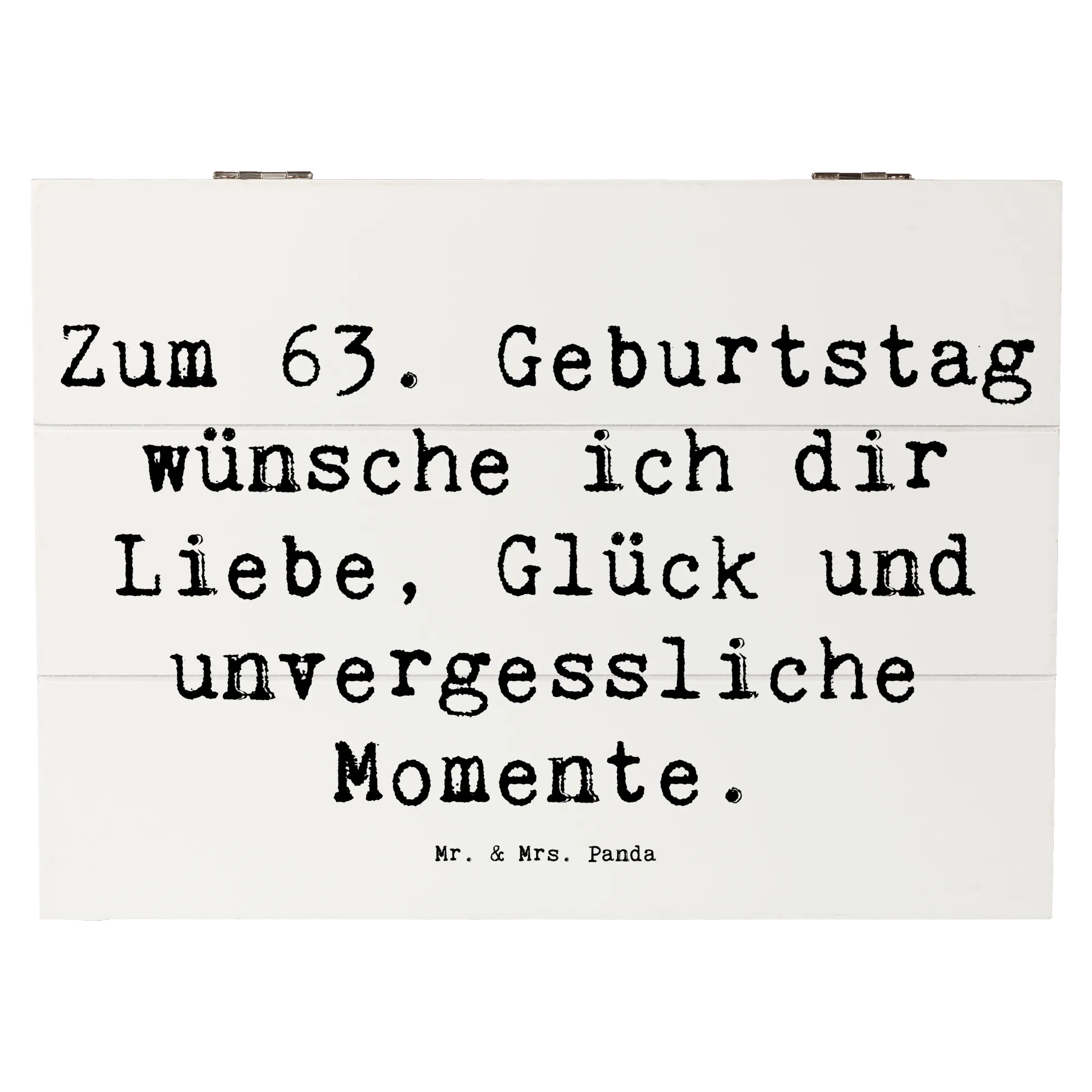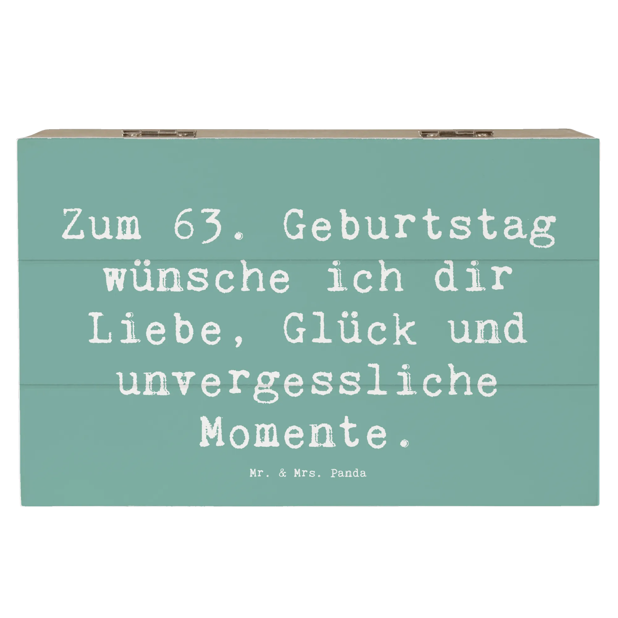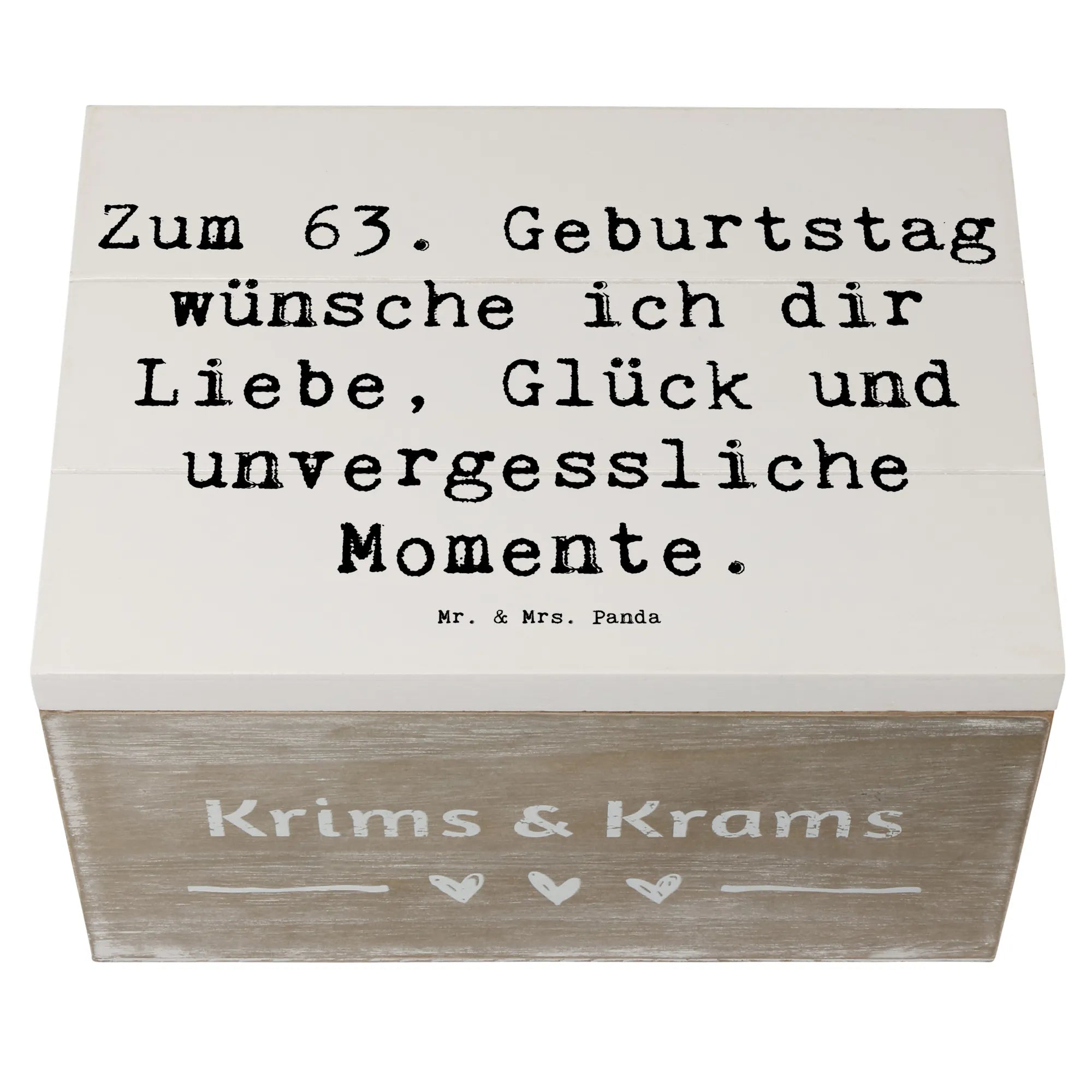 Perfekt als Geburtstagsgeschenk, um zum 63. Geburtstag herzlich zu gratulieren und Erinnerungen zu schaffen, die Generationen überdauern. Mit der Holzkiste von Mr. & Mrs. Panda schaffst du ein Geschenk, das von Herzen kommt und in den Herzen der Beschenkten bleibt. Verschenke Glück, Liebe und unvergessliche Momente mit dieser speziellen Holzkiste, die die kleinen Schätze des Lebens bewahrt und wertvolle Erinnerungen wachhält.