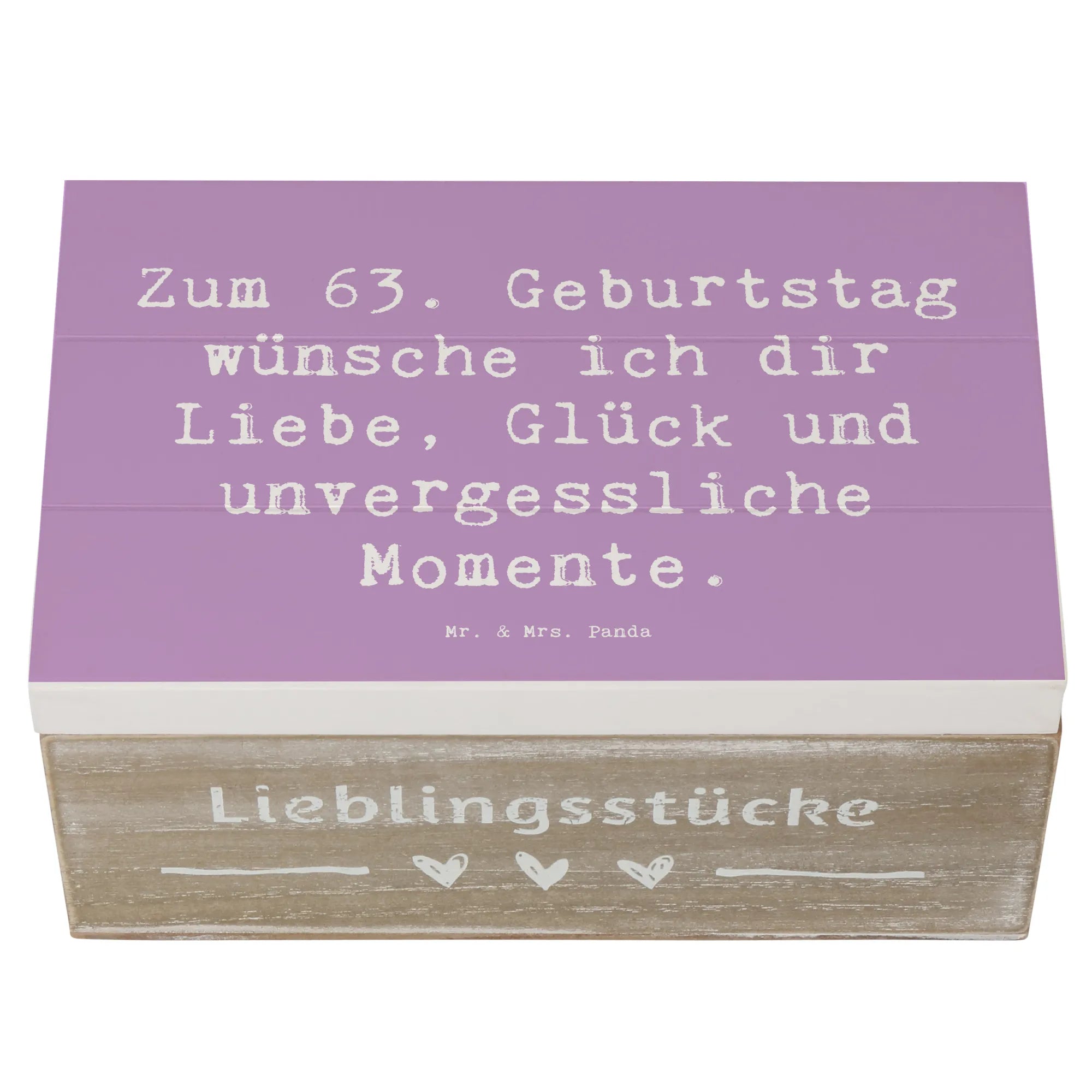 Suchst du das perfekte Geschenk zum 63. Geburtstag? Dann ist die Holzkiste von Mr. & Mrs. Panda genau das Richtige! Sie ist nicht nur eine wunderschöne Schatzkiste, sondern auch ein idealer Aufbewahrungsort für all deine unvergesslichen Erinnerungen.