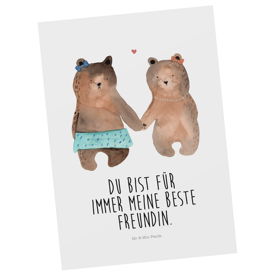 Die einzigartigste Postkarte von Mr. & Mrs. Panda, mit einem wundervollen Motiv von zwei süßen Bärenmädchen, die sich an den Händen halten. Diese Karte ist das perfekte Geschenk für deine beste Freundin. Sie strahlt nicht nur Freundschaft aus, sondern zeigt auch deine Wertschätzung auf liebevolle Art und Weise.