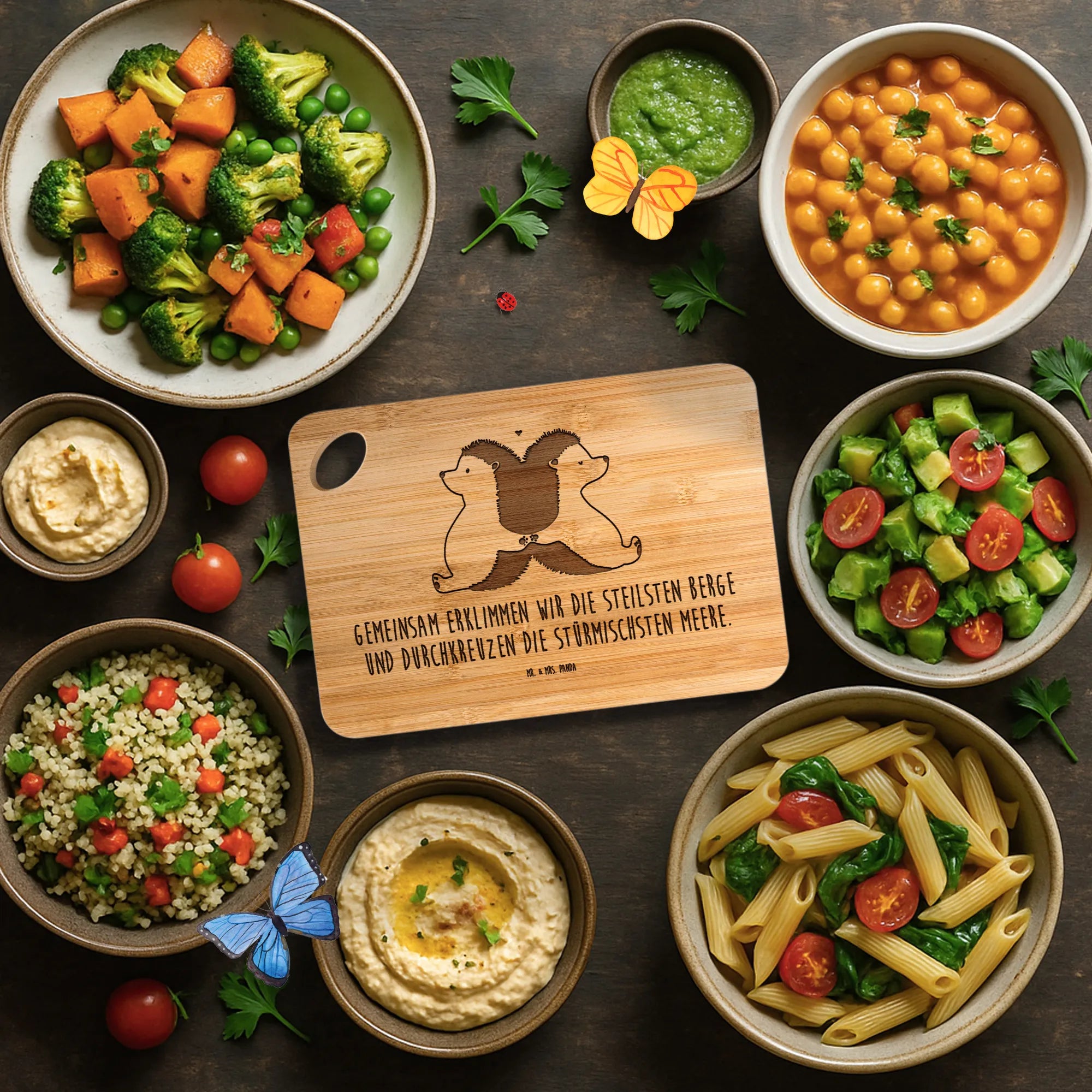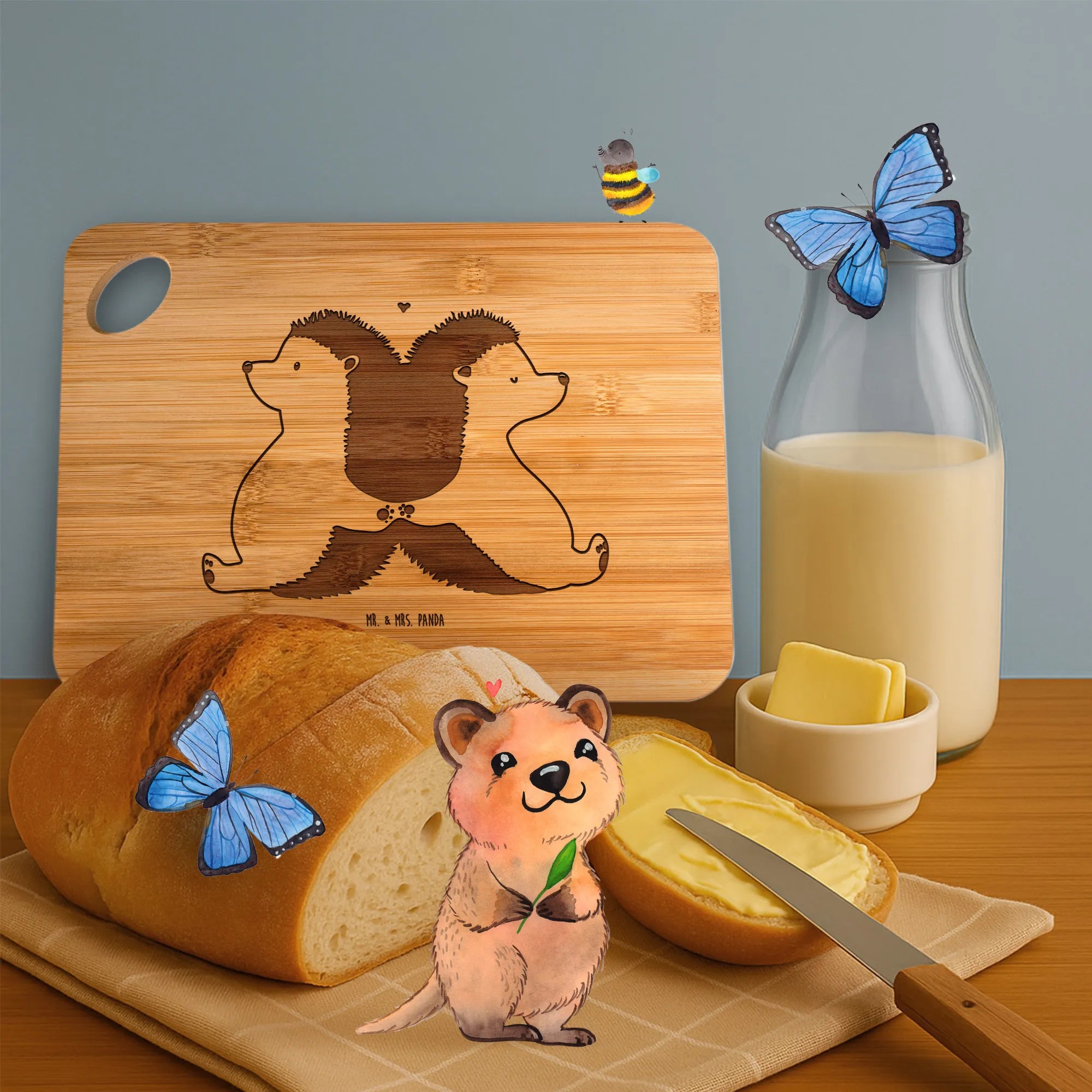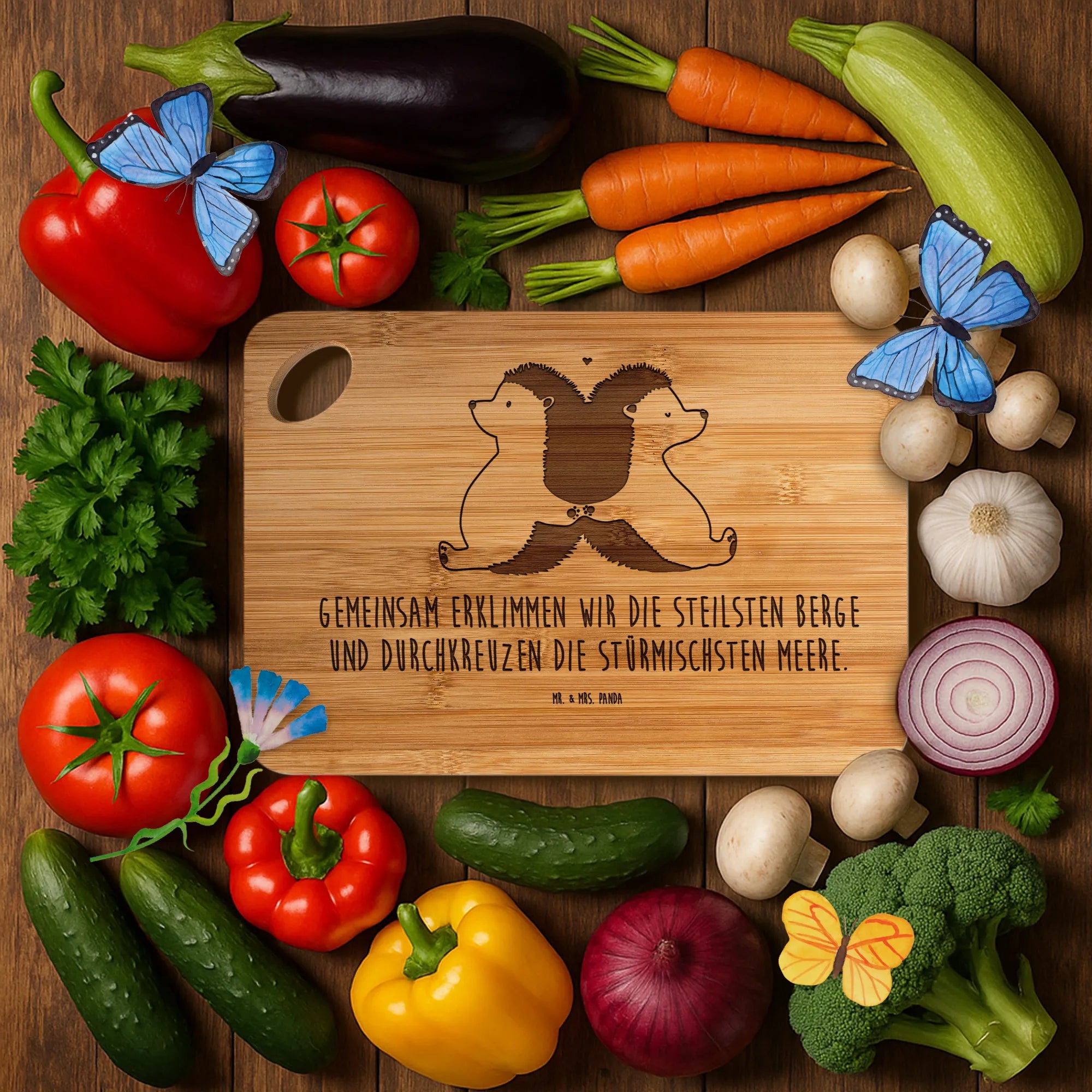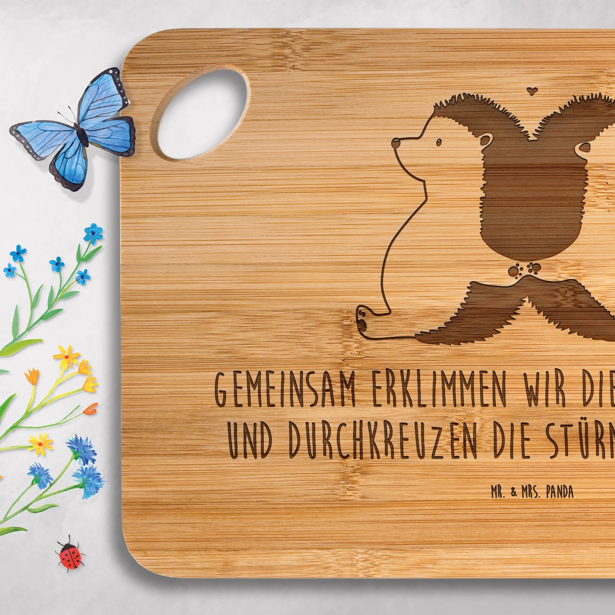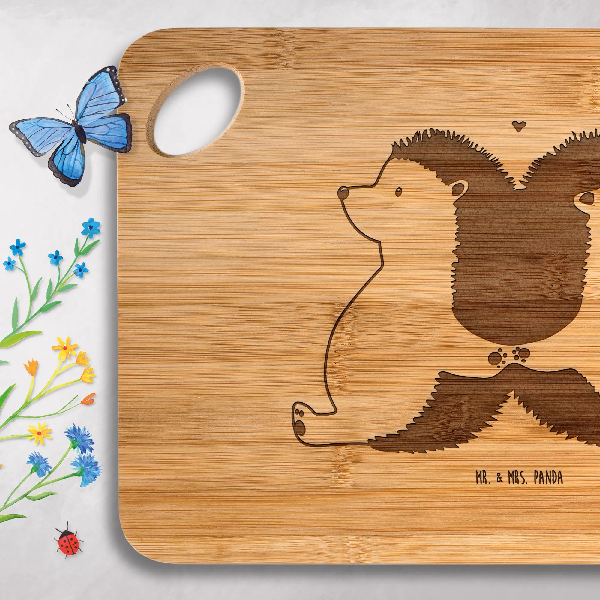 Bambus - Schneidebrett Igel händchenhaltend – Mr. & Mrs. Panda