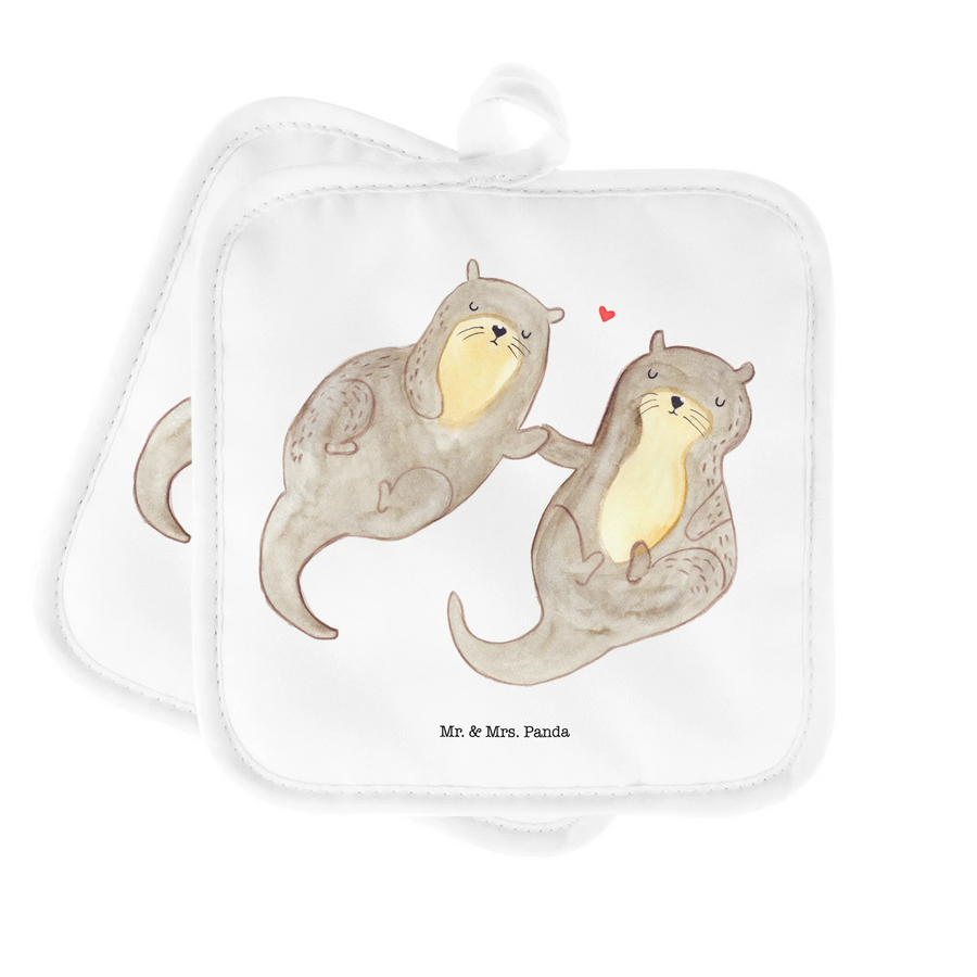2er Set Topflappen Otter händchenhaltend – Mr. & Mrs. Panda