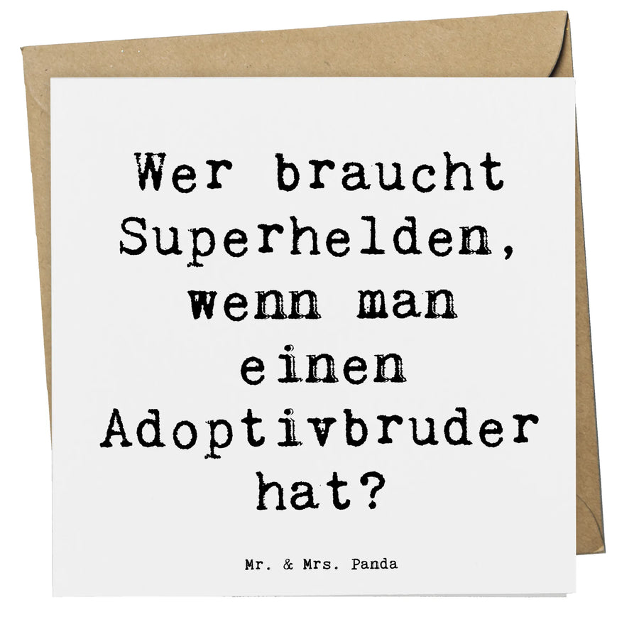 Mit dem herzlichen Spruch "Wer braucht Superhelden, wenn man einen Adoptivbruder hat?" wird diese Karte zum schönsten Geschenk für Deinen Bruder, der Dich immer unterstützt und für dich da ist. Egal, ob zum Geburtstag, zur Hochzeit oder einfach nur, um "Danke" zu sagen – diese Karte ist ein kleiner Schatz, der Herzen erwärmt.