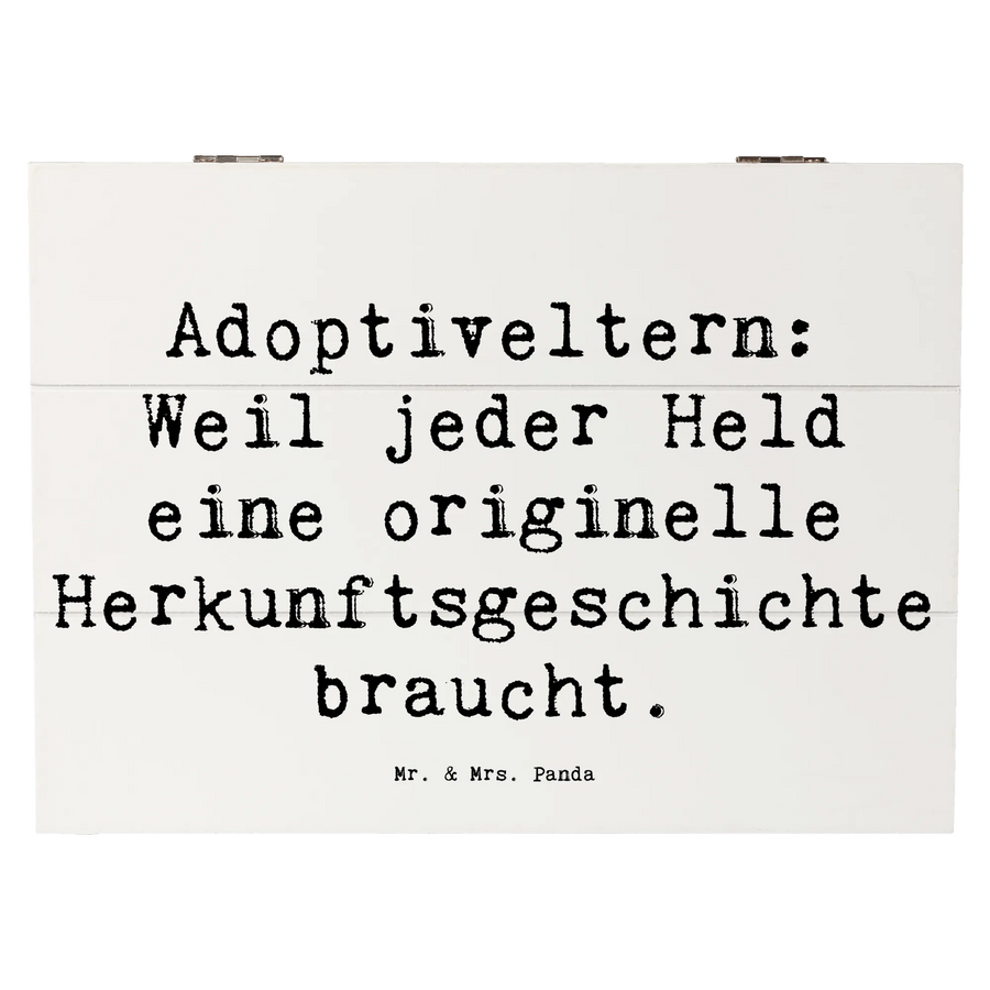 Die wunderschöne Holzkiste von Mr. & Mrs. Panda – eine Erinnerungskiste, die perfekt für Adoptiveltern ist! Sie erzählt eine Geschichte von Liebe, Fürsorge und besonderen Momenten. Mit dem liebevollen Motiv 'Adoptiveltern: Weil jeder Held eine originelle Herkunftsgeschichte braucht' ist sie der ideale Aufbewahrungsort für kostbare Schätze deiner Familie. Egal, ob Bilder von der Adoption, Erinnerungen an die Kindheit oder kleine Geschenke, die du deinen Liebsten machen möchtest – diese Dekokiste bietet genau den Platz dafür.