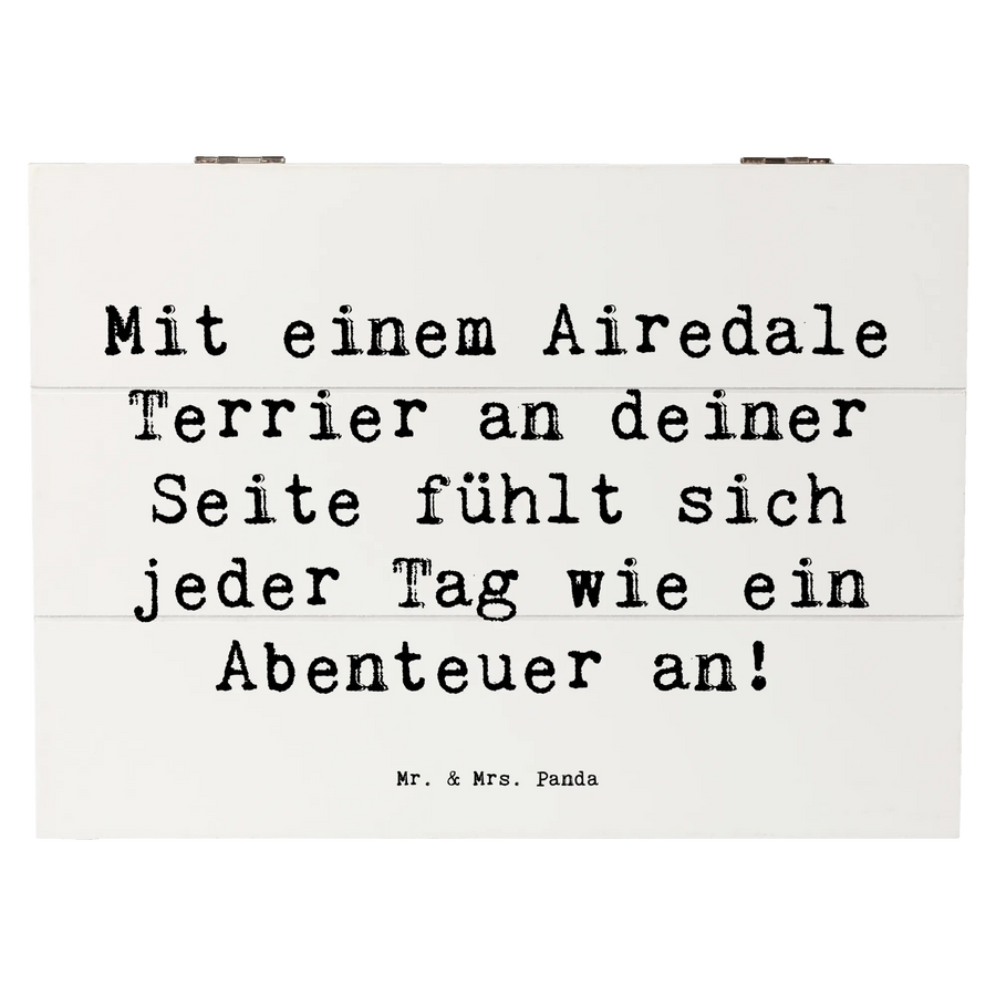 Die wunderschöne Holzkiste mit dem niedlichen Airedale Terrier Motiv von Mr. & Mrs. Panda ist das perfekte Geschenk für alle Hundefans! Mit dem Spruch "Mit einem Airedale Terrier an deiner Seite fühlt sich jeder Tag wie ein Abenteuer an!" zaubert diese Kiste ein Lächeln auf die Gesichter Deiner Liebsten und ist gleichzeitig ein praktisches Utensil zum Aufbewahren wichtiger Erinnerungen.