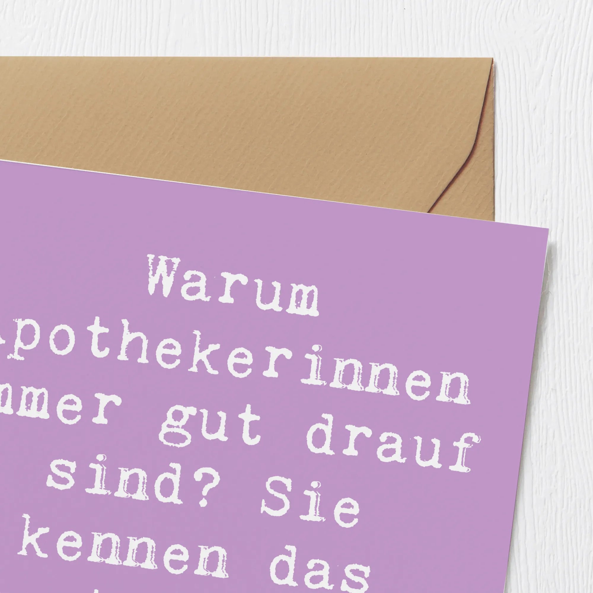 Die Karte misst 140 mm x 140 mm und ist aus edlem 300 Gramm Karton gefertigt, was ihr eine wunderbare Haptik verleiht. Die Vorderseite ziert der süße Spruch: "Warum Apothekerinnen immer gut drauf sind? Sie kennen das beste Rezept für gute Laune!" Dieser Spruch bringt nicht nur Freude, sondern ist auch eine liebevolle Hommage an alle Apothekerinnen, die mit ihrem Wissen und ihrer positiven Einstellung den Alltag bereichern.