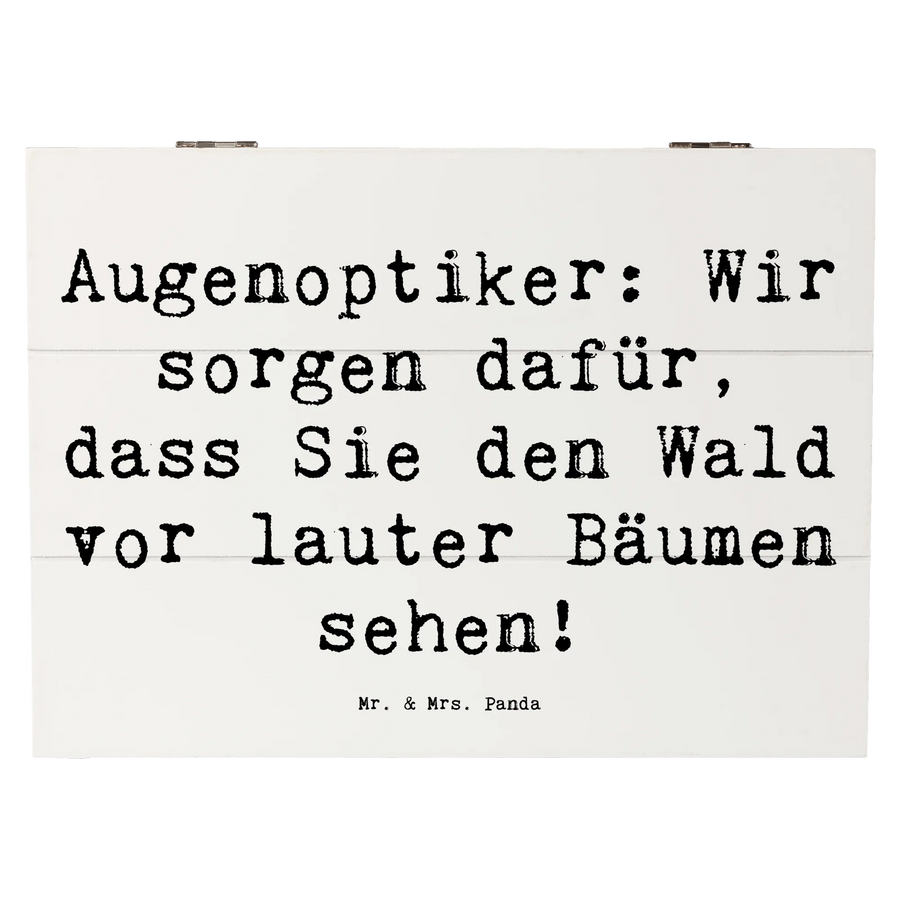Die wunderschöne Holzkiste von Mr. & Mrs. Panda ist das perfekte Geschenk für Augenoptiker und deren Kunden. Mit dem liebevollen Slogan "Augenoptiker: Wir sorgen dafür, dass Sie den Wald vor lauter Bäumen sehen!" wird diese Kiste zu einem einzigartigen Aufbewahrungsort für all Deine wertvollen Erinnerungen.