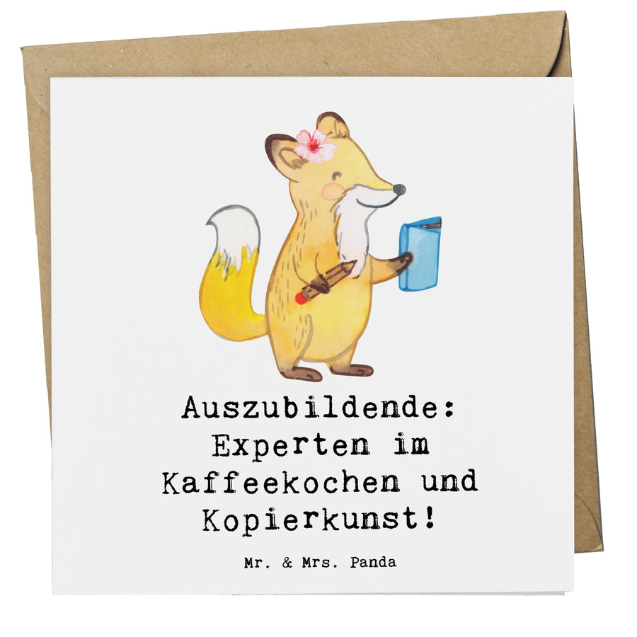 Die Deluxe Karte "Auszubildende" von Mr. & Mrs. Panda ist das perfekte Geschenk für alle, die gerade ihre Ausbildung beginnen oder erfolgreich abgeschlossen haben. Diese hochwertige quadratische Grußkarte ist mit dem charmanten Spruch "Auszubildende: Experten im Kaffeekochen und Kopierkunst!" verziert und bringt ein Lächeln auf das Gesicht des Empfängers.