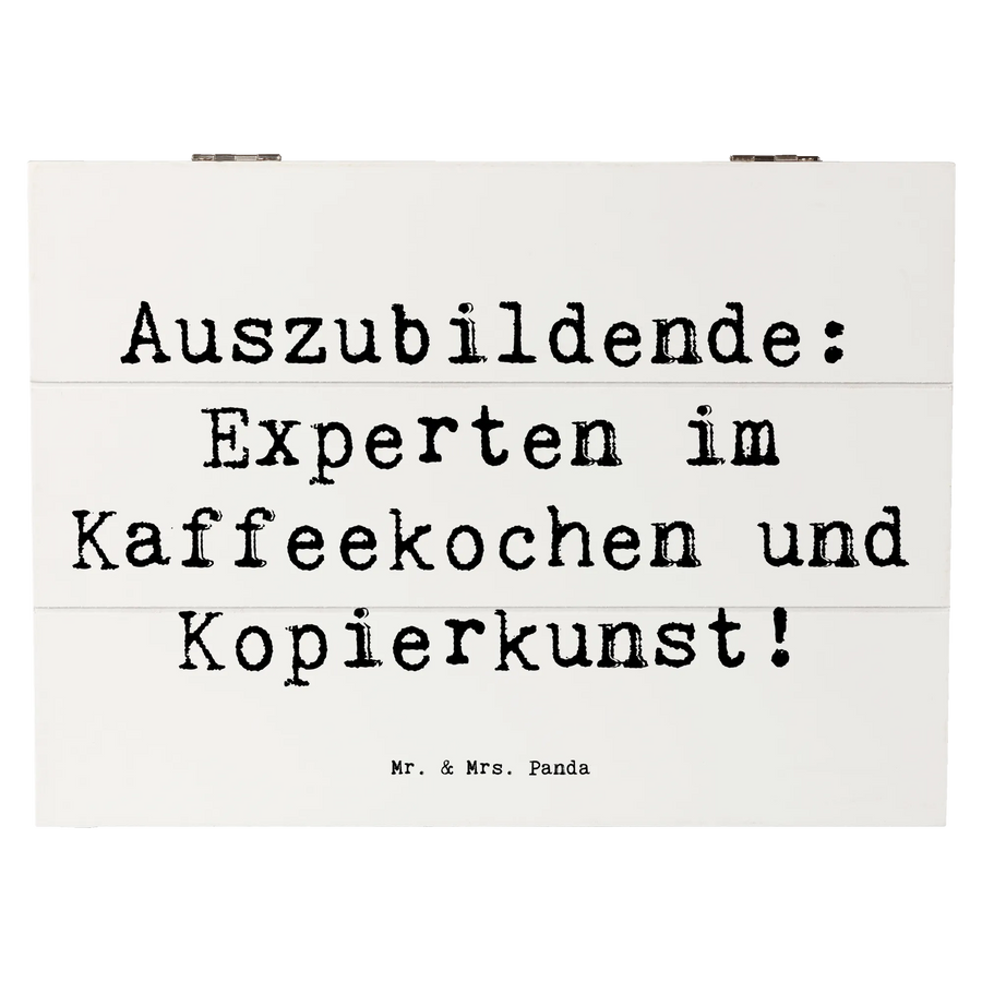 Die wunderschöne Holzkiste von Mr. & Mrs. Panda ist das perfekte Geschenk für alle Auszubildenden! Diese besondere Kiste, bedruckt mit dem charmanten Spruch "Auszubildende: Experten im Kaffeekochen und Kopierkunst!", ist ideal geeignet, um Erinnerungen und wertvolle Schätze aufzubewahren.