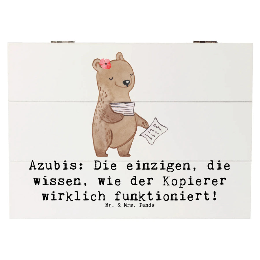Entdecke die wunderschöne Holzkiste "Auszubildende" von Mr. & Mrs. Panda! Diese besondere Kiste ist nicht nur ein idealer Aufbewahrungsort für all deine wertvollen Erinnerungen, sondern auch ein liebevolles Geschenk für deine Lieblings-Azubis. Mit dem charmanten Slogan "Azubis: Die einzigen, die wissen, wie der Kopierer wirklich funktioniert!" bringt sie nicht nur einen Lächeln ins Gesicht, sondern schafft auch einen einzigartigen persönlichen Bezug.