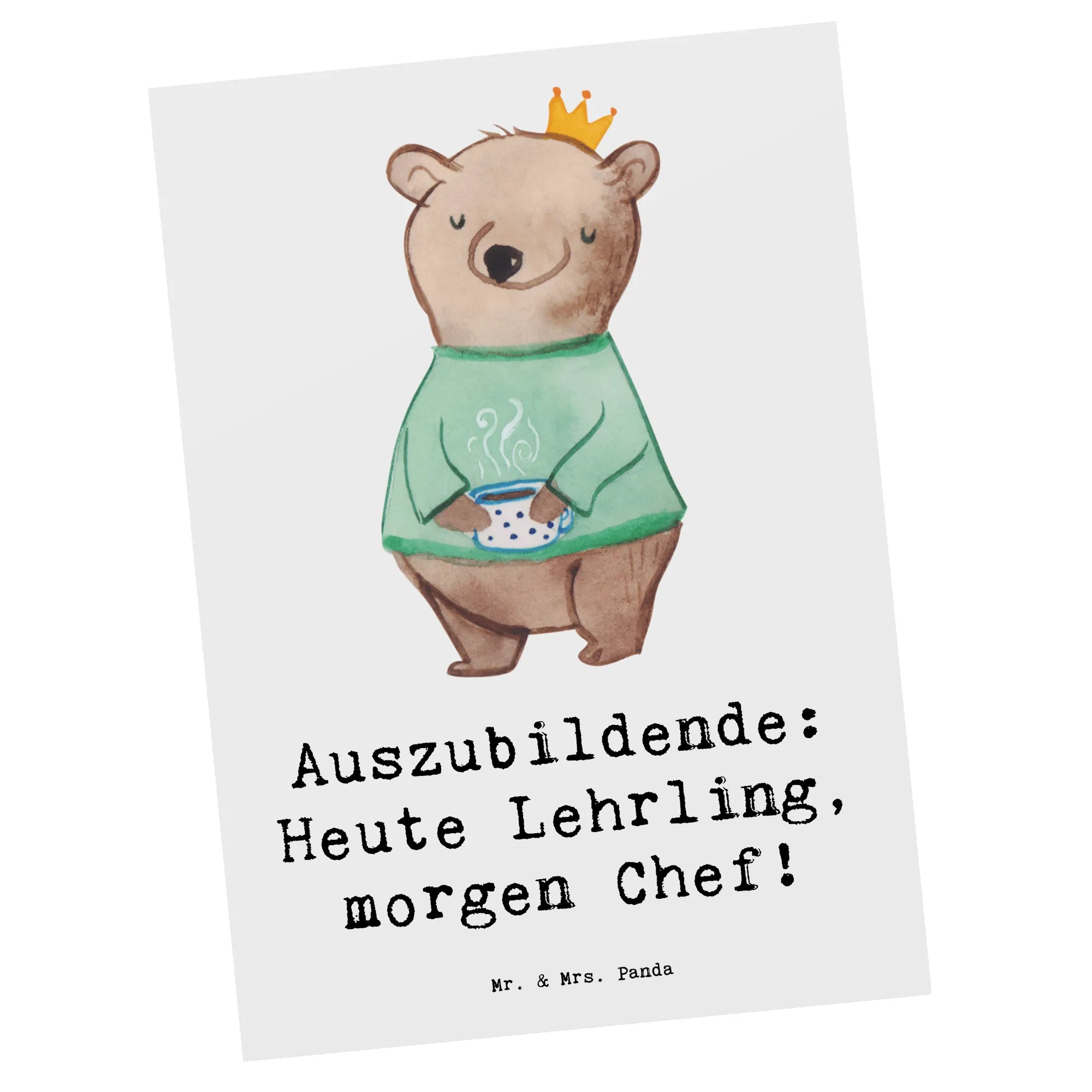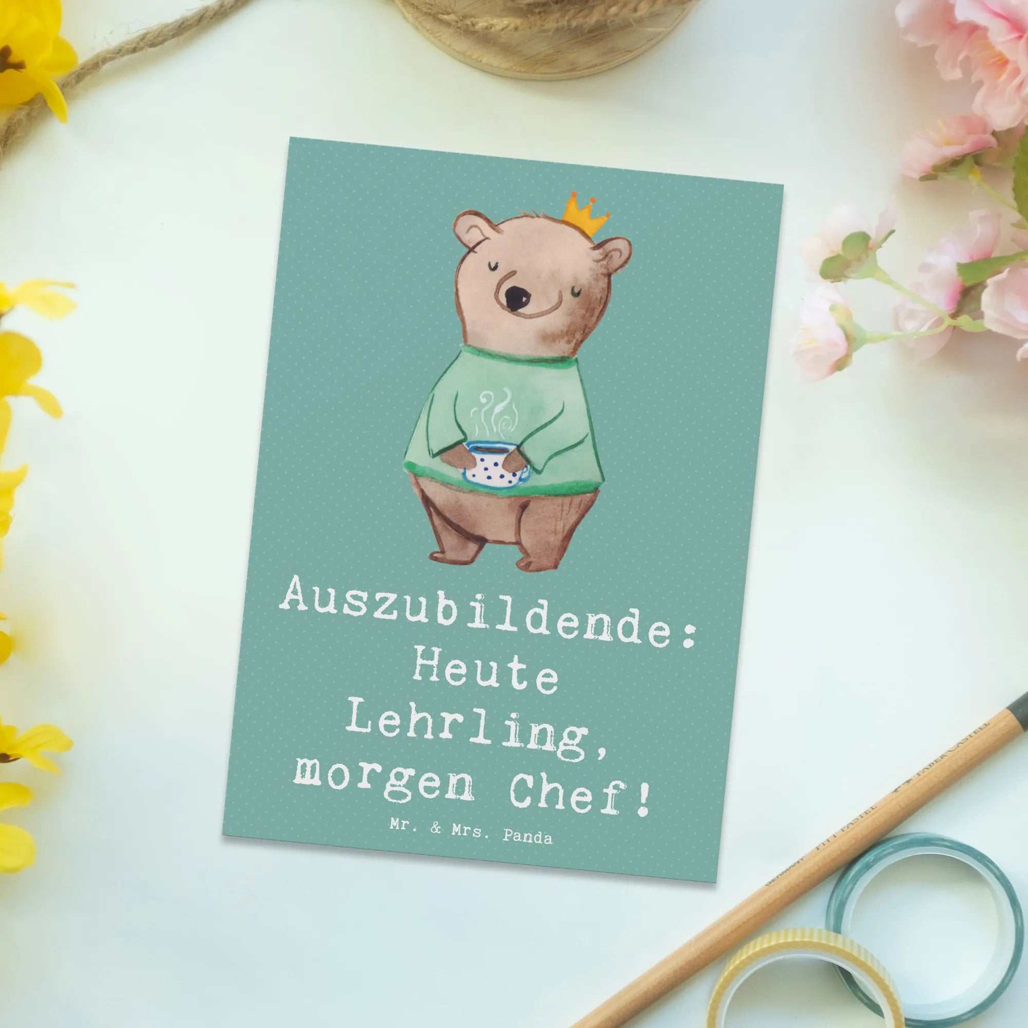 Die Postkarte "Auszubildende: Heute Lehrling, morgen Chef!" aus der bezaubernden Berufe-Kollektion von Mr. & Mrs. Panda ist das perfekte Geschenk für angehende Profis und ihre Unterstützer. Diese einzigartige Postkarte vereint kreative Designs mit einem motivierenden Spruch, um Deinen Freunden, Kollegen oder Familienmitgliedern zu zeigen, wie stolz Du auf ihren Karriereweg bist.